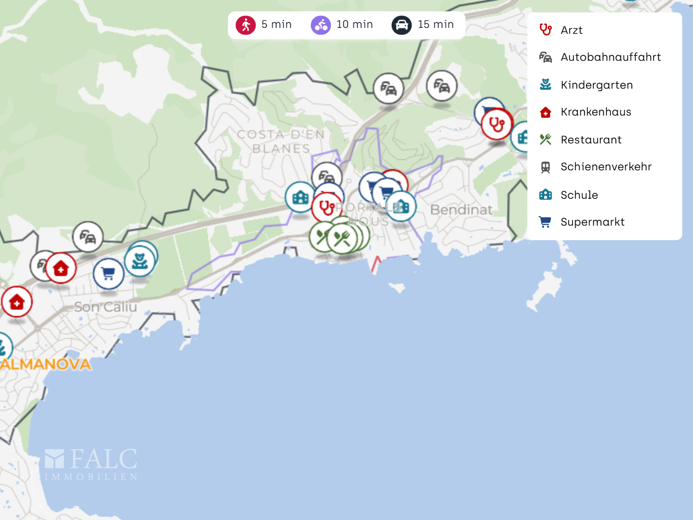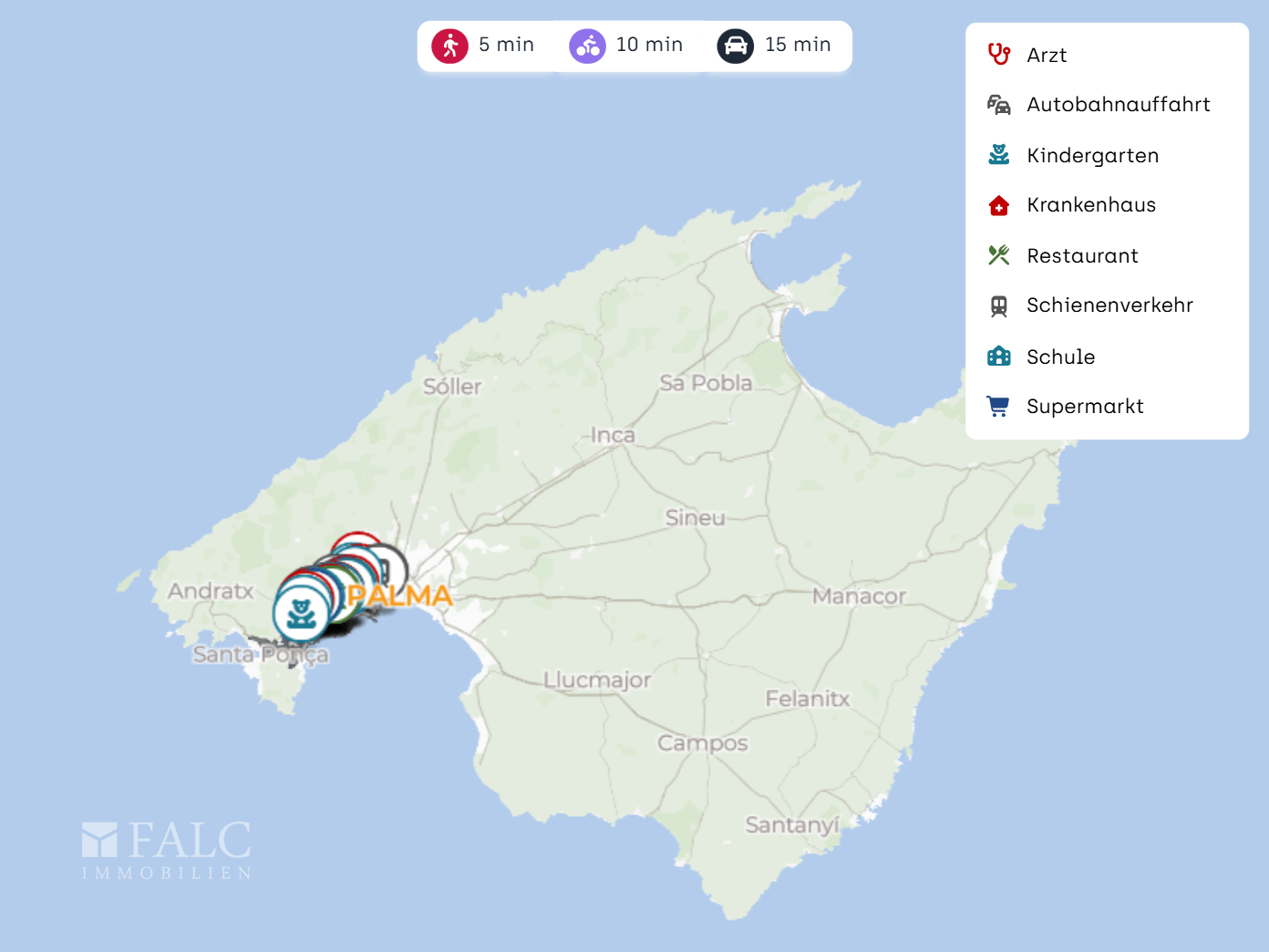 In Summe bietet die Lage eine ausgewogene Mischung aus Küstennähe, guter Infrastruktur und schneller Erreichbarkeit von Palma, ideal für alle, die Mallorca im Alltag ebenso genießen möchten wie in der Freizeit.