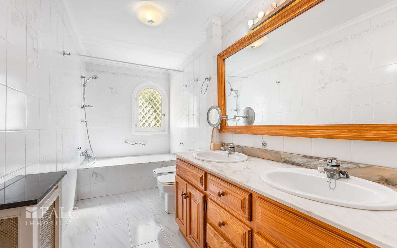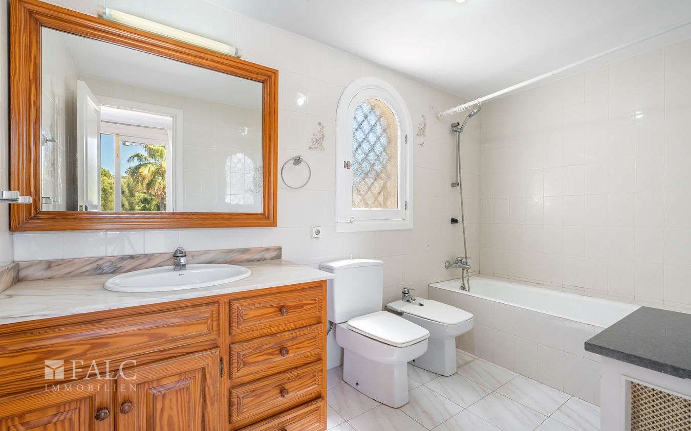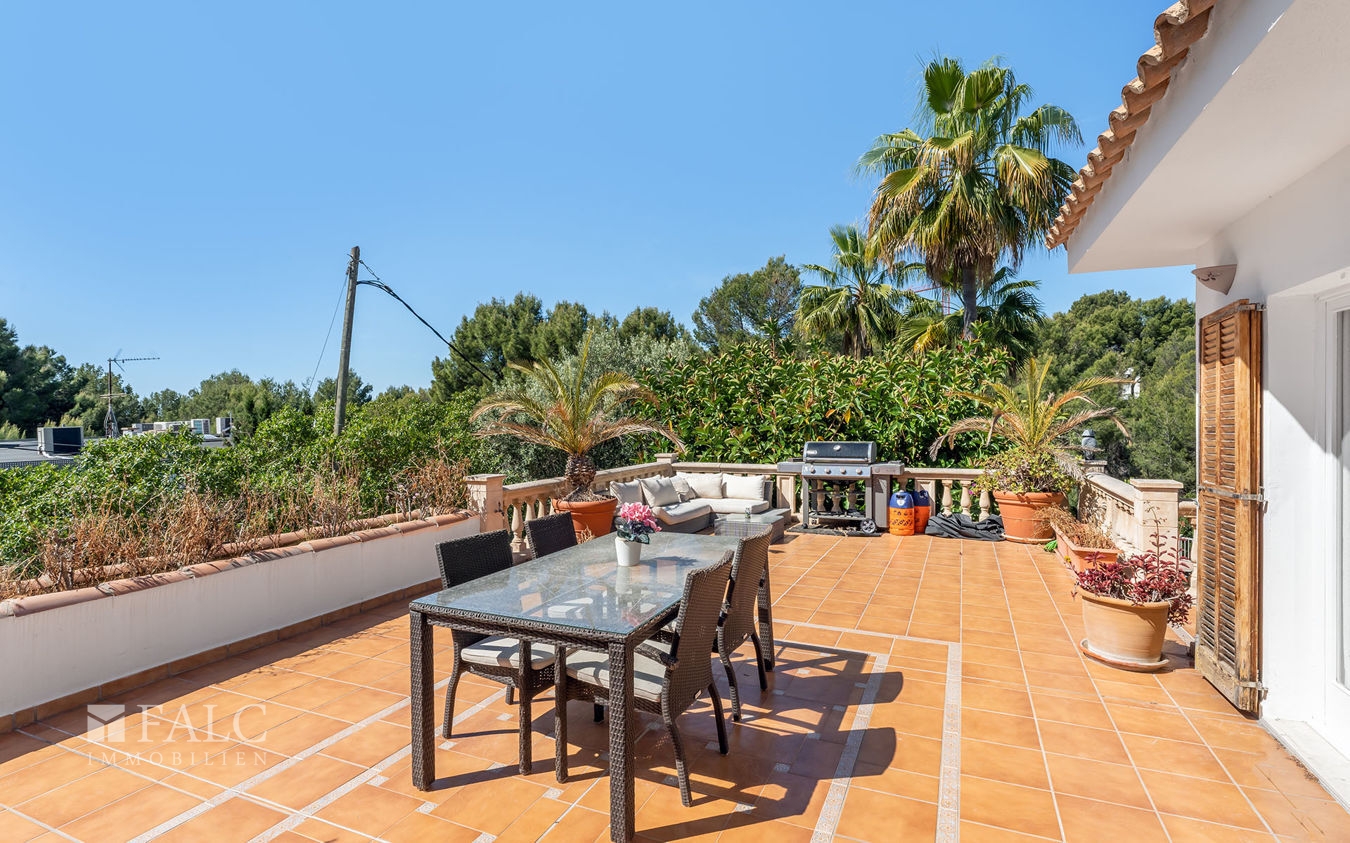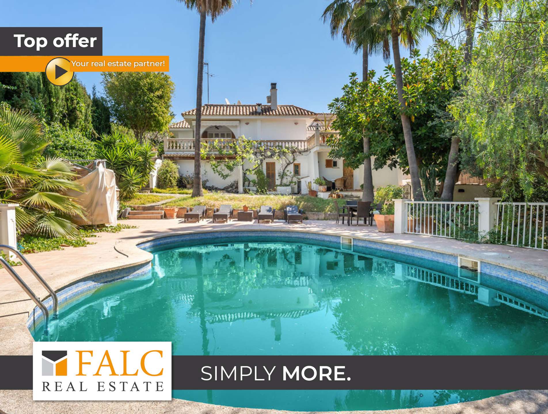 Diese bezaubernde, mediterrane Villa in Costa d´en Blanes bietet einen tollen Waldblick und befindet sich in einer privilegierten Wohngegend, nur wenige Autominuten vom exklusiven Yachthafen Puerto Portals und den hübschen Stränden mit türkisfarbenem Wasser entfernt, im Südwesten der Insel Mallorca. Das Objekt ist renovierungsbedürftig und hat eine bebaute Fläche von ca. 269 m2, die sich wie folgt aufteilen: ein gemütliches Wohn-/ Esszimmer mit Kamin und Zugang zur Terrasse, eine möblierte und ausgestattete Küche, 5 Schlafzimmer mit Einbauschränken, 3 Badezimmer, sowie ein Abstellraum. Der charmante Aussenbereich mit einem üppigen Garten und einem fantastischen Pool lädt dazu ein, die magischen Tage und Nächte auf der herrlichen Insel Mallorca in vollen Zügen zu geniessen. Zu den Ausstattungsmerkmalen dieser fabelhaften Villa in Costa d´en Blanes zählen: Klimaanlage, Zentralheizung, Kamin und Keramikböden. Zur Verfügung stehen 2 Parkplätze in der Garage und einige Stellplätze im Freien. Es handelt sich um eine attraktive Lage, nur wenige Autominuten vom exklusiven Yachthafen Puerto Portals mit seinen hervorragenden Restaurants und Boutiquen entfernt. Zum nächsten Golfplatz in Bendinat sind es 5 Autominuten.