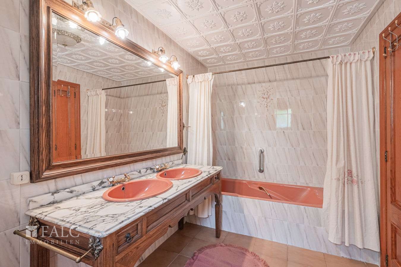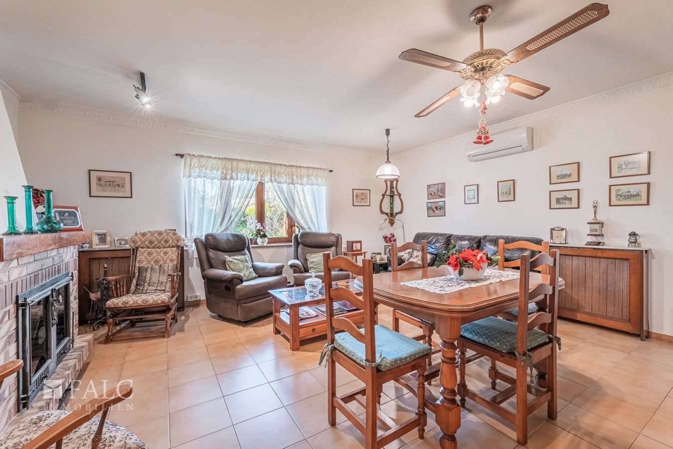 Nur 10 Autominuten von Valldemossa und dem Zentrum von Palma entfernt, präsentieren wir Ihnen diese schöne ebenerdige Villa in S'Esgleieta. Das fantastische Familienhaus mit Ostausrichtung und mallorquinischem Charme befindet sich in der Urbanisation Son Maixella, einer ruhigen und gefragten Wohngegend von Valldemossa, umgeben von wunderschöner Natur. Von hier aus haben Sie einen fantastischen Panoramablick auf die Berge der Sierra de Tramuntana und die umliegenden Mandelhaine. Die Villa befindet sich auf einem Grundstück von ca. 1.652 m2 und hat eine Wohnfläche von ca. 194 m2, die sich wie folgt auf eine Etage verteilt: Eine Eingangshalle, ein geräumiges Wohn-/Esszimmer mit Kamin, eine offene Küche mit Essbereich, Kamin und Zugang zur Terrasse, ein Hauptschlafzimmer mit Einbauschränken und einem Badezimmer en suite, 2 weitere Schlafzimmer mit Einbauschränken und ein Badezimmer, Büro und ein Hauswirtschaftsraum. Der herrliche Aussenbereich beeindruckt mit einem Grillbereich mit Gäste-WC und einer Garage für 2 Fahrzeuge. Weitere Merkmale: Öl-Zentralheizung, Aluminium-Fensterläden, Wasserzisterne und eine Solaranlage. Die Immobilie zeichnet sich durch einen weitläufigen Garten und verschiedene Terrassen aus. Darüber hinaus besteht die Möglichkeit, einen Swimmingpool zu bauen.