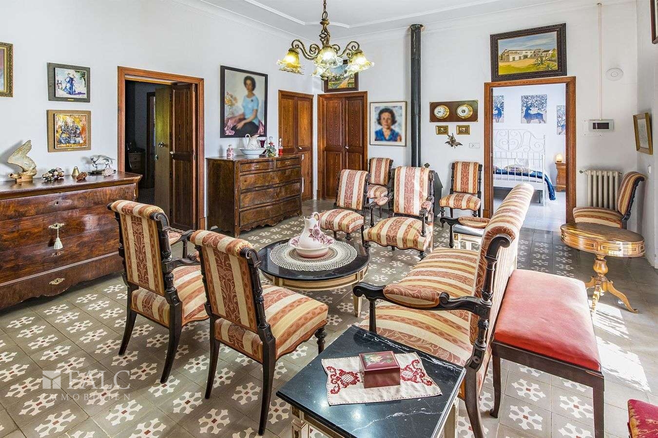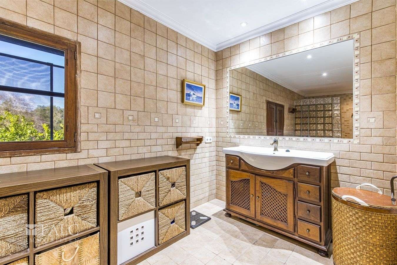 Umgeben von üppiger Vegetation und mit Lizenz für landwirtschaftliche Aktivitäten, präsentieren wir diese einzigartige und weitläufige Finca zwischen Sineu und Lloret de Vistalegre. Das authentische mallorquinische Landgut ist sehr gepflegt und liegt auf einem beeindruckenden, abgelegenen Grundstück von ca. 49.984 m2 mit Pool und zahlreichen Agrarmöglichkeiten. Das prächtige Anwesen verfügt über eine bebaute Fläche von ca. 899 m2, die sich auf ein Haupthaus, mehrere Sonnenterrassen, Ställe und weitere Nutzgebäude aufteilt. Das nach Süden ausgerichtete Wohngebäude verteilt sich auf 2 Etagen und bietet insgesamt 7 Doppelschlafzimmer mit 6 Bädern en suite, wie folgt: Das geräumige Erdgeschoss bietet eine grosse und helle Eingangshalle mit Haupttreppe, ein Wohn-/Esszimmer von ca. 48 m2 mit Pelletkamin, eine grosse Küche von ca. 20 m2, ausgestattet mit Elektrogeräten, grosse Speisekammer und Weinkeller, eine Gästetoilette, eine wunderbare Bücherei von ca. 55 m2, ein Schlafzimmer, 2 Bäder, eines davon en suite und ein zusätzliches Wohnzimmer mit Zugang zur Terrasse. Im Obergeschoss befinden sich 6 Doppelschlafzimmer, 5 davon mit eigenem Bad, ein Büro von ca. 45 m2 mit herrlichem Blick und ein weiteres Wohnzimmer. Darüber hinaus gibt es Bäder, WCs und Umkleideräume im Freien, ein Salzwasserpool, einen Holzofen, 2 Venenbrunnen, einen Reitplatz und Stallungen.