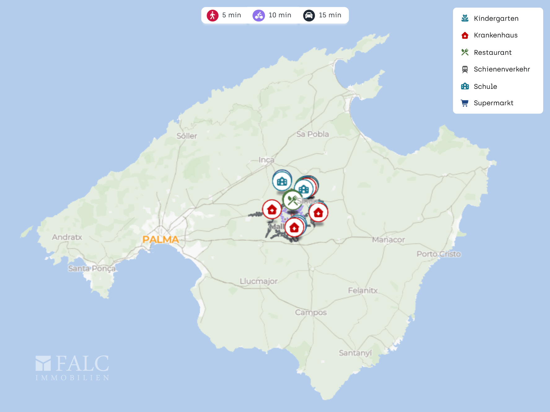 In Summe bietet diese Lage eine ausgewogene Mischung aus Ruhe, Nahversorgung und guter Erreichbarkeit ein stimmiger Rahmen für alle, die Mallorca abseits der Hektik genießen und dennoch flexibel bleiben möchten.