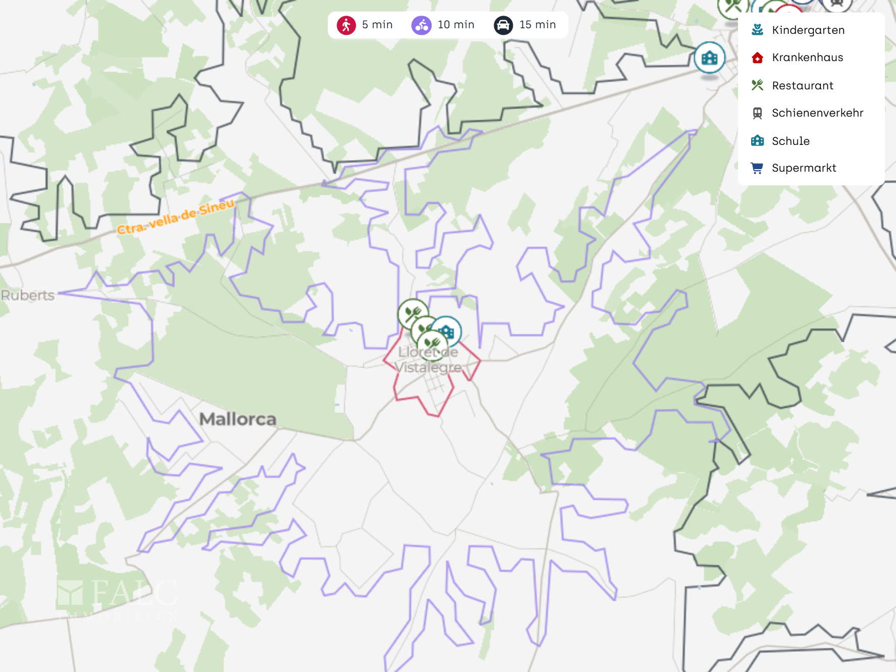Die Lage in Lloret de Vistalegre verbindet ruhiges Wohnen im Inselinneren mit einer alltagstauglichen Infrastruktur. Hier genießen Sie ein entspanntes, dörflich geprägtes Umfeld und sind gleichzeitig gut angebunden, wenn es in die größeren Orte der Umgebung gehen soll.