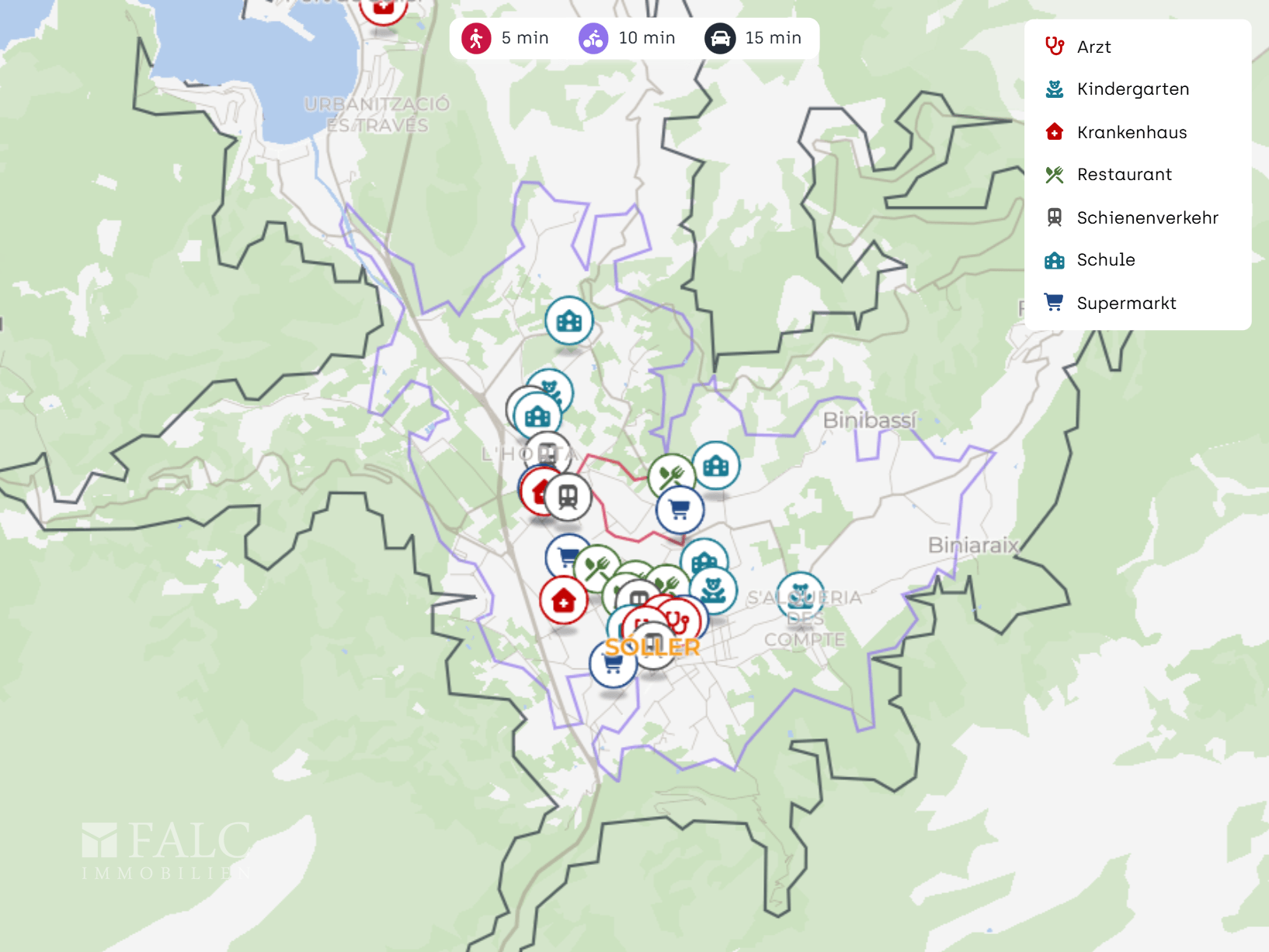 Die Immobilie liegt in einem gewachsenen Wohnumfeld von Sóller und verbindet kurze Wege im Alltag mit dem besonderen Flair des Tramuntana Tals. Rund um das Haus finden Sie eine stimmige Mischung aus ruhigen Straßen, kleinen Hotels und einer lebendigen Ortsmitte, die sich bequem zu Fuß erreichen lässt.