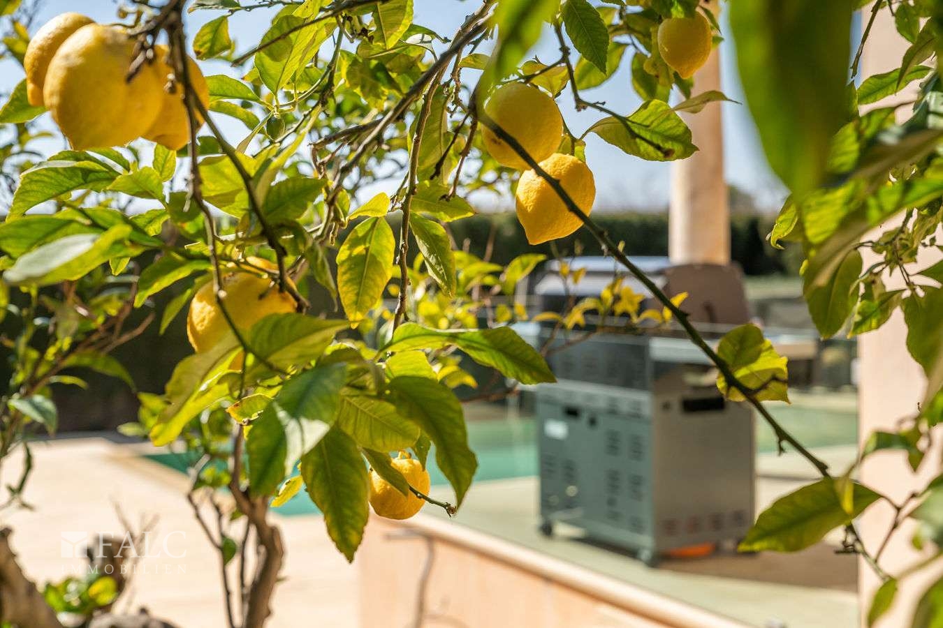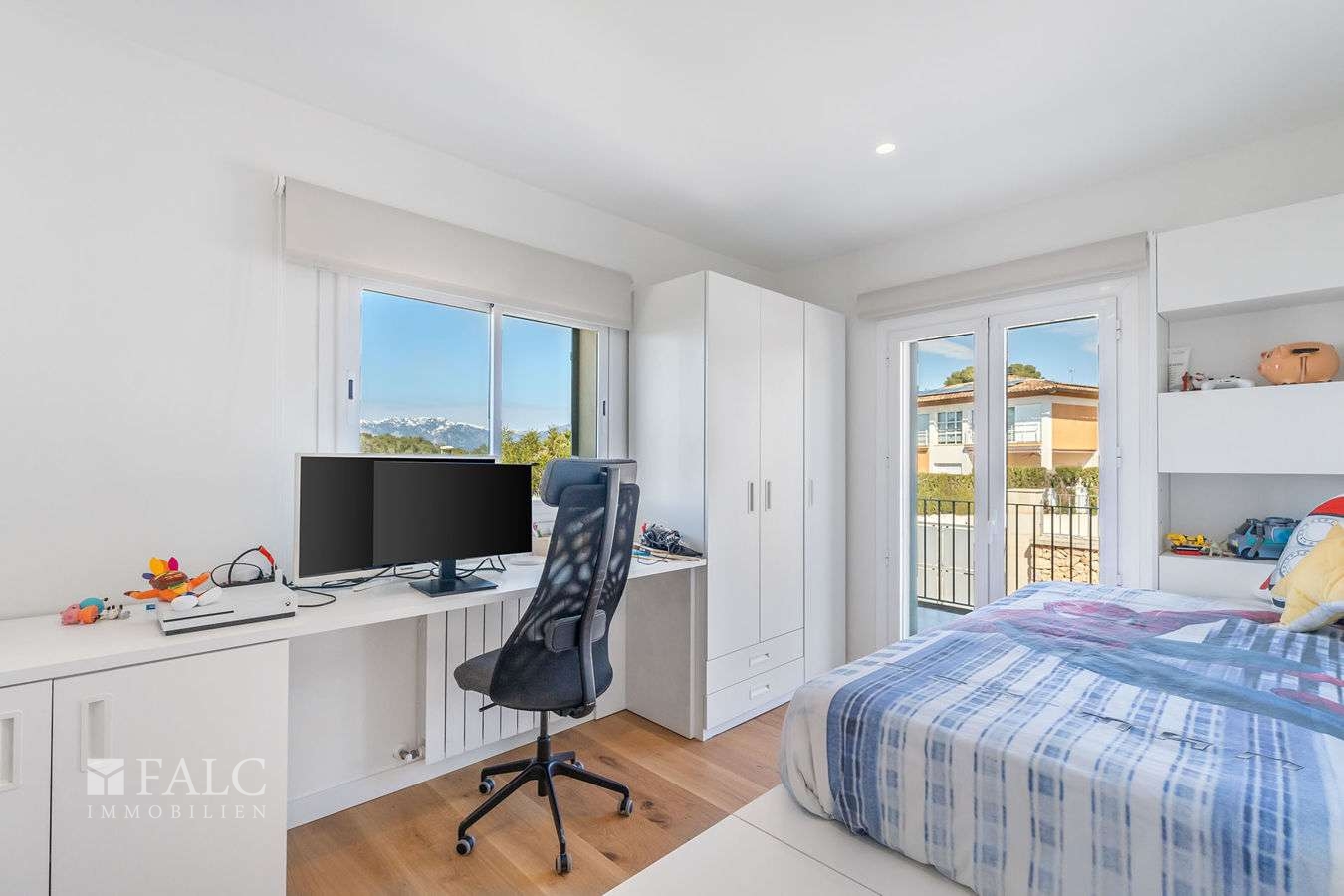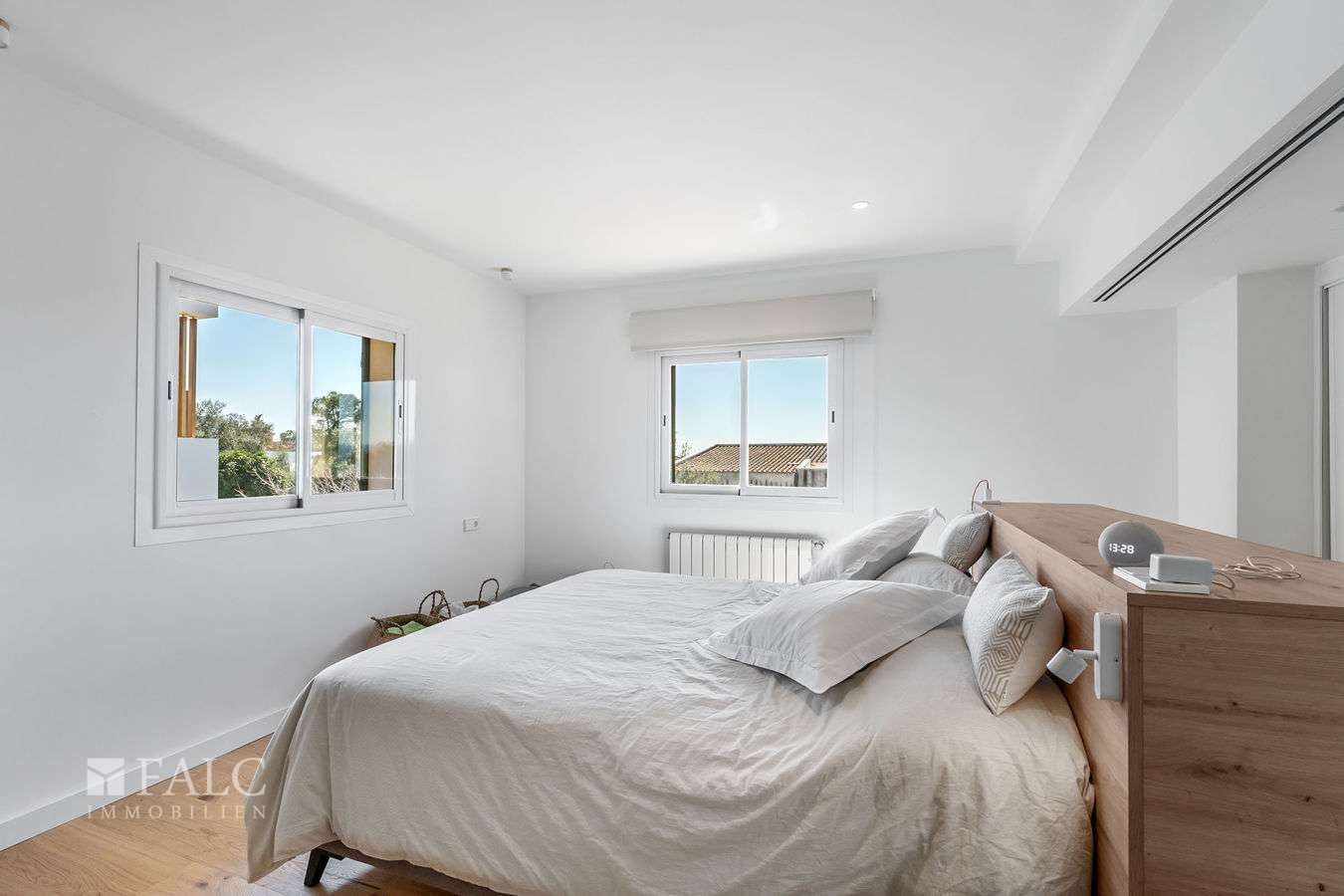 Diese modern möblierte Villa zwischen Sa Cabaneta und Son Marsal mit erfrischendem Pool und Teilmeerblick besticht durch eine traumhafte und überdachte Terrasse, eine grosszügige und offene Aufteilung des Wohnbereiches mit ebenerdigen Panoramafenstern, sowie einem spektakulären Aussenbereich, der keine Wünsche offen lässt. Die exklusive Immobilie verfügt über ein sonniges Grundstück von ca. 850 m2 mit Südost-Ausrichtung und eine bebaute Fläche von ca. 392 m2, die sich wie folgt aufteilt: Das helle Erdgeschoss beherbergt ein tolles Wohnzimmer auf erhöhter Ebene, ein bezauberndes Esszimmer mit traumhaftem Blick auf den Pool, eine italienische Küche der Marke Scaboline, ein Schlafzimmer und ein Badezimmer. Der 1. Stock verfügt über 3 weitere Schlafzimmer mit Einbauschränken, sowie 2 Badezimmer, eines davon en suite. Der attraktive Kellerbereich bietet ein 2. Wohnzimmer, Dusche, Waschküche, den Maschinenraum und als besonderes Highlight einen herrlichen Fitness- und Saunabereich. Entspannen Sie sich im gepflegte Aussenbereich bei einem kühlen Bad im beeindruckendem Pool oder beim Sonnenbaden unter mediterranen Palmen. Weitere Ausstattungsmerkmale: Parkplatz für zwei Fahrzeuge, Wassertank mit Aerothermik, fotovoltaische Energie, aerothermische Heizkörper, Abstellraum und kanalisierte Klimaanlage. Die idyllische Lage bietet viel Ruhe, der nächste schöne Strand mit kristallklarem Wasser und der internationale Flughafen sind nur 15 Minuten mit dem Auto entfernt.