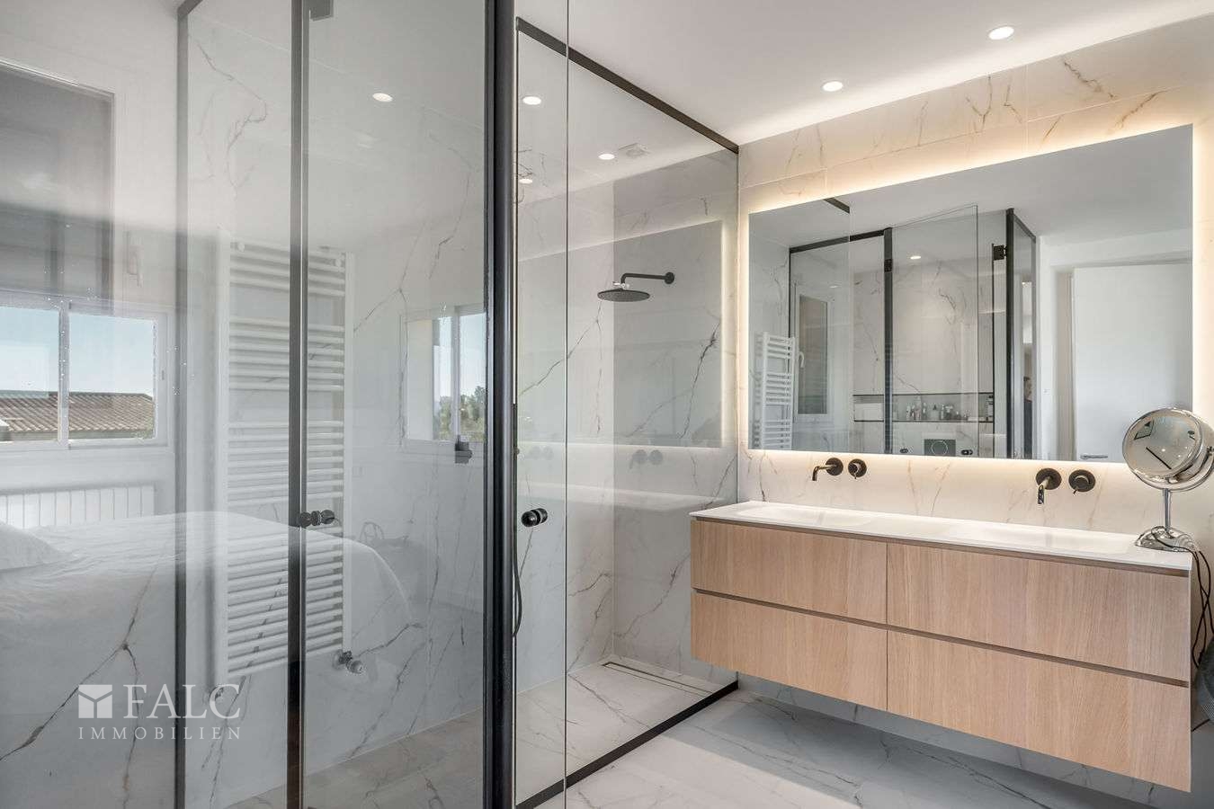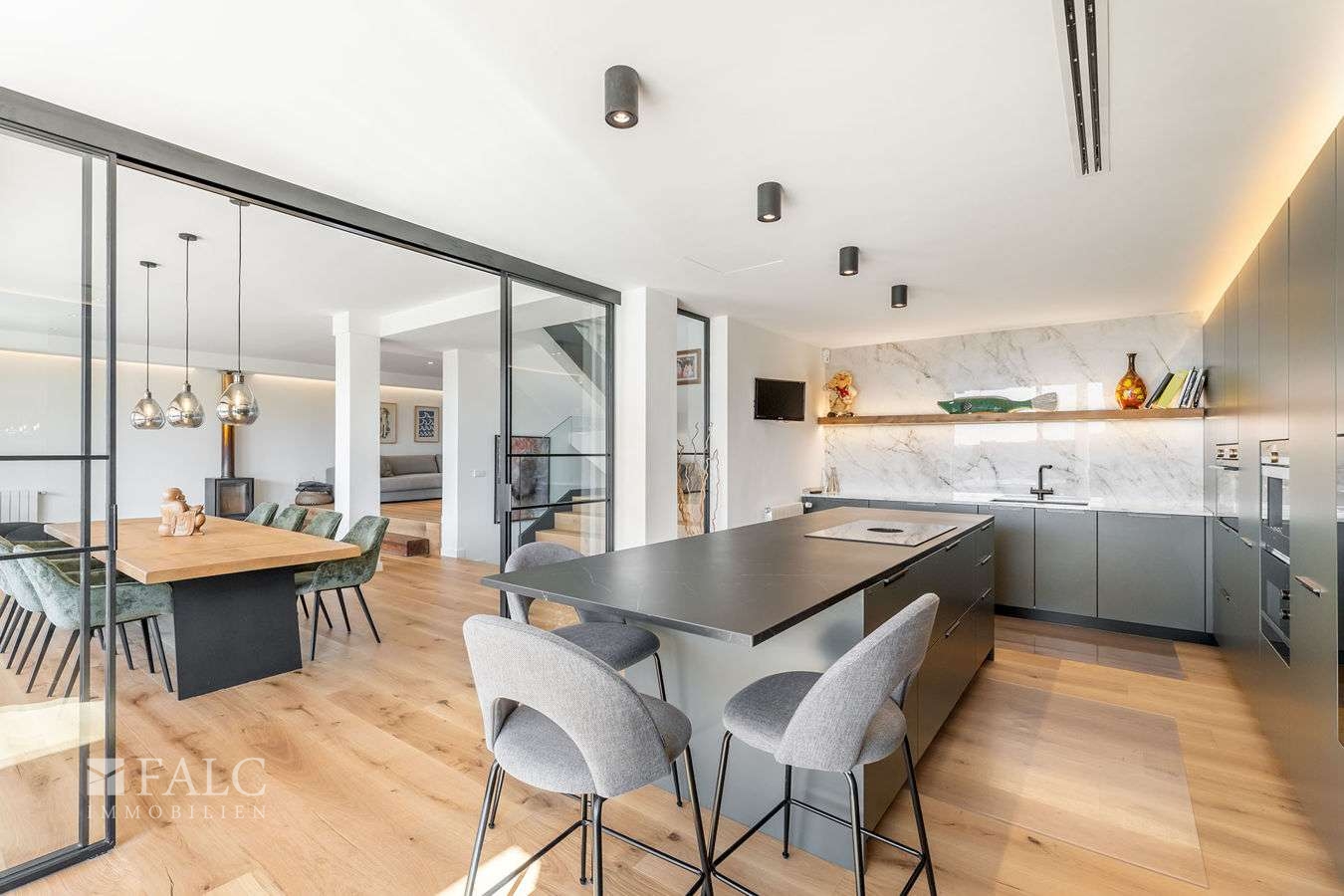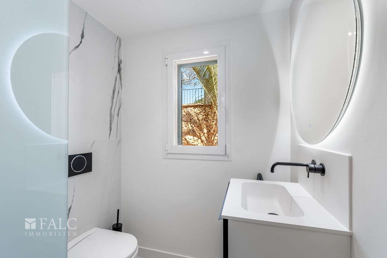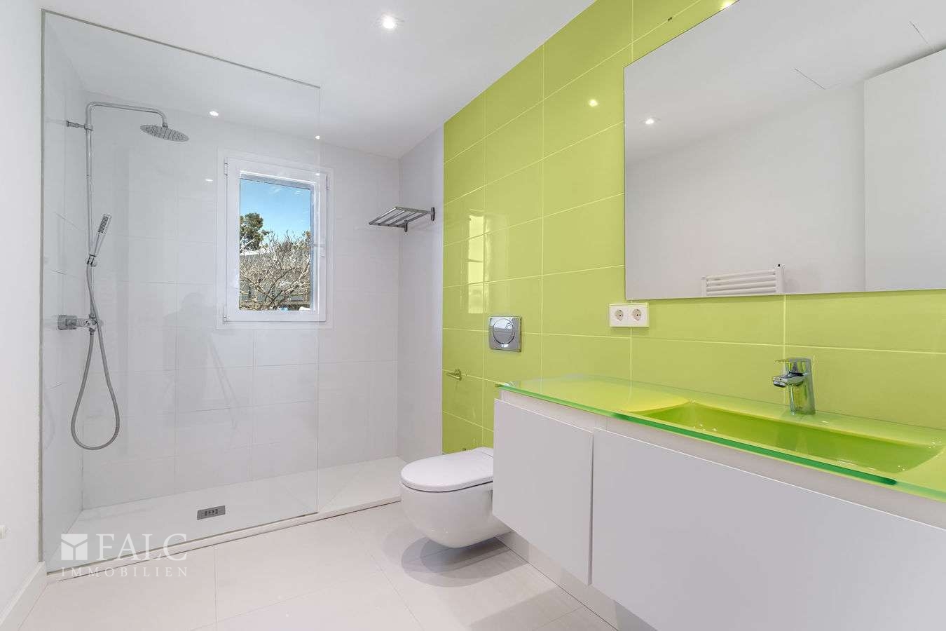 Diese modern möblierte Villa zwischen Sa Cabaneta und Son Marsal mit erfrischendem Pool und Teilmeerblick besticht durch eine traumhafte und überdachte Terrasse, eine grosszügige und offene Aufteilung des Wohnbereiches mit ebenerdigen Panoramafenstern, sowie einem spektakulären Aussenbereich, der keine Wünsche offen lässt. Die exklusive Immobilie verfügt über ein sonniges Grundstück von ca. 850 m2 mit Südost-Ausrichtung und eine bebaute Fläche von ca. 392 m2, die sich wie folgt aufteilt: Das helle Erdgeschoss beherbergt ein tolles Wohnzimmer auf erhöhter Ebene, ein bezauberndes Esszimmer mit traumhaftem Blick auf den Pool, eine italienische Küche der Marke Scaboline, ein Schlafzimmer und ein Badezimmer. Der 1. Stock verfügt über 3 weitere Schlafzimmer mit Einbauschränken, sowie 2 Badezimmer, eines davon en suite. Der attraktive Kellerbereich bietet ein 2. Wohnzimmer, Dusche, Waschküche, den Maschinenraum und als besonderes Highlight einen herrlichen Fitness- und Saunabereich. Entspannen Sie sich im gepflegte Aussenbereich bei einem kühlen Bad im beeindruckendem Pool oder beim Sonnenbaden unter mediterranen Palmen. Weitere Ausstattungsmerkmale: Parkplatz für zwei Fahrzeuge, Wassertank mit Aerothermik, fotovoltaische Energie, aerothermische Heizkörper, Abstellraum und kanalisierte Klimaanlage. Die idyllische Lage bietet viel Ruhe, der nächste schöne Strand mit kristallklarem Wasser und der internationale Flughafen sind nur 15 Minuten mit dem Auto entfernt.