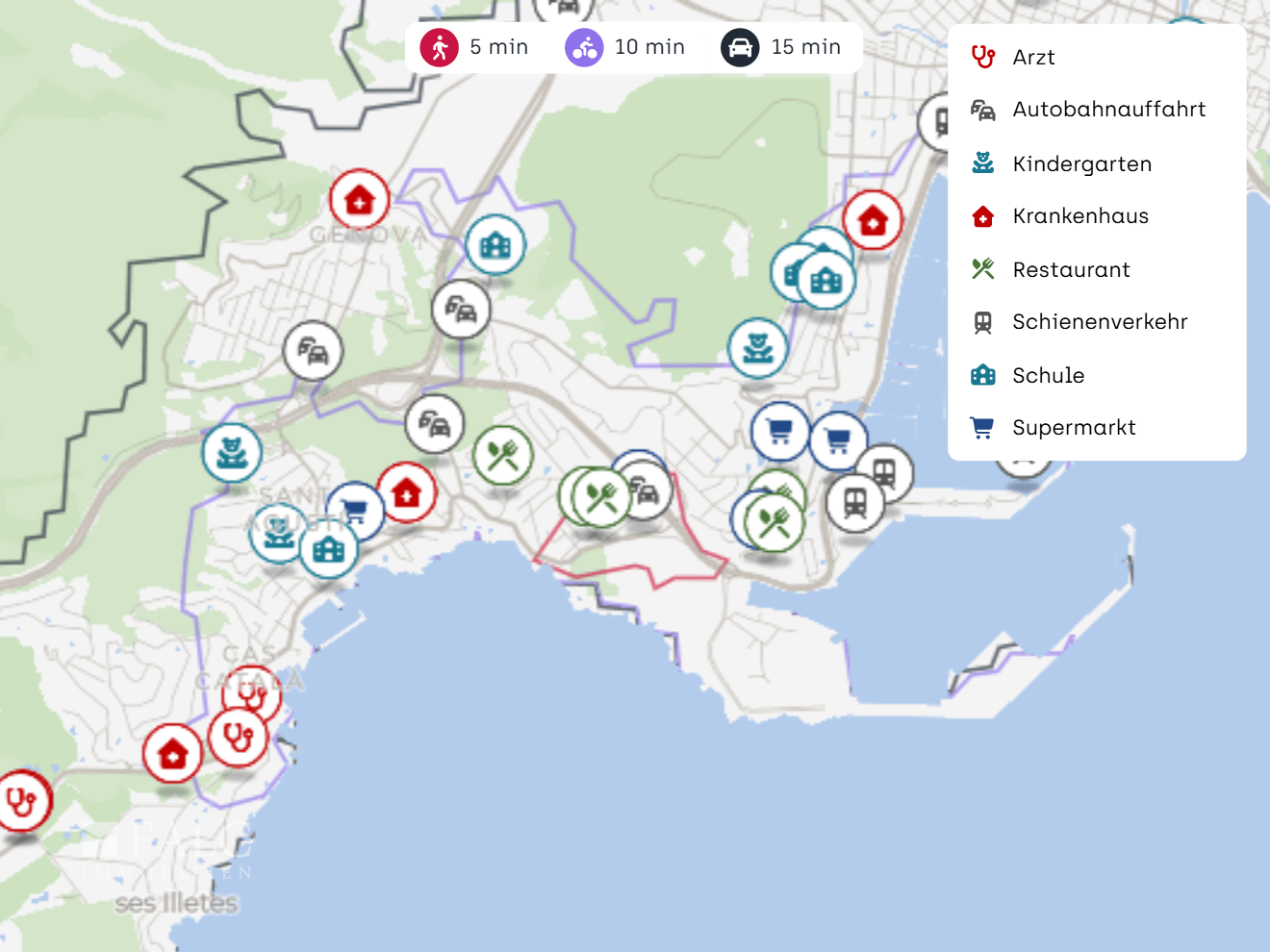 Eine Lage, die Strandnähe, Kultur und eine sehr gute Erreichbarkeit überzeugend kombiniert. Besonders hervorzuheben sind der Strand Platja de Cala Major, der Supermarkt Mercadona, die Fundació Pilar i Joan Miró a Mallorca sowie die fußläufige Busanbindung an der Avinguda de Joan Miró.