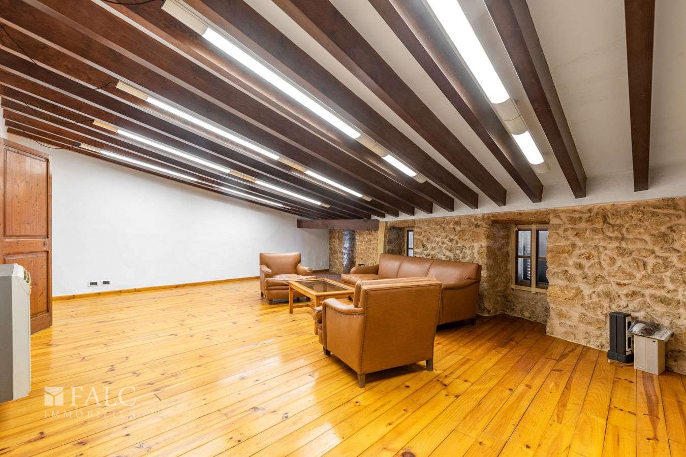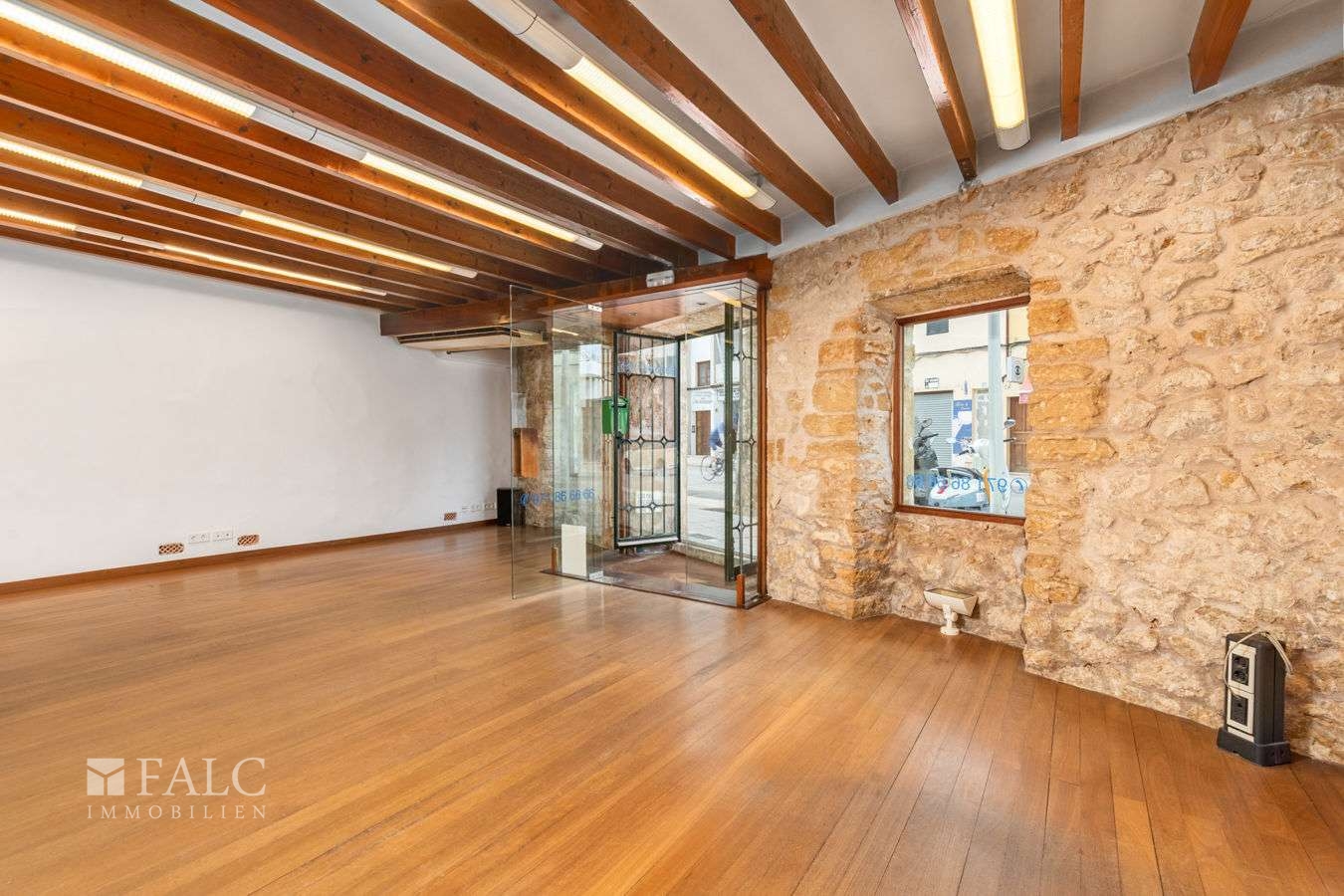 Dieses typisch mallorquinische Stadthaus in Puerto Pollensa mit Steinfassade aus dem 19. Jahrhundert wurde in Geschäftsräume im Erdgeschoss plus 2 Büroräume im ersten Stock umgebaut. Das Erdgeschoss besteht aus einer Rezeption, einer kleinen Küche, einer Speisekammer, einem Aktenraum, einer Toilette und 2 Büroräumen, eines davon mit Zugang zum überdachten privaten Parkplatz. Auf der ersten Etage befinden sich 2 weitere Büroräume welche auch als private Wohnräume genutzt werden können. Die zentral gelegene Immobilie wurde mit hochwertigen Materialien renoviert; Der Boden besteht aus 2,5 Zentimeter dickem, hochwertigem Holz: Teak in der Rezeption und im zentralen Büro, Eiche im Verwaltungsbüro und Kiefer im ersten Stock. Es hat auch Decken mit Holzbalken in ihrer natürlichen Farbe und mit Sandstein dekorierten Bögen. Die Immobilie ist mit 4 Telefonleitungen mit fortlaufenden Nummern, Glasfaser-Internet, aktualisierter elektrischer Verkabelung, einem Mehrraum-Musiksystem, einem Feueralarm, einem Safe und einer verstärkten Tür ausgestattet. Diese Immobilie teilt sich den Eingang zum Parkplatz mit einem weiteren Stadthaus, welches ebenfalls zum Verkauf steht.