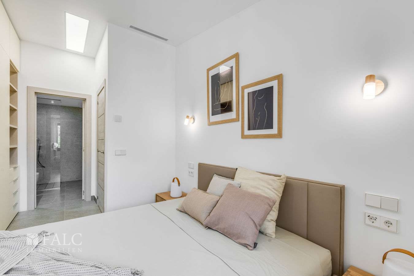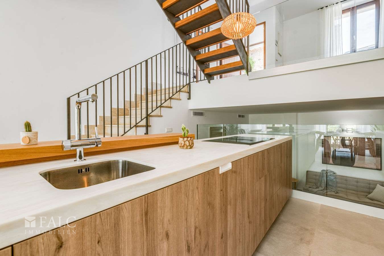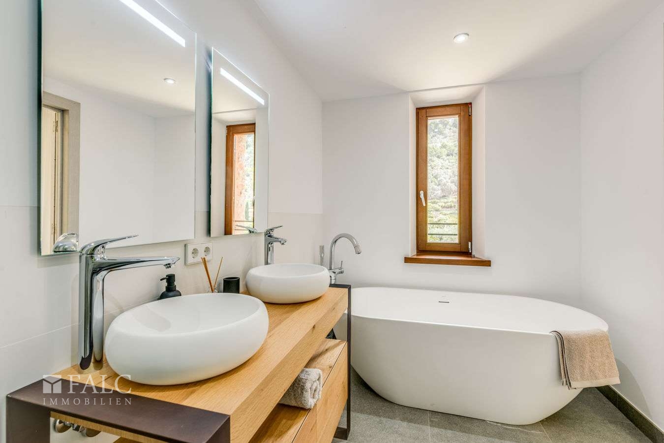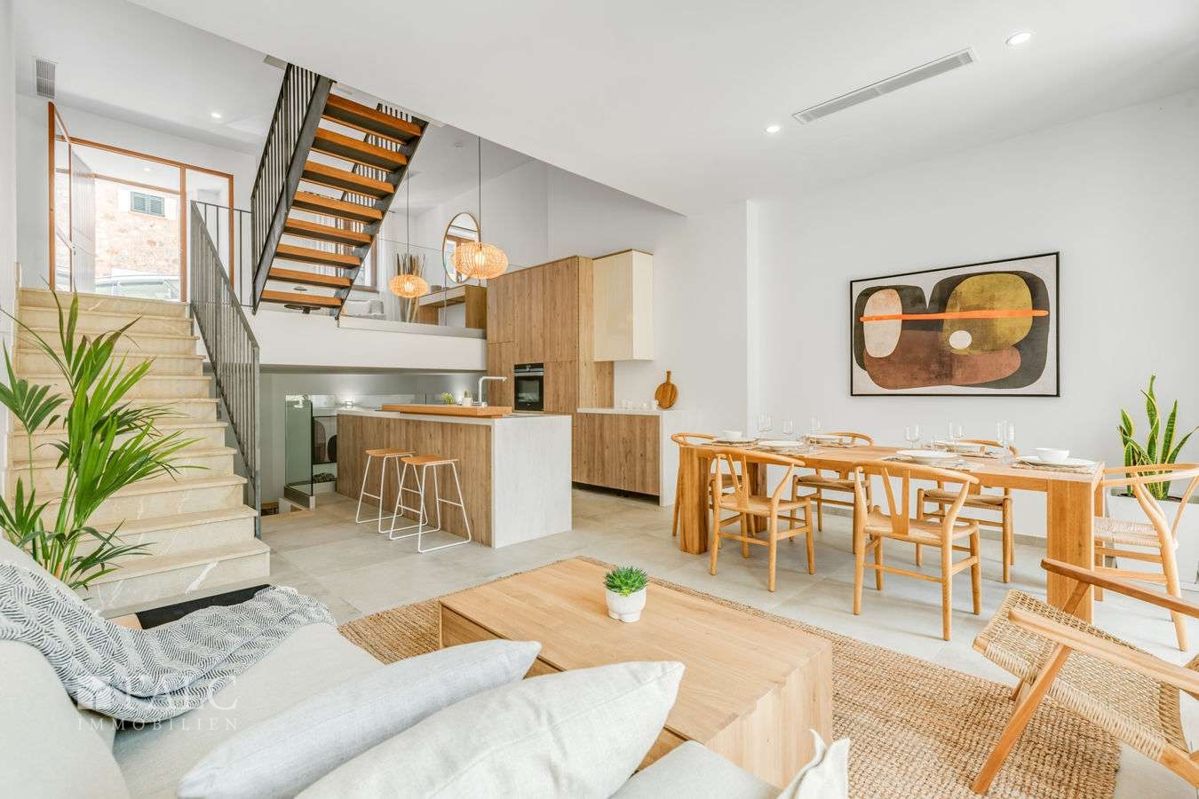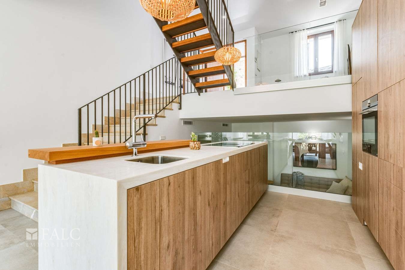 Umgeben von den herrlichen Bergen der Sierra de Tramontana, präsentieren wir Ihnen dieses neuerbaute Luxus-Reihenhaus in Fornalutx. Das exklusive Objekt ist Teil von 6 fantastischen, hochwertigen Reihenhäusern mit unschlagbarem Blick auf die atemberaubende Bergkulisse. Die lichtdurchfluteten Immobilien, die auf dem letzten Baugrundstück in Fornalutx errichtet wurden, bieten eine perfekte Kombination aus rustikalem und modernem Design. Jede Immobilie hat eine Grundstücksfläche zwischen 288 m2 und 1043 m2 und eine grosszügige Wohnfläche, die sich auf 3 geräumige Etagen verteilt. Dieses Haus ist eines der Größten, mit einer Wohnfläche von 171 m2, die sich auf eine schöne Eingangshalle, ein fantastisches Wohn-/Esszimmer mit grossen, lichtdurchfluteten Fenstern, die zum herrlichen Garten mit privatem Pool und wundervollem Blick auf die Berge führen, eine exzellente, mit Siemens- und Liebherr-Geräten ausgestattete Küche, 3 Schlafzimmer mit Einbauschränken und 3 Bäder en-suite aufteilt. Weitere Ausstattungsmerkmale: Fussbodenheizung, Klimaanlage warm/kalt, doppelt verglaste Fenster aus Iroko-Holz, Stein- und Keramikböden, Domotiksystem, automatische Bewässerungsanlage, Abstellraum sowie 2 Parkplätze, einer in der Garage und der andere im Freien. Fornalutx, inmitten der Sierra de Tramontana, nur 10 Kilometer von der Nordküste Mallorcas entfernt, gilt als eines der schönsten Dörfer Spaniens.