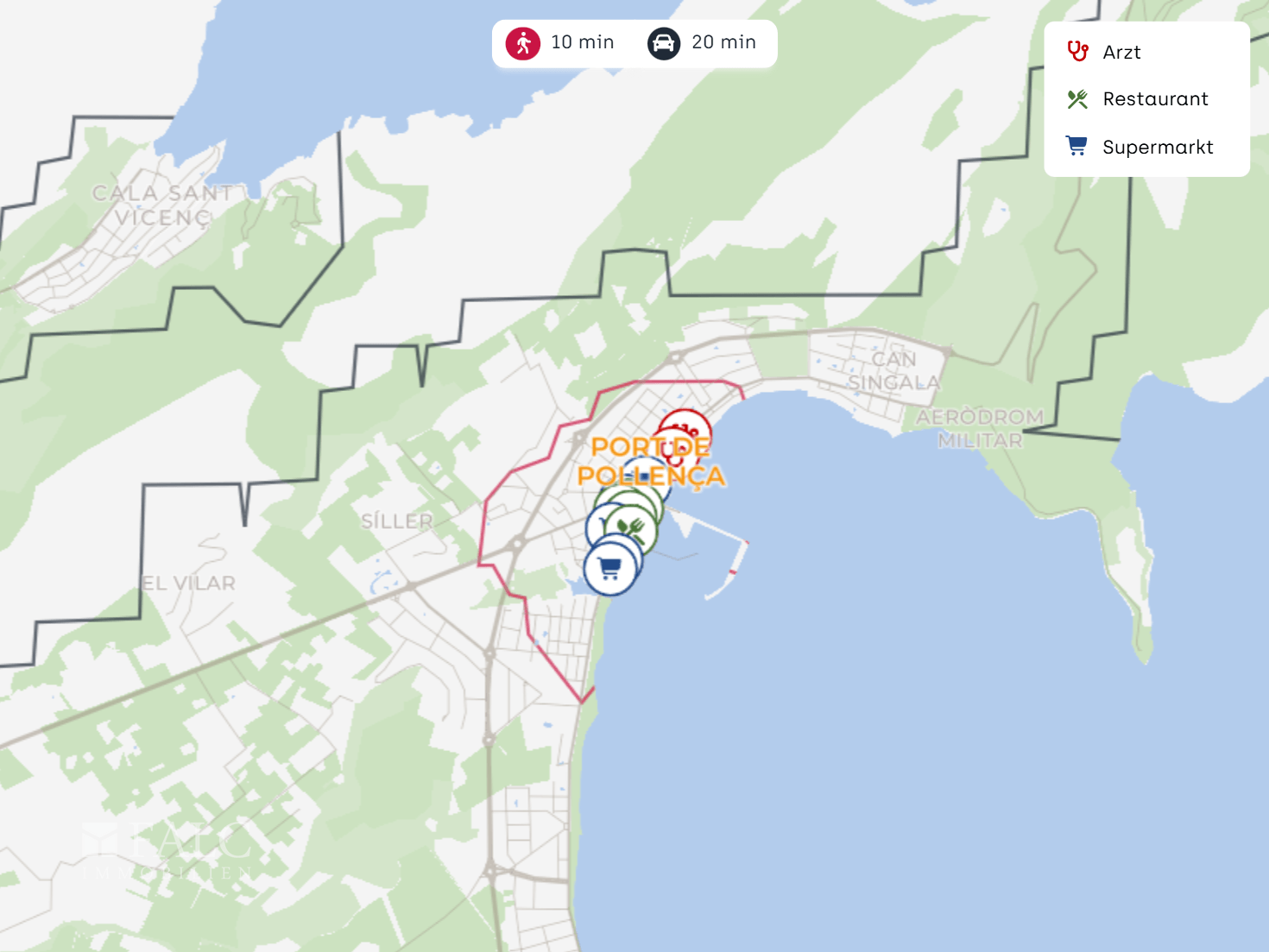 Die Wohnung liegt in Port de Pollença an der beliebten Uferzone und verbindet mediterranes Lebensgefühl mit einer alltagstauglichen Infrastruktur. Rund um die Immobilie prägen Cafés, Restaurants und kleine Läden das Straßenbild, sodass vieles bequem zu Fuß erledigt werden kann.