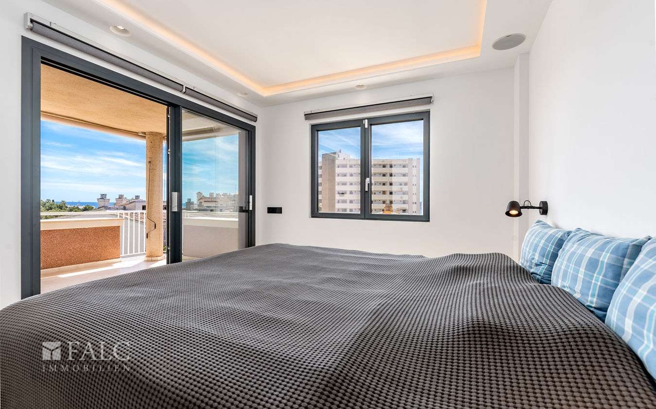 Dieses lichtdurchflutete, tolle Apartment in Portals Nous bietet einen schönen Weitblick auf das Meer und liegt im 4. Stock eines gepflegten Gebäudes mit Aufzug, nur wenige Minuten zu Fuss vom hübschen Strand entfernt, in Südwesten der Insel Mallorca. Die Wohnung wurde 2022 komplett saniert und verfügt über eine bebaute Fläche von ca. 150 m2, die sich wie folgt verteilen: ein geräumiges Wohn-/ Esszimmer mit Zugang zur Terrasse mit toller Aussicht, eine amerikanische Küche, 3 Schlafzimmer mit Einbauschränken, 3 Bäder (2 davon en Suite), ein Ankleideraum, sowie ein Abstellraum. Die gepflegte Anlage bietet den Eigentümern einen fantastischen Gemeinschaftspool, in dem Sie die heissen Sommertage auf Mallorca geniessen können. Zu den Ausstattungsmerkmalen dieses attraktiven Apartments in Portals Nous zählen: Klimaanlage, Fussbodenheizung, doppelt verglaste Fenster, Soundsystem per Bluetooth, sowie Alarmanlage. Zur Verfügung steht ein Tiefgaragenplatz. Es handelt sich um eine tolle Lage, nur wenige Minuten zu Fuss von dem exklusiven Yachthafen Puerto Portals, mit seinen exzellenten Restaurants, Cafés, luxuriösen Boutiquen und herrlichen Stränden mit türkisfarbenem Wasser entfernt.