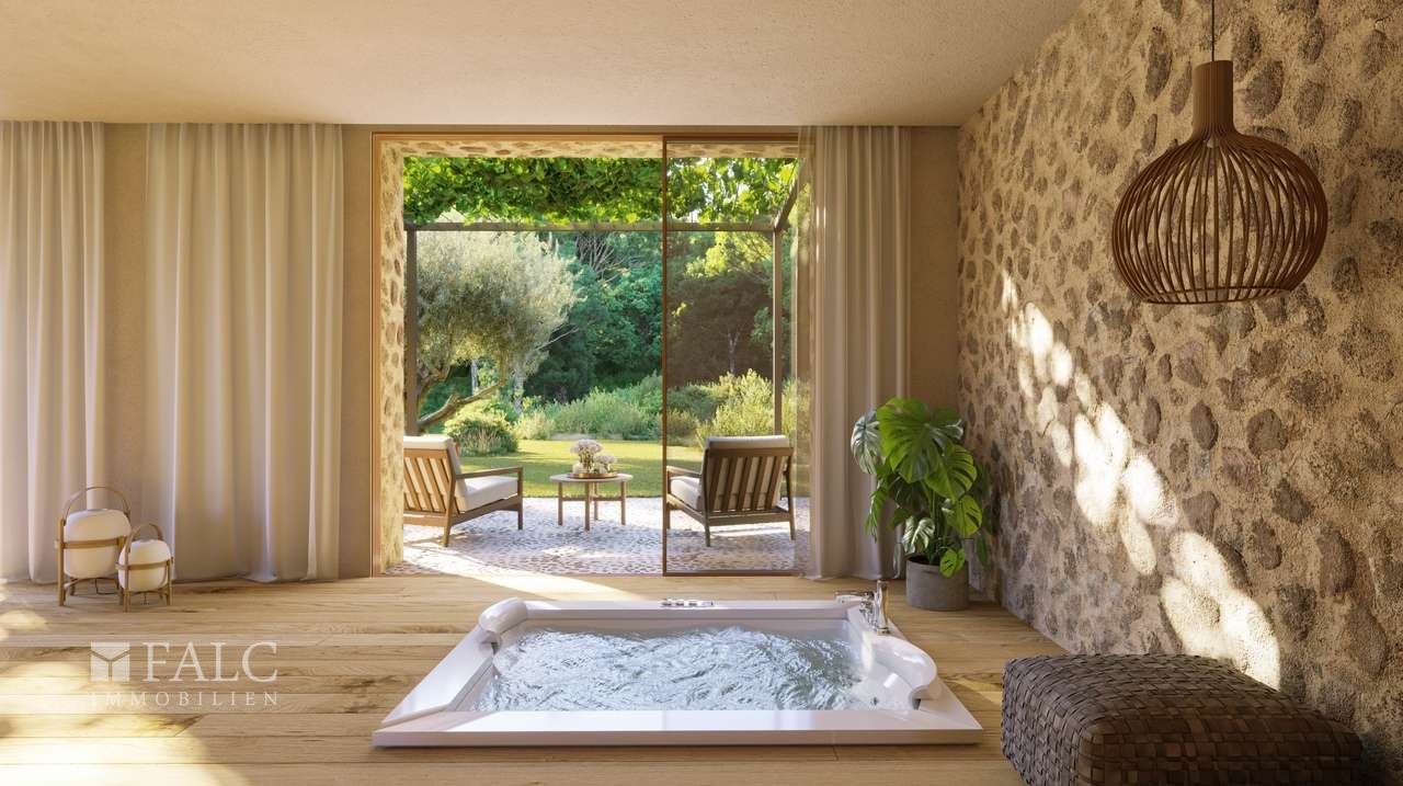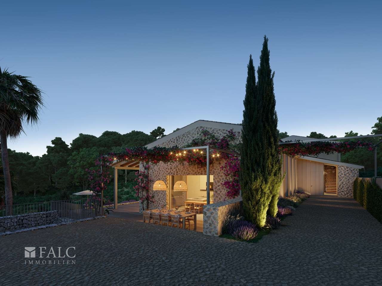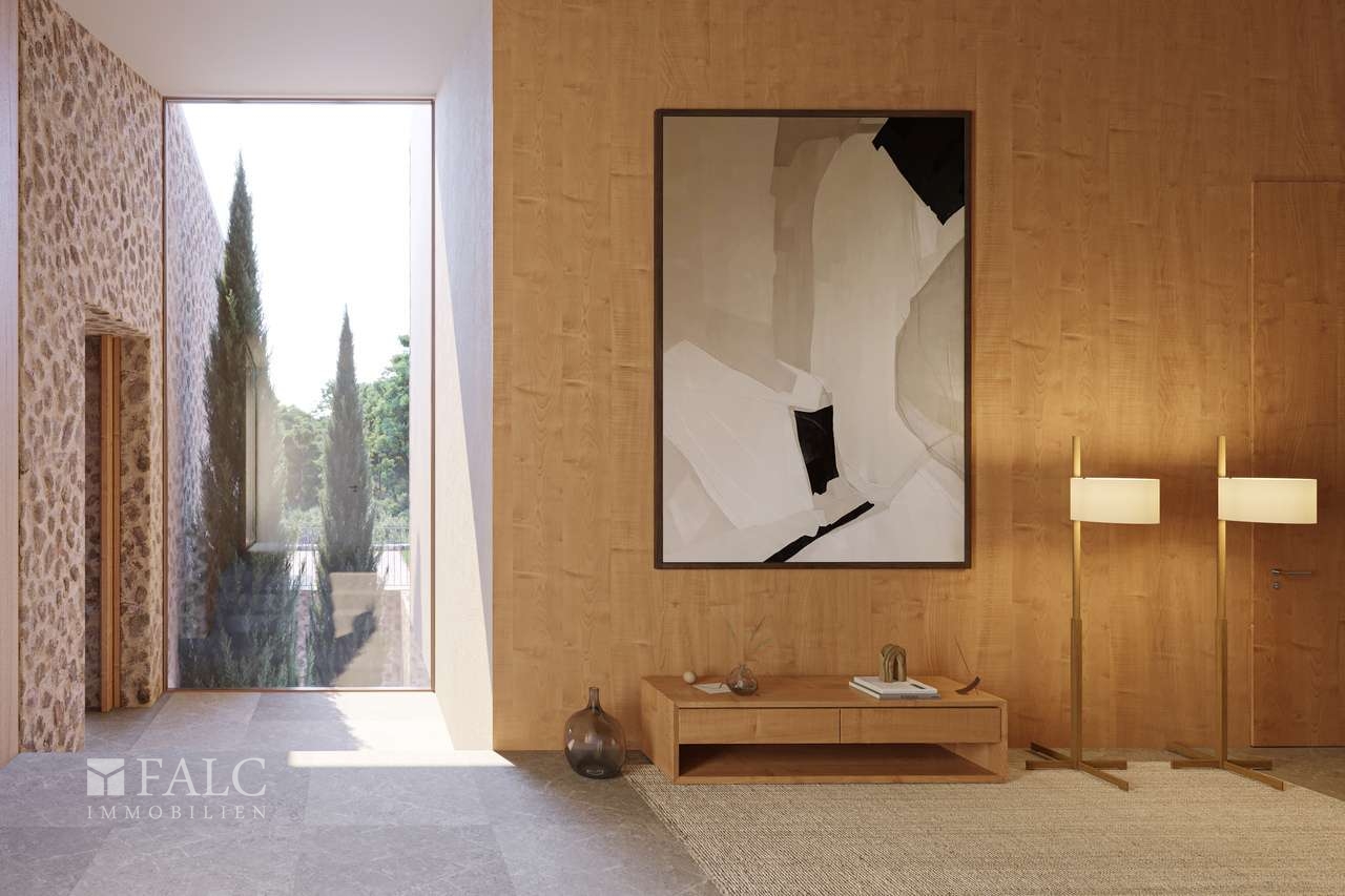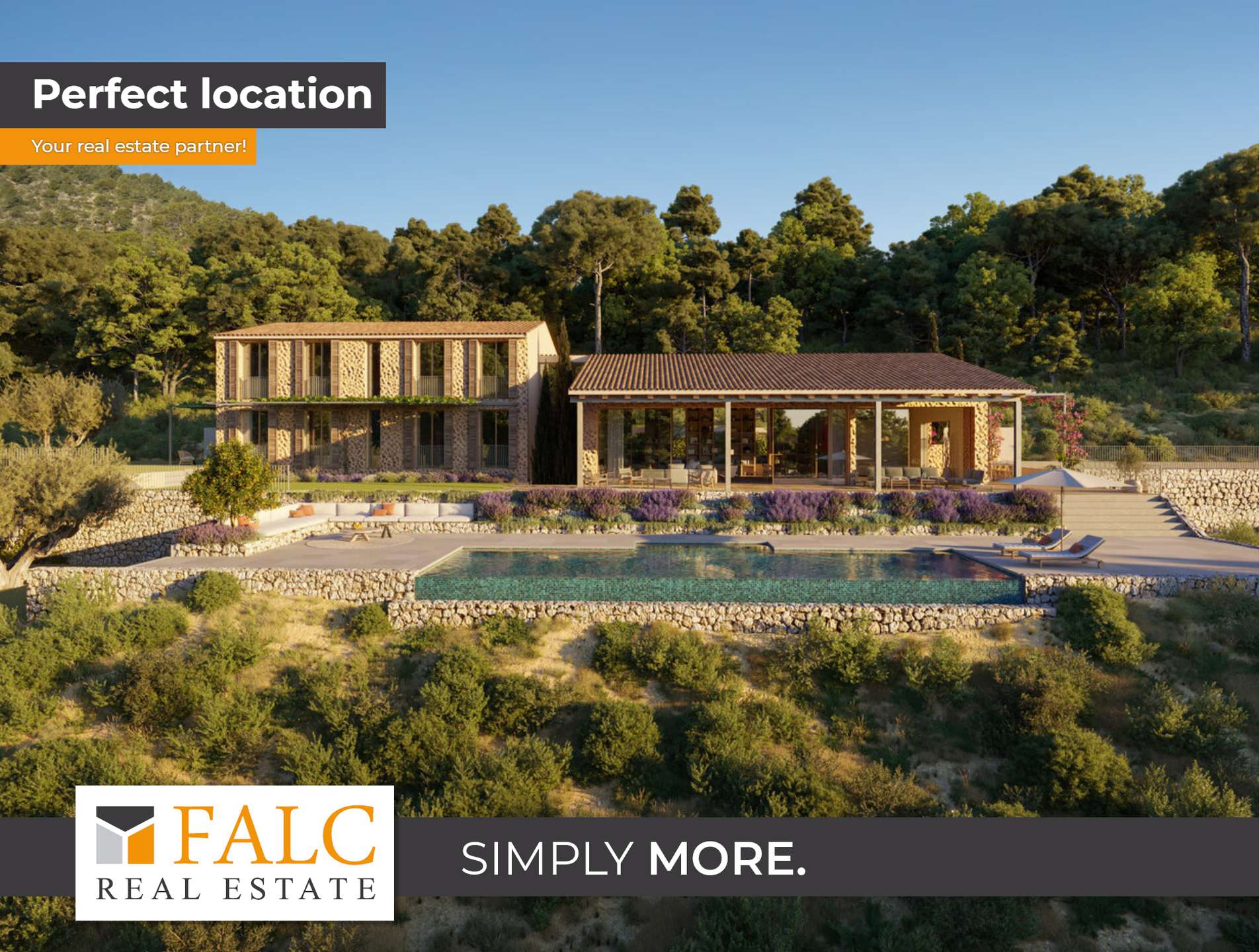 Dieses exklusive Projekt einer luxuriösen Finca in Bunyola ist von Natur umgeben, bietet einen wunderschönen Ausblick auf die Berge und liegt in der traumhaften Gegend der Serra de Tramuntana. Das Grundstück misst ca. 34.100 m2 und das Projekt umfasst eine Natursteinfinca mit einer bebauten Fläche von ca. 700 m2, die sich wie folgt aufteilen: ein geräumiges Wohn-/ Esszimmer mit hohen Decken und Kamin, eine moderne Küche mit eigener Terrasse, sowie 5 grosse Schlafzimmer mit Bädern en Suite (das Hauptschlafzimmer mit geräumigem Ankleideraum). Darüber hinaus, wird das Haus auch über einen SPA-Bereich, Sauna, Fitnessraum, ein kleines Studio und Weinkeller verfügen. Der charmante Aussenbereich mit einem schönen Garten und herrlichem Pool lädt zum Entspannen und Geniessen des magischen, mediterranen Ambiente der hübschen Insel Mallorca ein. Zu den Ausstattungsmerkmalen dieser exklusiven Finca in Bunyola werden zählen: Klimaanlage, Fussbodenheizung, sichtbare Holzdeckenbalken, doppelt verglaste Fenster, ein Aufzug, eigener Brunnen und Parkettböden. Zur Verfügung wird eine grosse Garage mit Platz für 3 Fahrzeuge stehen. Es handelt sich um eine sehr attraktive Lage, die viel Privatsphäre, Ruhe, sowie tolle Ausblicke bietet. Der nächste traumhafte Strand mit türkisfarbenem Wasser ist ca. 25 Autominuten entfernt.
