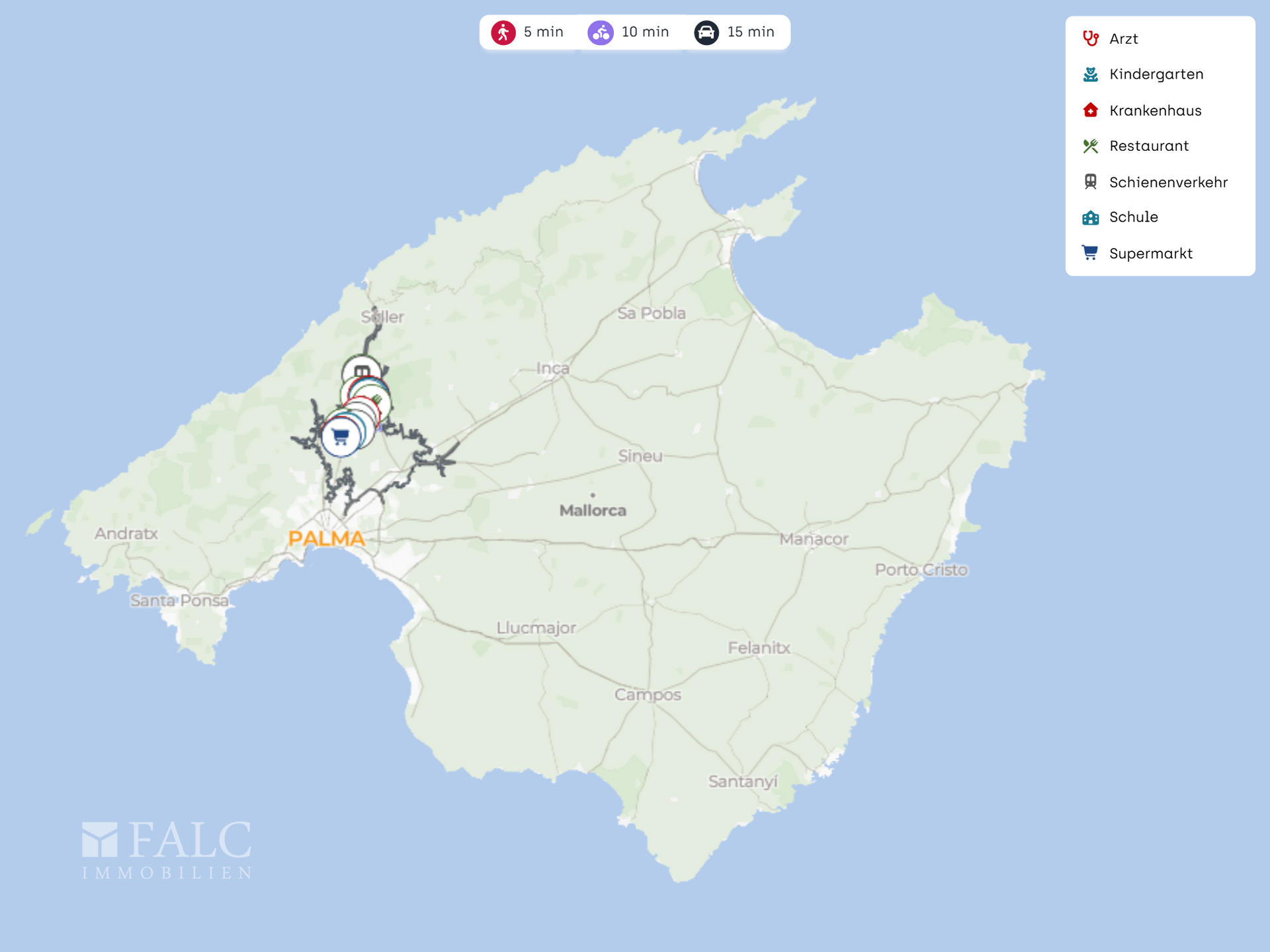 Für weitere Ziele auf der Insel ist die Lage ebenfalls komfortabel. Der Flughafen Palma de Mallorca ist mit dem Auto in ca. 25 Minuten erreichbar.