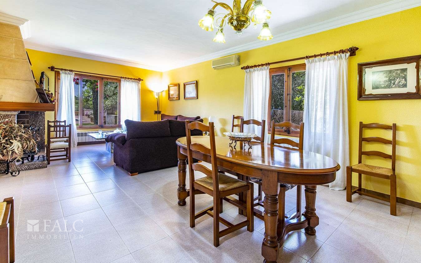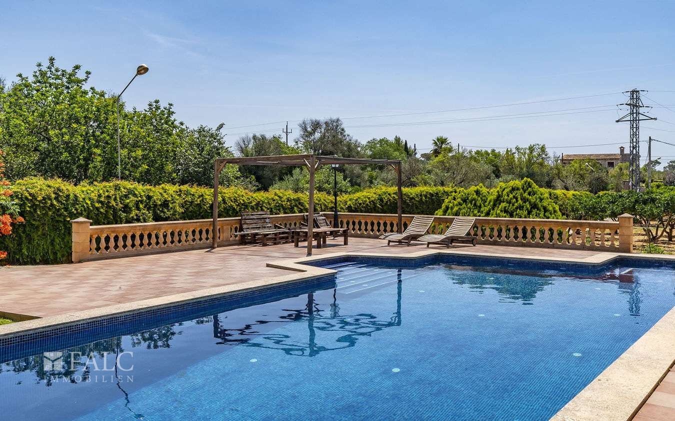 Umgeben von wunderschöner Natur und einer beeindruckenden Orangenbaumplantage, präsentieren wir diese charmante Finca in Sencelles. Die wunderschöne Immobilie mit südlicher Ausrichtung und einem grossen, erfrischenden Pool (10x5m) mit Jacuzzi befindet sich in der Nähe eines üppigen Waldes, nicht weit vom Ortskern von Sencelles entfernt. Die gemütliche 2-stöckige Finca liegt auf einem ca. 20.000 m2 grossen Grundstück mit viel Privatsphäre und bietet eine bebaute Fläche von ca. 187 m2, die sich wie folgt verteilt: Ein offener, lichtdurchfluteter Wohn-/Essbereich mit Kamin, der auf die tolle ca. 50 m2 grosse Poolterrasse mit grosszügigem, überdachtem Grillplatz mit Steinofen führt, eine moderne Einbauküche aus dem Jahr 2021, 4 gemütliche Schlafzimmer und 2 Bäder. Zudem gibt es zahlreiche Parkmöglichkeiten und ein attraktives Gästeapartment mit Schlaf- und Badezimmer ausgestattet. Weitere Detailmerkmale: Fliesenböden, Klimaanlage warm/kalt, Zentralheizung, Aussendusche -und toilette, Stadtwasser und -depot, Stadtstrom, ein grosser Parkplatz und Carport, Hauswirtschaftsraum und ein Abstellraum im 2. Stock der Finca. Sencelles ist ein schönes kleines Dorf, im Zentrum Mallorcas, geprägt von ursprünglich belassener mallorquinische Architektur. Das Stadtzentrum von Palma und der Flughafen sind nach ca. 30 Fahrminuten zu erreichen.