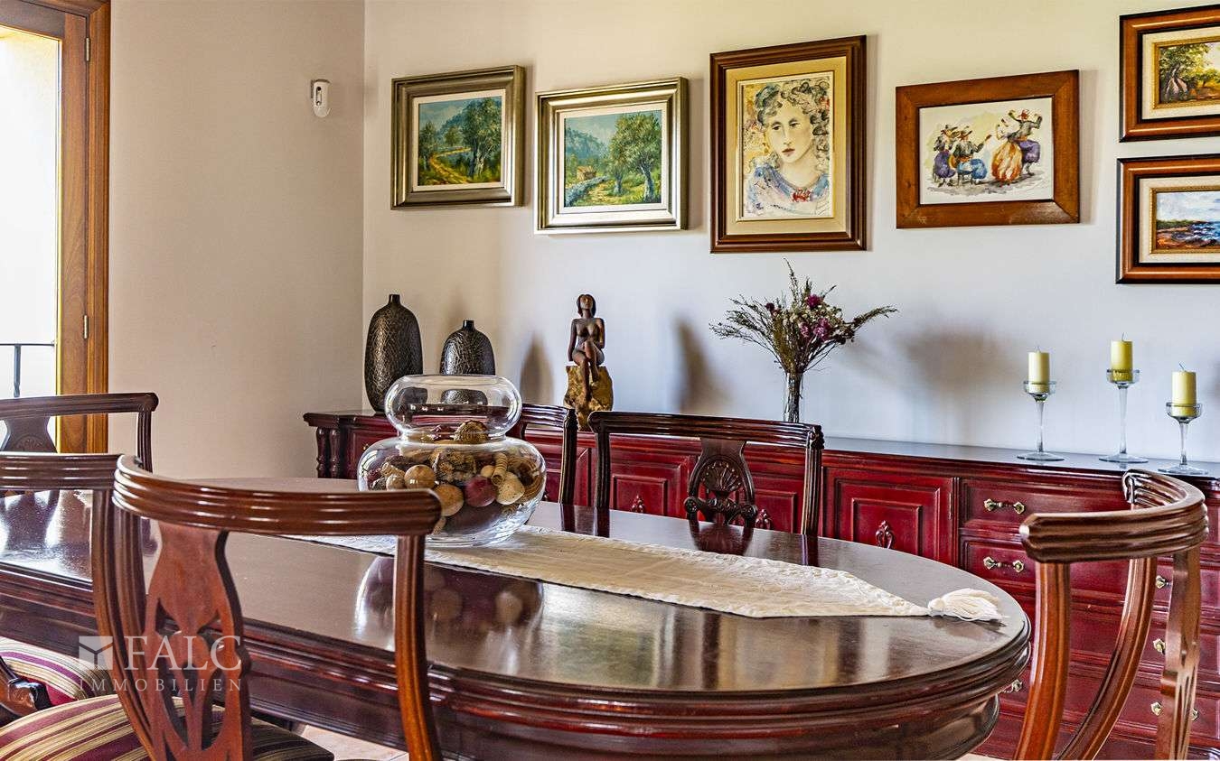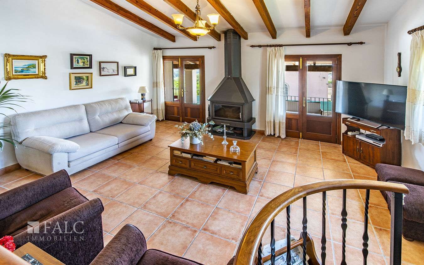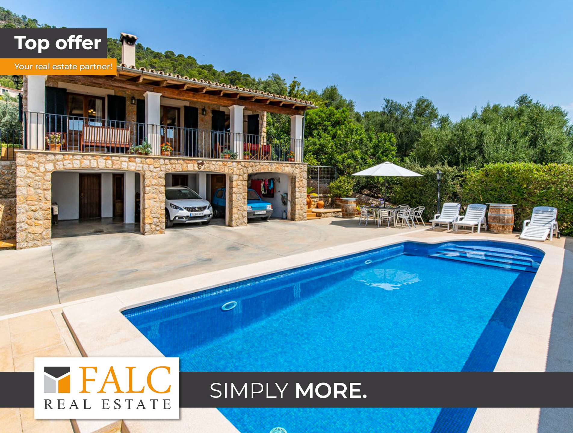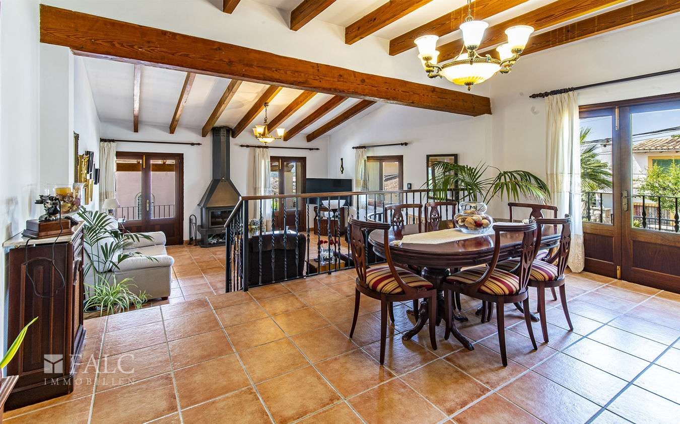 Auf einem schönen Grundstück von ca. 680 m2 mit Südausrichtung, nur wenige Meter vom Dorf entfernt, präsentieren wir Ihnen diese fantastische Villa im rustikalen Stil in Alaró. Das sonnige Objekt mit Steinfassade, umgeben von Naturrasen, verfügt über einen herrlichen Bergblick und einen wunderschönen Salzwasserpool, der an den heißesten Tagen zur Abkühlung einlädt. Die fabelhafte Immobilie verfügt über eine bebaute Fläche von ca. 197 m2, die sich auf 2 grosszügige Ebenen aufteilt: Eine schöne Eingangshalle mit Holzbalken, ein gemütliches Wohnzimmer mit Kamin und Zugang zu einer wunderschönen überdachten Terrasse mit Blick auf die Berge, ein zum Wohnzimmer hin offenes Esszimmer, eine grosszügige voll ausgestattete Küche, 4 Schlafzimmer mit Einbauschränken, eines davon mit Bad en suite, sowie ein weiteres zusätzliches Bad. Der schöne Aussenbereich des Hauses bietet angenehme Grünflächen mit Palmen, Aussenterrassen und einen reizenden Poolbereich mit Liegestühlen. Das Haus verfügt über eine Garage für 2 Fahrzeuge, einen Keller mit Gäste-WC und einen Abstellraum. Weitere Merkmale: mallorquinische Fensterläden, elektrische Heizung und Fliesenboden. Alaró ist ein kleines Dorf im Landesinneren Mallorcas, gelegen in einem schönen Tal am Fuße des Tramuntana-Gebirges. Mit etwa 5.500 Einwohnern und kaum 30 Kilometer von Palma und 25 Kilometer von Sóller entfernt, ist Alaró eine schöne Enklave im Landesinneren von Mallorca, deren Geschichte seit dem 13. Jahrhundert dokumentiert ist.