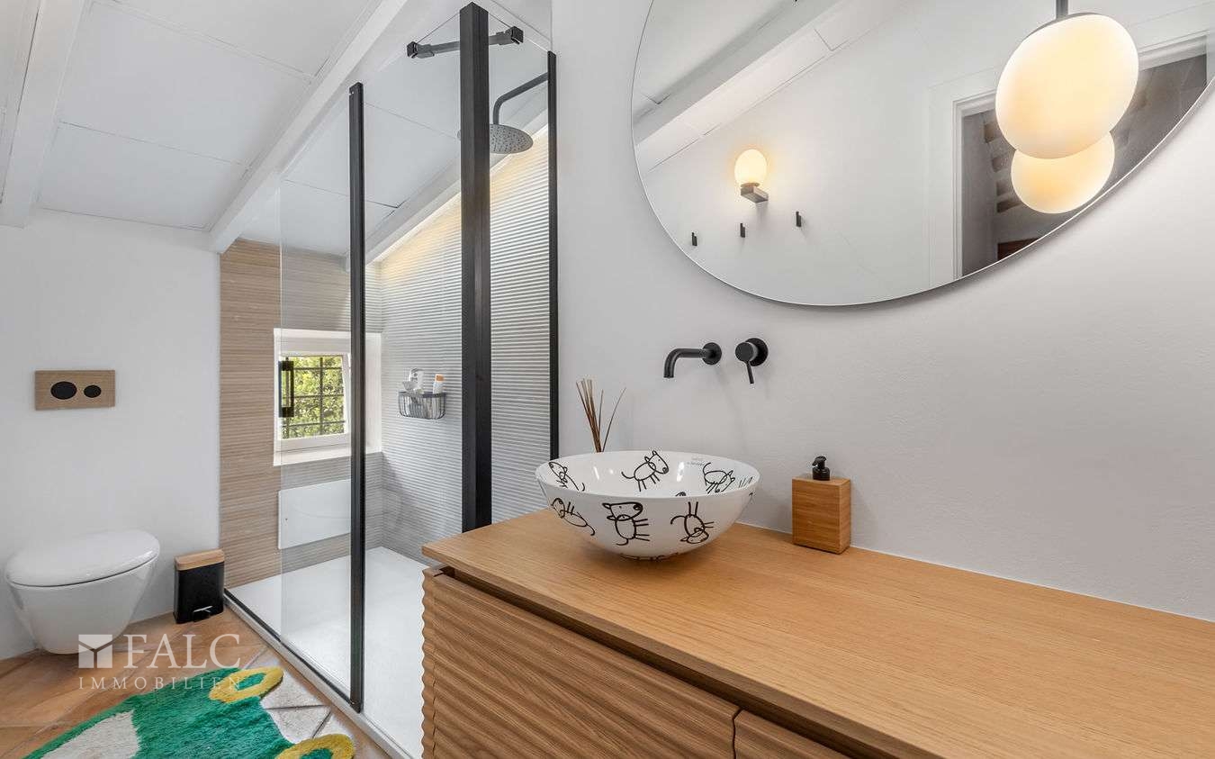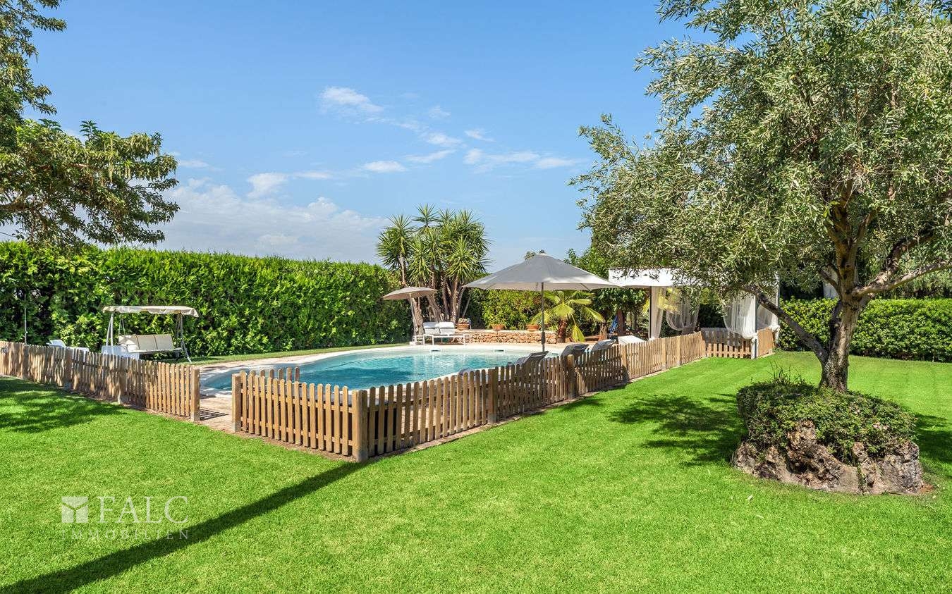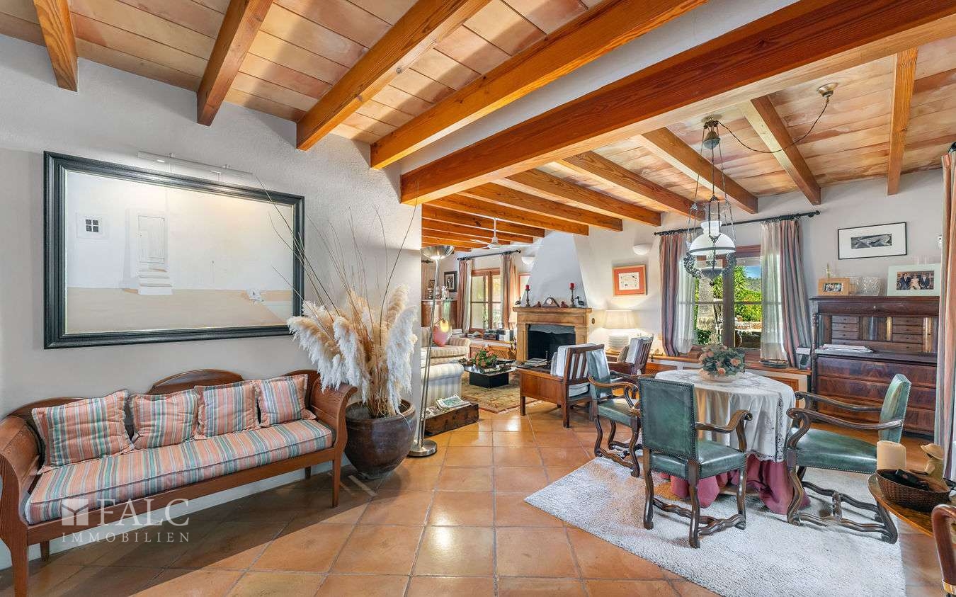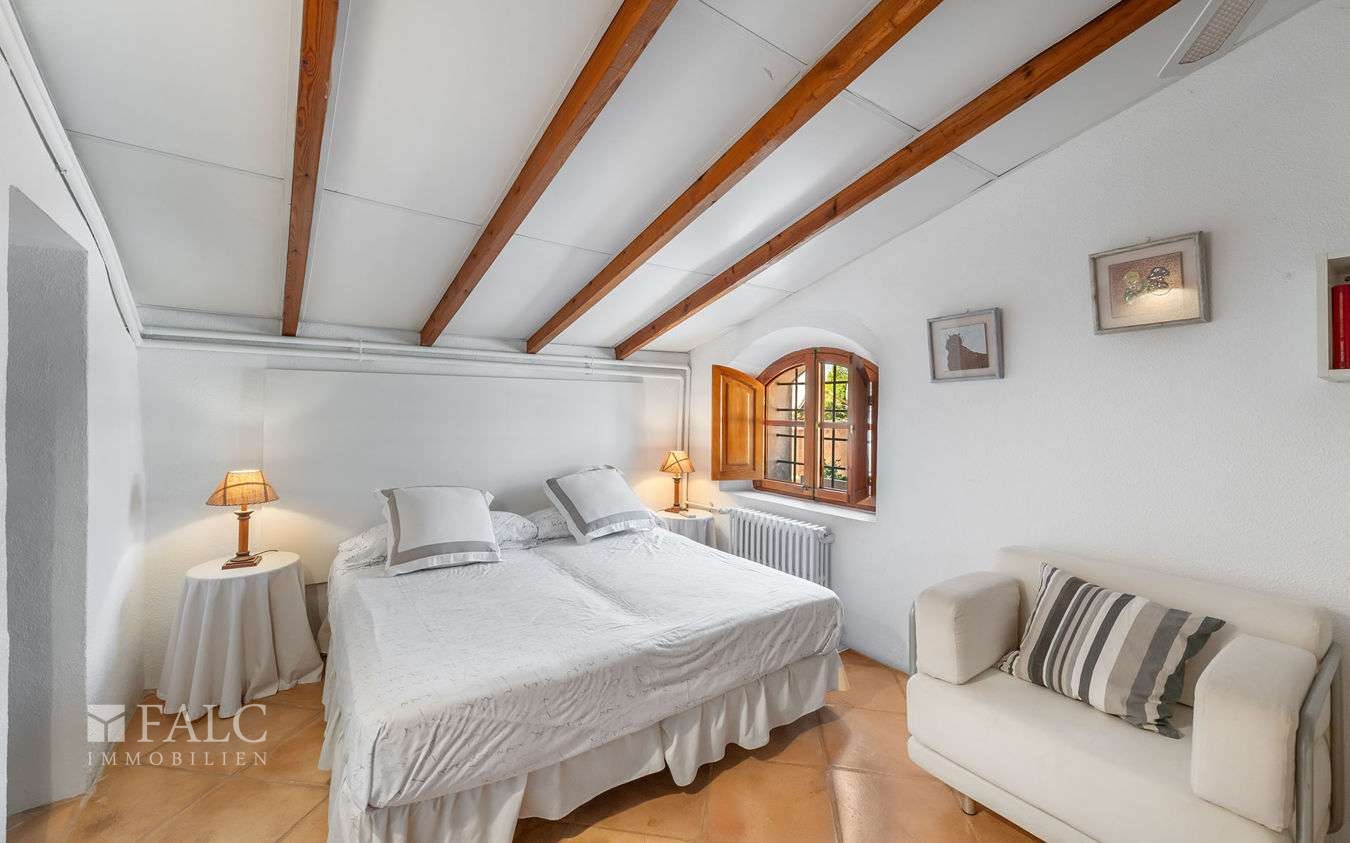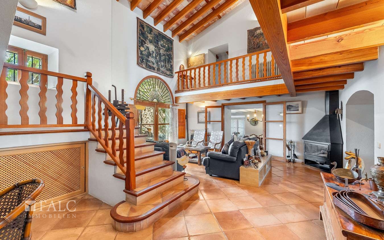 Diese charmante Finca in Santa María del Camí bietet einen wunderschönen Weitblick bis hin zu den Bergen, viel Privatsphäre und liegt in einem hübschen Dorf, nur 20 Autominuten von der Inselhauptstadt – Palma de Mallorca – entfernt. Das attraktive Objekt verfügt über eine bebaute Fläche von ca. 612 m2, die wie folgt aufgeteilt sind: ein gemütliches Wohn-/ Esszimmer mit Kamin und sichtbaren Holzdeckenbalken, eine möblierte und ausgestattete Küche, 5 schöne Schlafzimmer und 6 Badezimmer (3 davon sind en suite und wurden kürzlich komplett renoviert). Darüber hinaus, gibt es noch ein separates Gebäude, das als Gästehaus genutzt werden könnte. Der charmante Aussenbereich mit einem schönen Garten mit mediterranen Pflanzen und einem fantastischen Pool lädt zum Entspannen und Geniessen der magischen Tage und Nächte auf der Insel Mallorca ein. Zu den Ausstattungsmerkmalen dieser tollen Finca in Santa Maria gehören: Klimaanlage, Ölzentralheizung, 5 Kamine, ein privater Brunnen und Fliesenböden. Zur Verfügung steht eine geräumige Garage mit Platz für 3 Autos. Es handelt sich um eine ruhige und attraktive Lage, nur 20 Autominuten von Palma und dem nächsten hübschen Strand mit kristallklarem Wasser entfernt.