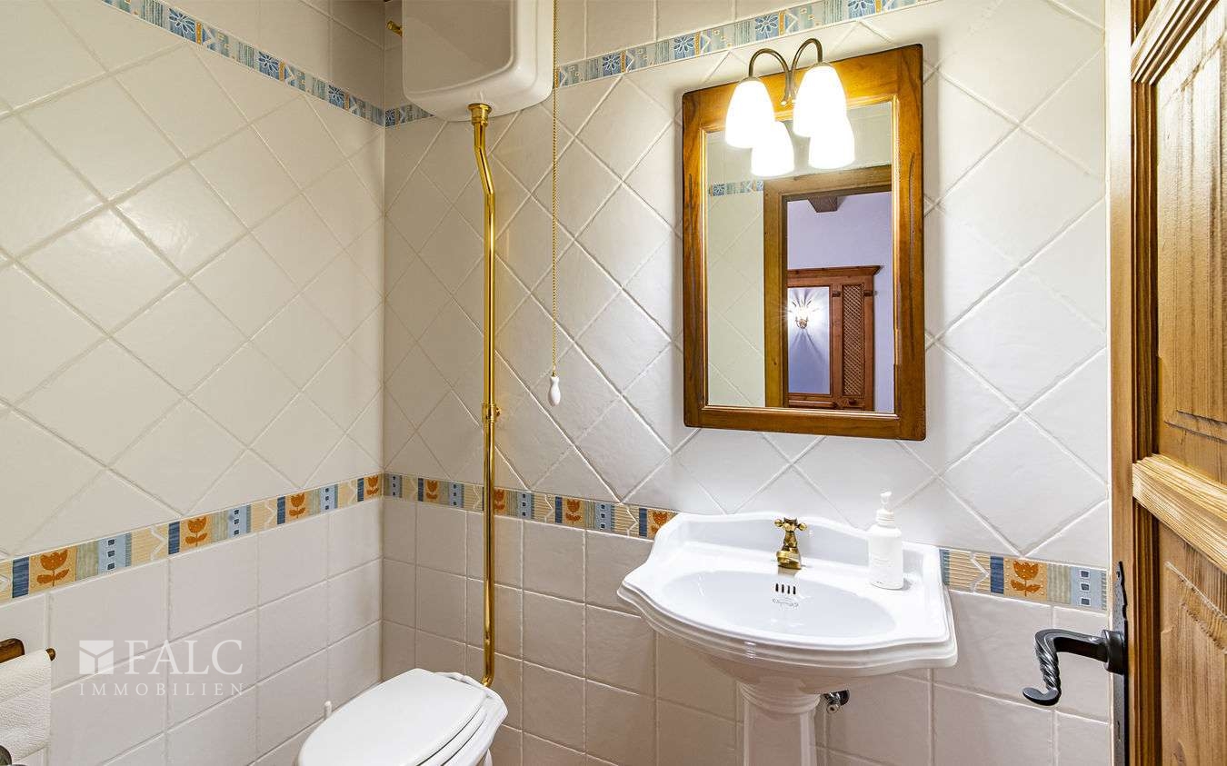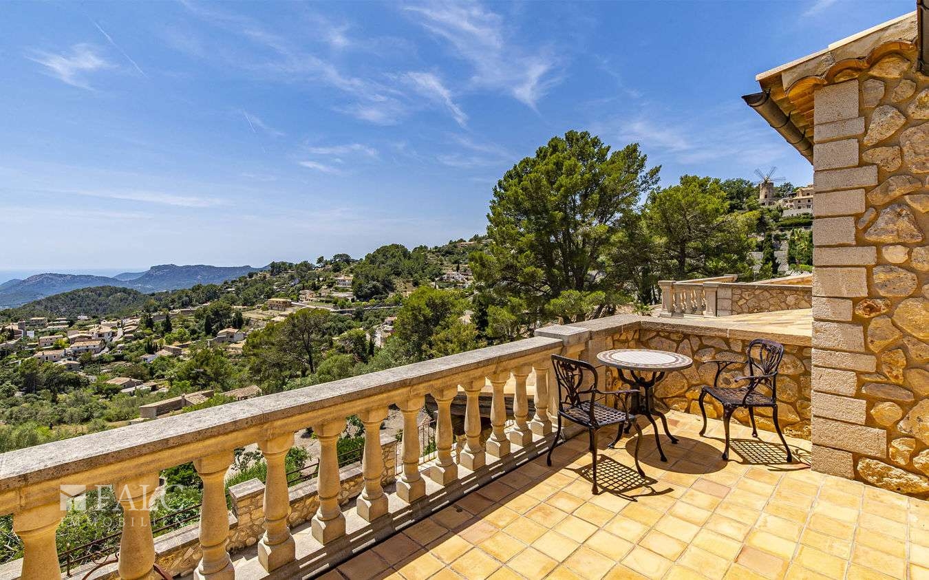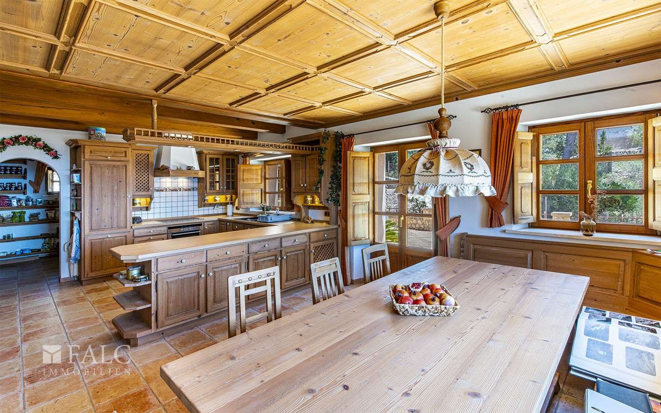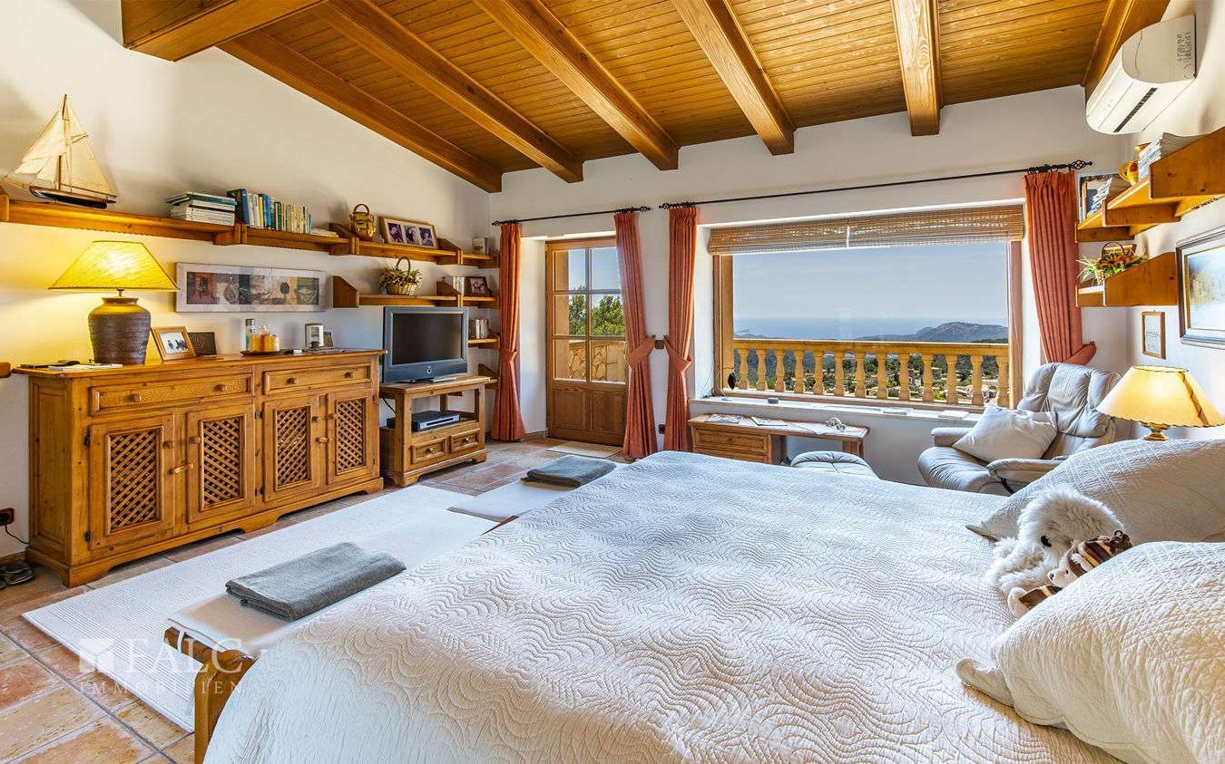 Die fantastische Finca in Galilea befindet sich auf höchster Lage des malerischen Dorfes, einer herrlichen Gegend des UNESCO-Welterbes Sierra de Tramontana. Die Süd/West Lage bietet einen fantastischen Berg-/ bzw. Panorama-Meerblick und bietet viel Helligkeit und Tageslicht bis zum Sonnenuntergang. Das einzigartige Objekt, mit ca. 631 m2 Wohnfläche, liegt auf einem ca. 4.795 m2 grossen Hanggrundstück und verteilt sich auf den Hauptwohnbereich und einen Gästeapartment. Hauptwohnbereich: Ein Eingangsbereich, eine offen, voll ausgestattete Küche mit Kochinsel, ein grosszügiger Wohn-Essbereich mit Zugang auf die Sonnenterrasse, eine Bibliothek mit Sitzmöglichkeiten, eine Gästetoilette, ein Abstellraum und ein Hauswirtschaftsraum. Im Obergeschoss befindet sich eine beeindruckende Mastersuite mit Zugang auf den Balkon und mit fantastischem Panorama-Meerblick, sowie ein Wohnzimmer und 2 weitere Doppelschlafzimmer en suite. Im Untergeschoss befindet sich ein originaler Ballett-Saal, ein Badezimmer, eine vorinstallierte Sauna, ein Indoor-Pool mit Vorinstallierung zum Beheizen des Pools, ein Abstellraum, ein Technikraum und Zugang zum Luftkeller. Das gemütliche Gäste-Apartment von ca. 50 m2, mit separatem Eingang, verteilt sich auf ein Wohnzimmer mit offener Küche und einen Schlafbereich. Die Lizenz zum Bau eines Aussenpools wurde bereits beantragt. Des Weiterem gibt es eine Fussbodenheizung, eine Öl-Zentralheizung und eine Garage für 2 Fahrzeug und mehrere Stellplätze. Galilea ist eine Ortschaft im Westen Mallorcas, die zur Gemeinde Puigpunyent gehört.