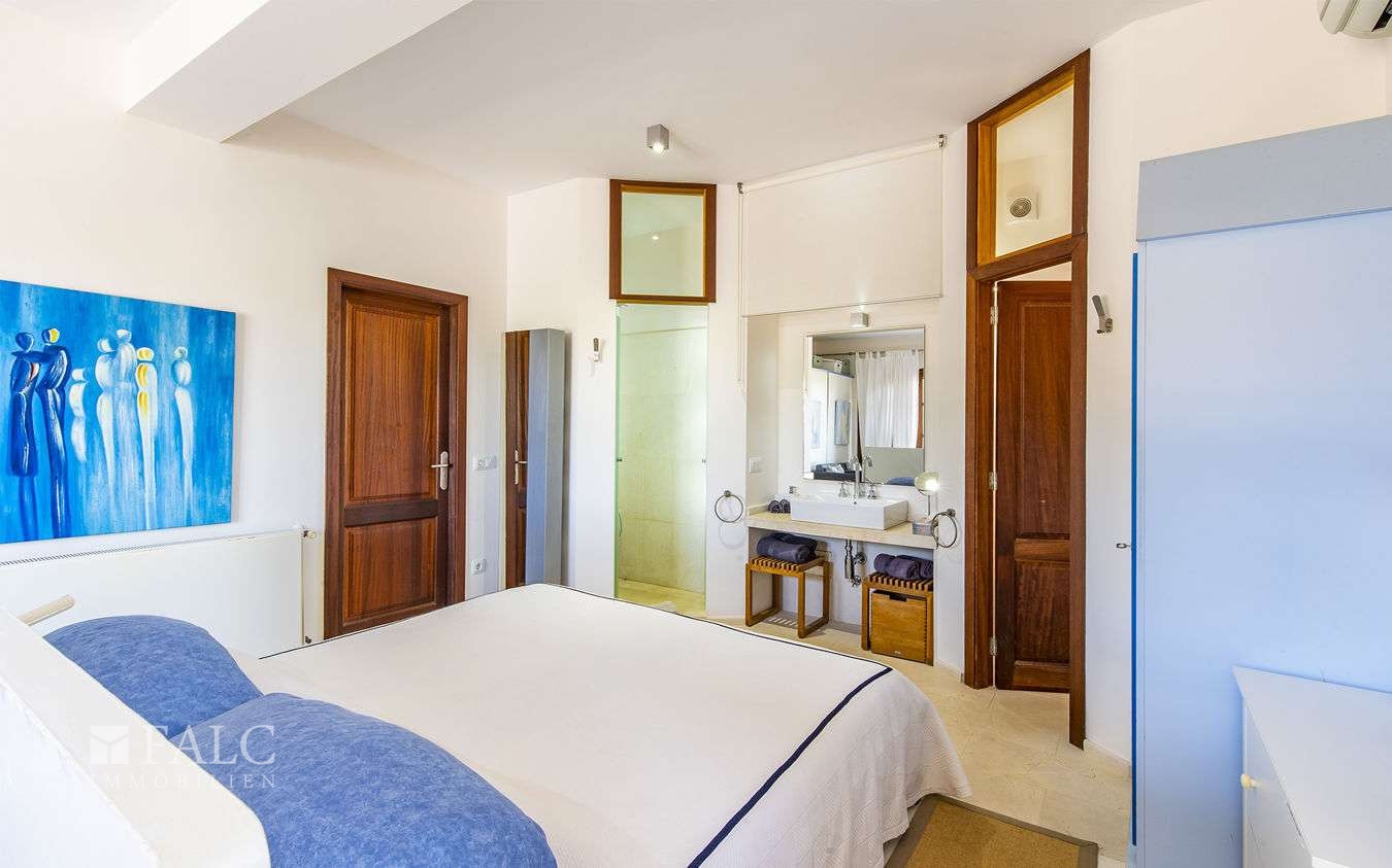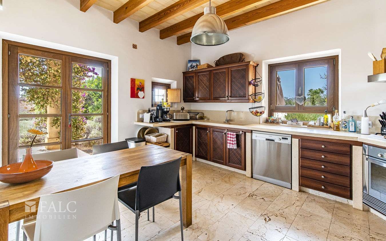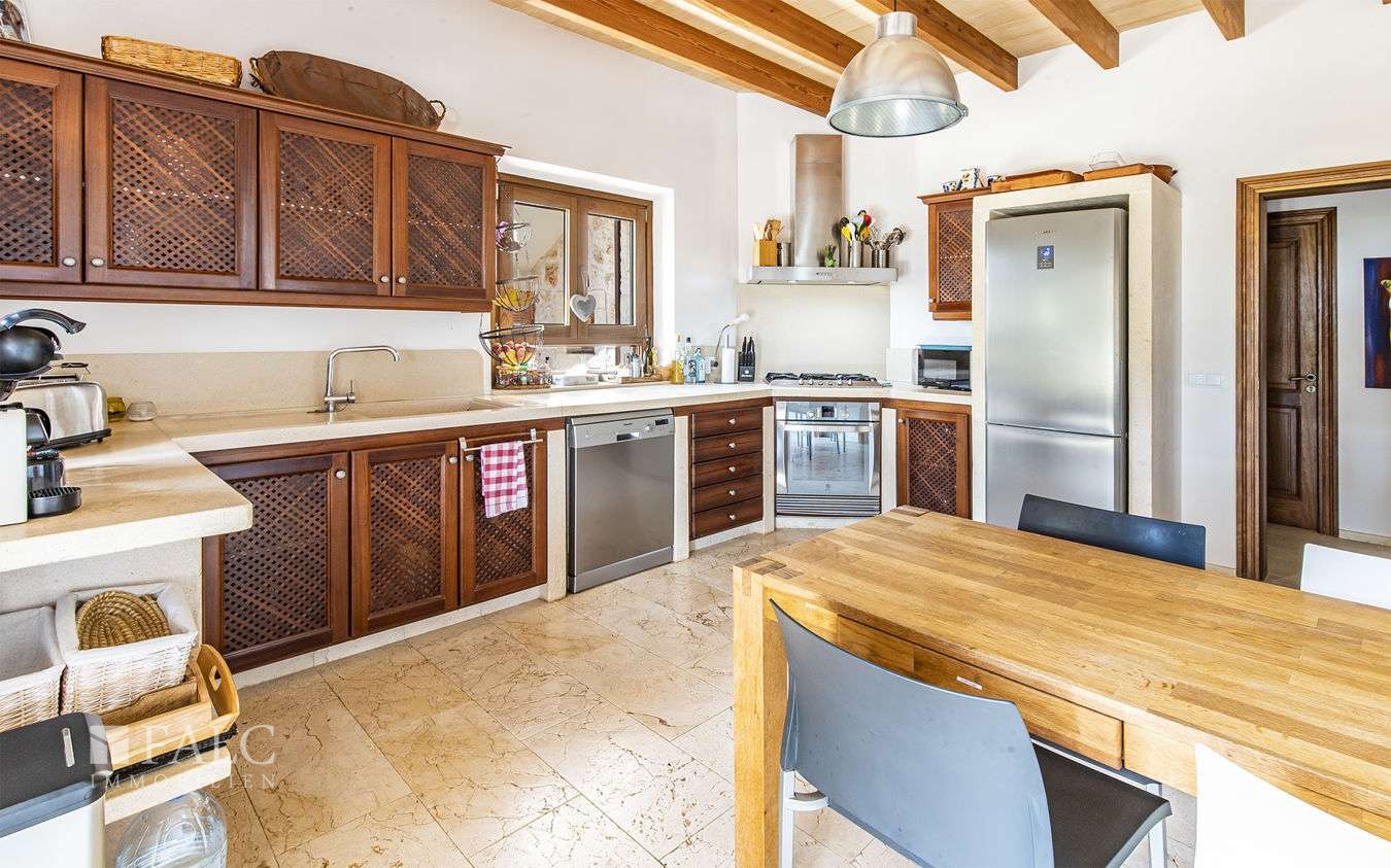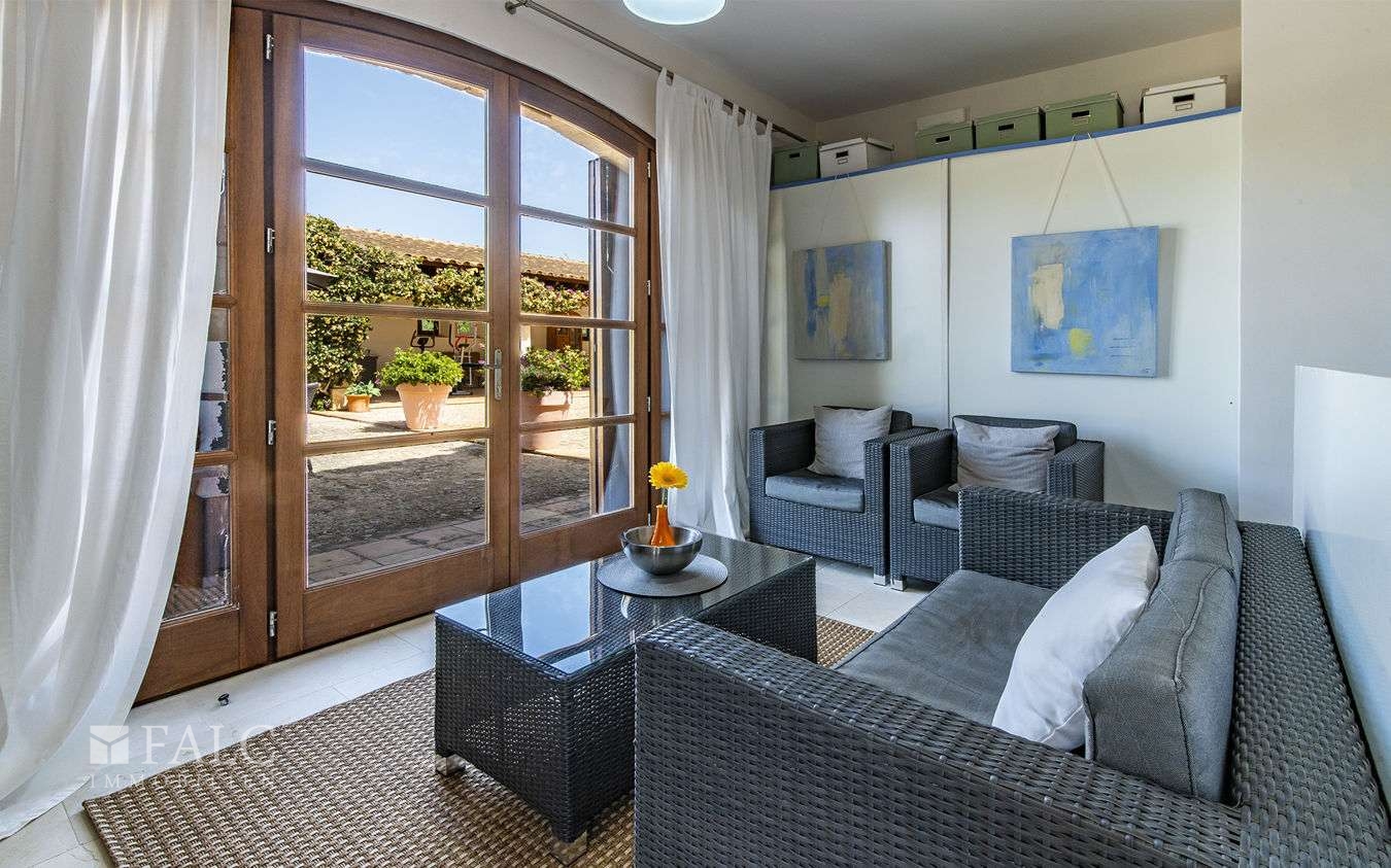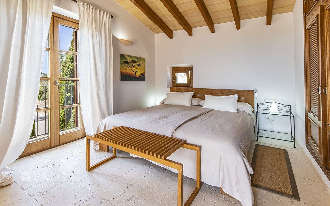 Diese wunderschöne Finca bei S'Espinagar mit Ferienvermietungslizenz für 12 Personen und beeindruckendem 180º Meer- und Berglick befindet sich im Südosten Mallorcas, unweit des malerischen Fischerhafens von Portocolom und dem bekannten Golfplatz - Vall d´Or Golf. Die traumhafte Immobilie besticht durch eine harmonische Gestaltung von modernem und klassischem mallorquinischen Baustil und verfügt über eine bebaute Fläche von ca. 500 m2, sowie ein herrliches Grundstück von ca. 18.600 m2. Die Finca wurde im Frühjahr komplett renoviert und bietet im Erdgeschoss einen hellen Wohn-/ Essbereich mit Kamin, eine komplett ausgestattete Küche, ein Schlafzimmer mit Badezimmer ensuite und ein Gäste-WC. Die erste Etage beeindruckt mit ihren restlichen 4 Schlafzimmern inklusive Ankleidezimmer und Bäder ensuite. Das Masterschlafzimmer hat einen zusätzlichen Salon, beide mit Balkon und wunderbarem Landschaftsweitblick. Ein Highlight dieser sonnigen Finca auf Mallorca ist der einladende Innenhof mit Sommerküche und Grillbereich, sowie der fantastische Aussenbereich, der neben einem gepflegten, mediterranen Garten mit Obstbäumen und einem neuen Pool, auch kleine Ruhezonen und eine tolle Aussenanlage mit Brotbackofen, Badmintonplatz, Tischtennis, Schach, sonnengeschütztem Kinderspielplatz, Trimmgeräten und Saunahaus bietet. Die Immobilie wird komplett möbliert und der gesamten Einrichtung verkauft und kann somit direkt nach Erwerb bezogen bzw. vermietet werden.