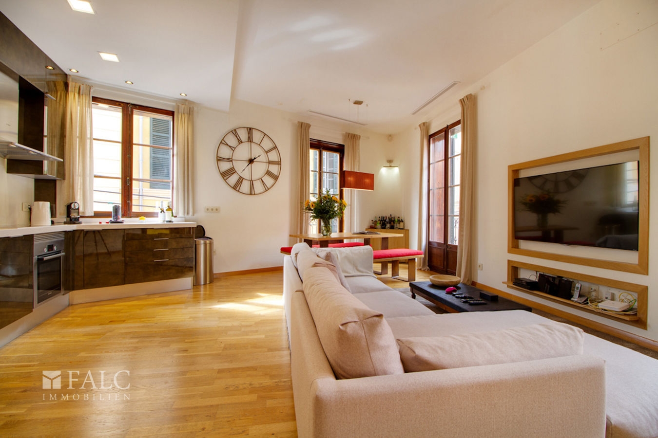 Dieses fantastische Apartment in der Altstadt Palmas befindet sich in der Nähe von der Plaza Mayor, im Herzen des historischen Zentrums. Das Gebäude stammt aus dem Jahr 1930. Die Wohnung wurde 2016 vollständig und hochwertig renoviert. Die attraktive Immobilie hat 196 m2, die sich in einen separaten Eingangsbereich, eine offene Küche, ein elegantes Wohnzimmer mit Esszimmer, 3 geräumige Schlafzimmer, 3 Badezimmer (alle en-suite) und einen Abstellraum unterteilen. Zu den Ausstattungsmerkmalen gehören: grosse authentische doppeltverglaste Holzfenster, Klimaanlage sowie Holzboden. Ein Parkplatz in der Tiefgarage der Plaza Major ist im Preis inbegriffen. Die helle Wohnung in der Altstadt Palmas ist luxuriös, praktisch und mit Liebe zum Detail eingerichtet. Die zahlreichen Sehenswürdigkeiten, tolle Einkaufsstrassen und gastronomische Erlebnisse in Form von namhaften Restaurants & Bars sind nur wenige Gehminuten entfernt. Den Flughafen von Palma erreichen Sie in 15 Fahrminuten sowie auch die beliebten Golfplätze wie Son Quint, Son Muntaner und Son Vida. Der nächste Strand ist nur 15 Laufminuten entfernt.
