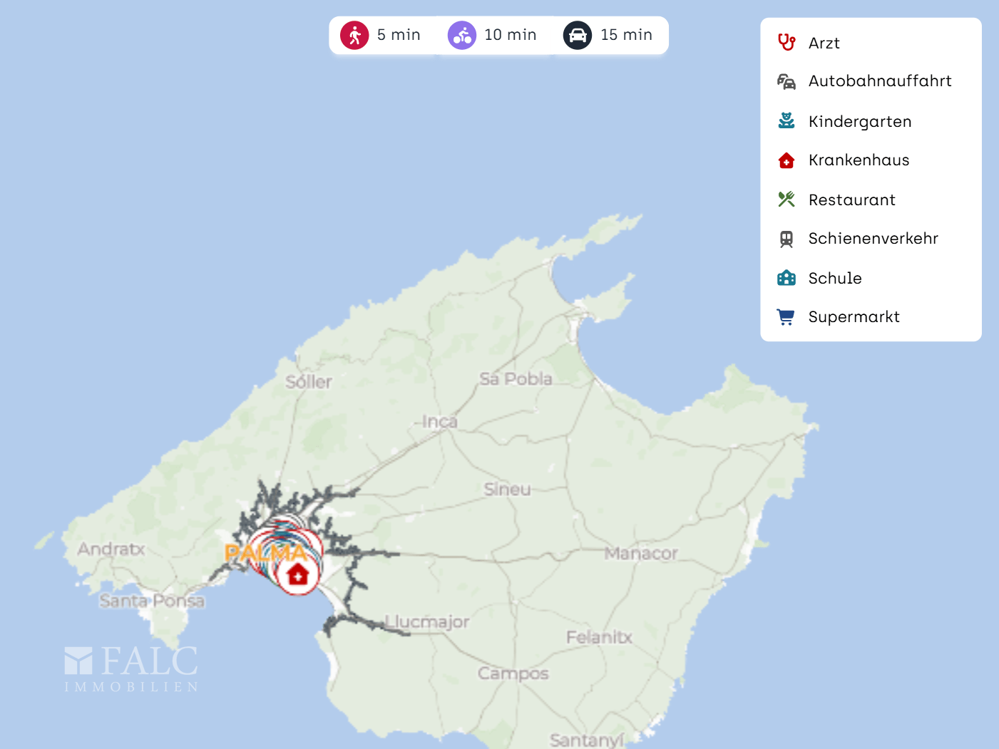 Die Immobilie liegt in einem gewachsenen Wohnumfeld im Osten von Palma und verbindet Alltagstauglichkeit mit dem typischen Mallorca Lebensgefühl. In der direkten Umgebung finden Sie kurze Wege für Besorgungen, Freizeit und Mobilität, ideal für alle, die eine gut angebundene Lage mit Nähe zur Küste schätzen.