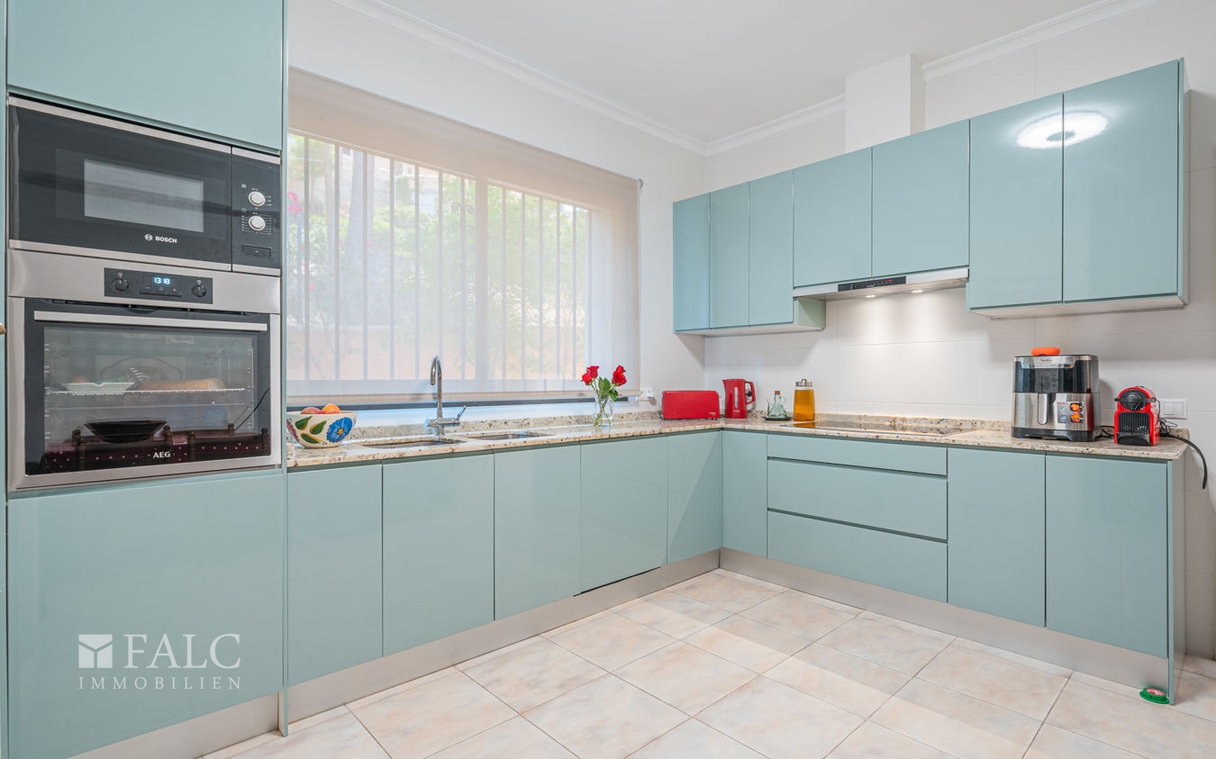 5 Schlafzimmern, 3 Bädern en suite, ein separates Bad, eine moderne und voll ausgestattete Küche, ein Abstellraum und ein Wohn/Esszimmer bieten viel Platz. Der wunderschöne und grosszügige Aussenbereich lockt mit einem Pool, Garten, BBQ Bereich und mehrere Terrassen. Hier kann man in mediterraner Atmosphäre entspannte Sommertage und lauschige Nächte mit der Familie und Freunden verbringen.