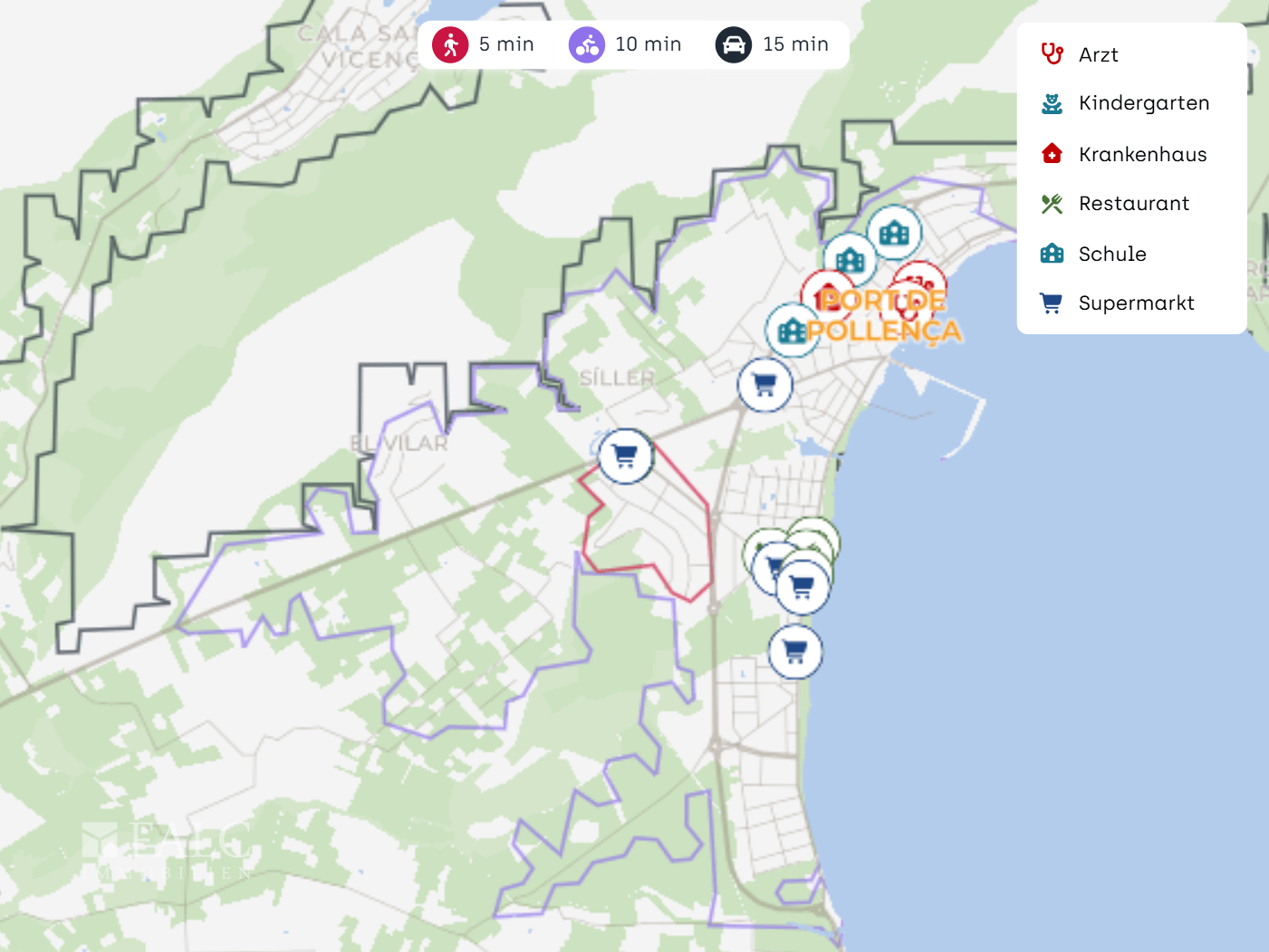 Die Immobilie liegt in einem ruhigen, gewachsenen Wohnbereich von Puerto Pollensa, nur wenige Schritte vom Alltag entfernt und gleichzeitig nah an Strand und Promenade. Hier verbindet sich entspanntes Inselleben mit einer Infrastruktur, die vieles unkompliziert macht.