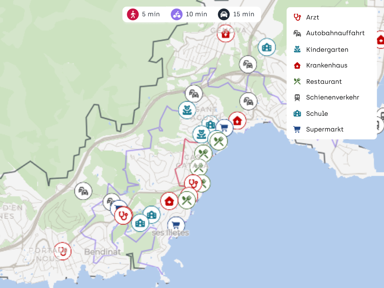 Die Anbindung ist ein klarer Pluspunkt: Mehrere Autobahnauffahrten liegen in ca. 1 bis 1,5 km Entfernung und verbinden Sie zügig mit Palma sowie weiteren Zielen auf der Insel. Der nächste ÖPNV Anschluss ist in der Regel entlang der Hauptachsen von Illetes gut erreichbar. Der Flughafen Palma de Mallorca ist je nach Verkehr in ca. 20 bis 30 Minuten mit dem Auto erreichbar.