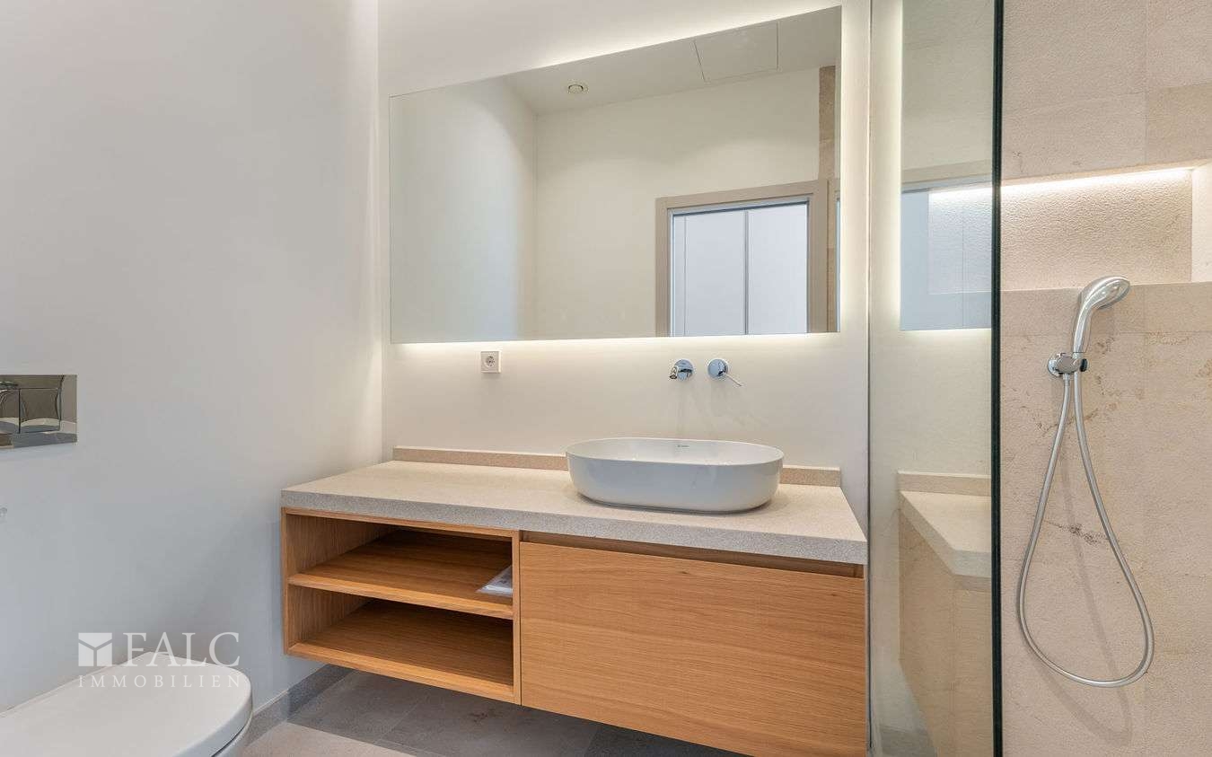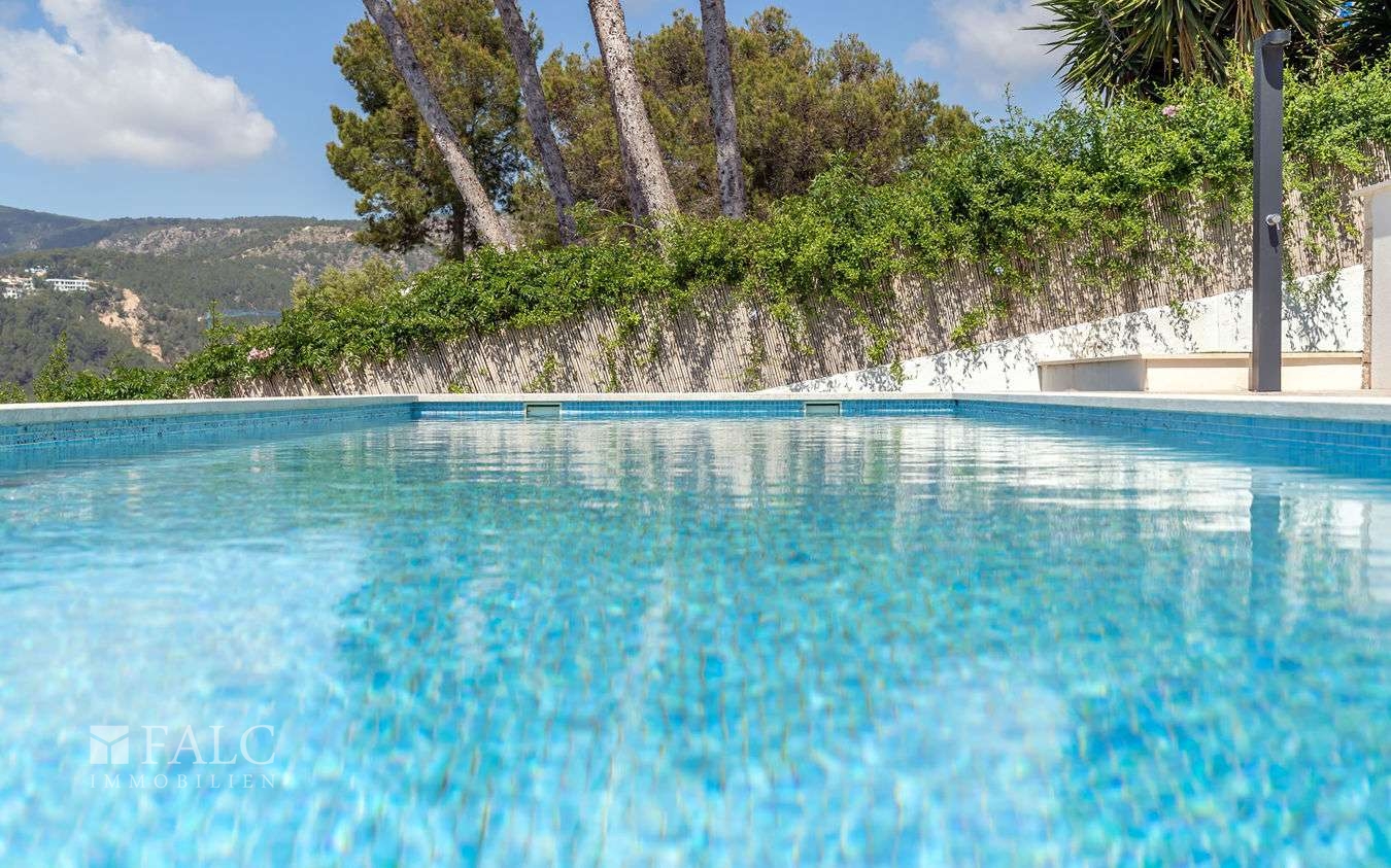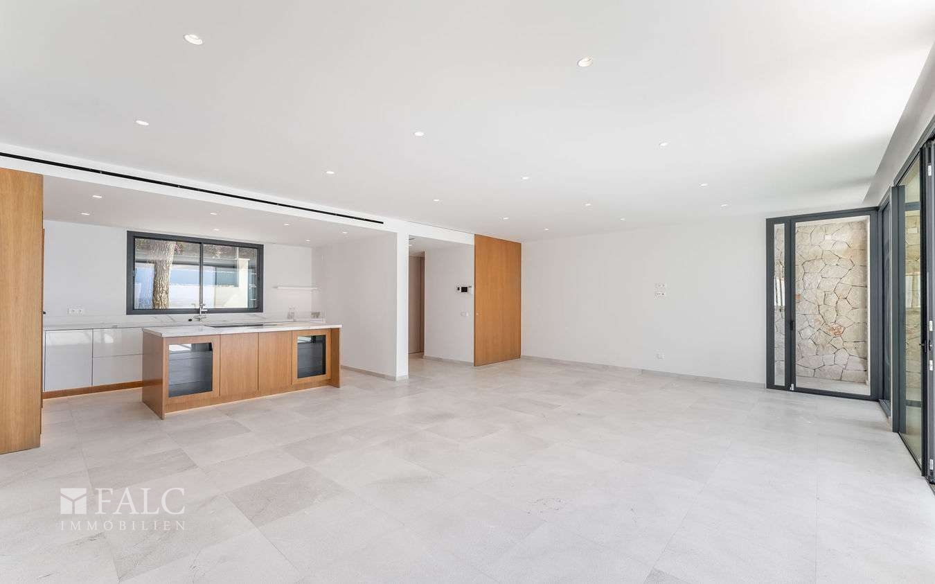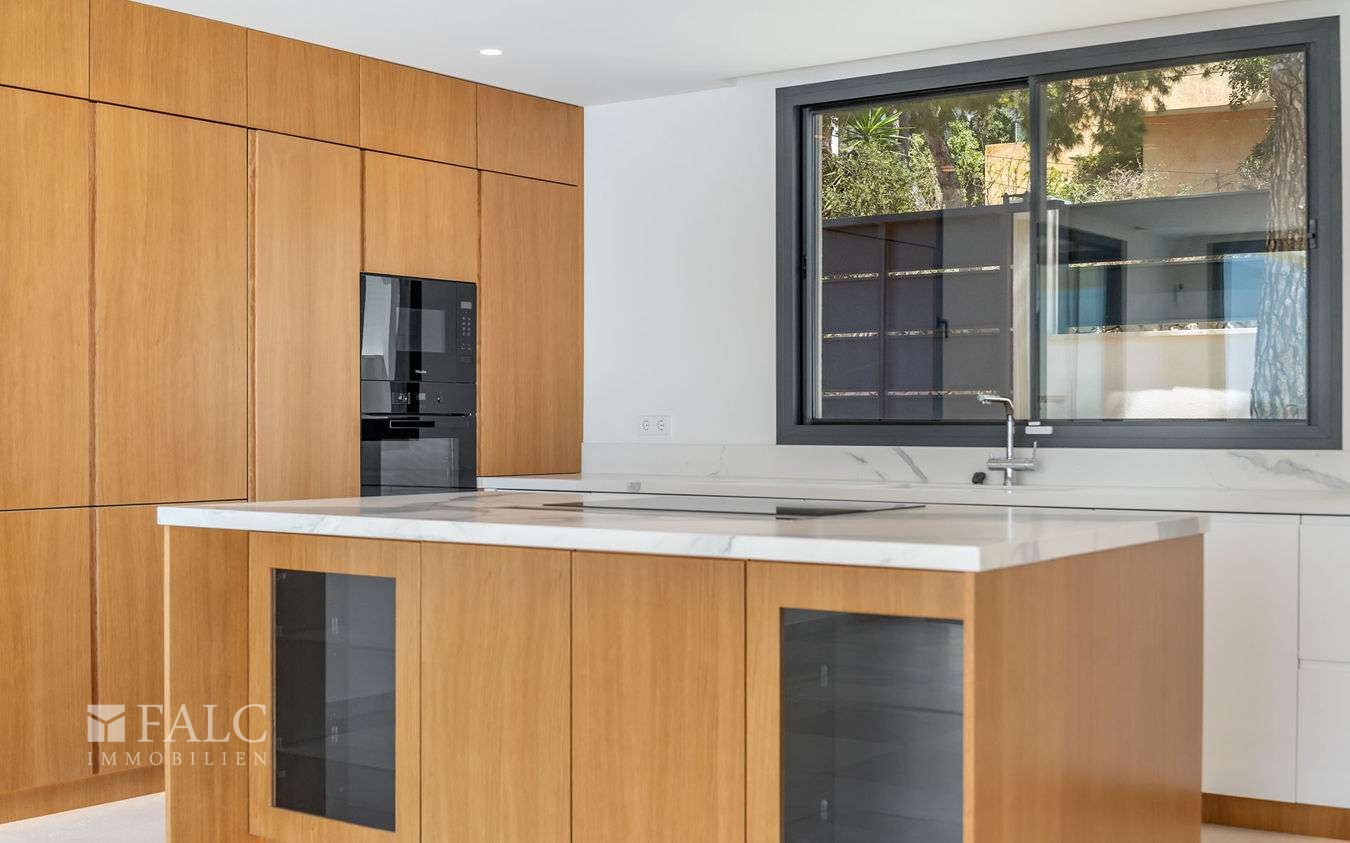Im gefragten Südwesten Mallorcas gelegen, präsentieren wir Ihnen diese traumhafte Neubauvilla in Portals Nous mit herrlichem Blick über die Küste und das funkelnde Mittelmeer. Diese nach Süden ausgerichtete Luxus-Immobilie liegt auf einem ca. 679 m2 grossen Grundstück und bietet eine geräumige bebaute Fläche von ca. 351 m2 die sich folgendermassen verteilt: Einen lichtdurchfluteten, offenen Wohn-/ Essbereich mit Zugang zur einzigartigen Meerblickterrasse und dem erfrischenden Pool, eine moderne und vollausgestattete Küche, 4 Schlafzimmer mit Einbauschränken und 4 Bäder en suite. Die Villa ist mit mediterranen Bauelementen auf moderne Art und Weise ausgestattet, was sie sehr stilvoll macht, aber auch ein heimeliges Gefühl vermittelt und in Kombination mit der neuesten Technologie maximalen Wohnkomfort bietet. Das Haus ist so konzipiert, dass es möglichst viel natürliches Licht erhält und bietet einen atemberaubenden Meerblick, der eine ruhige und gelassene Atmosphäre schafft. Zusätzlich gibt es ein Untergeschoss mit genügend Platz für ein weiteres Schlafzimmer, einen Fitnessraum, ein Büro oder ein Spielzimmer. Extras: Klimaanlage, Fussboden- und Zentralheizung, doppelt verglaste Aluminiumfenster, Carport für 2 Fahrzeuge und vieles mehr.