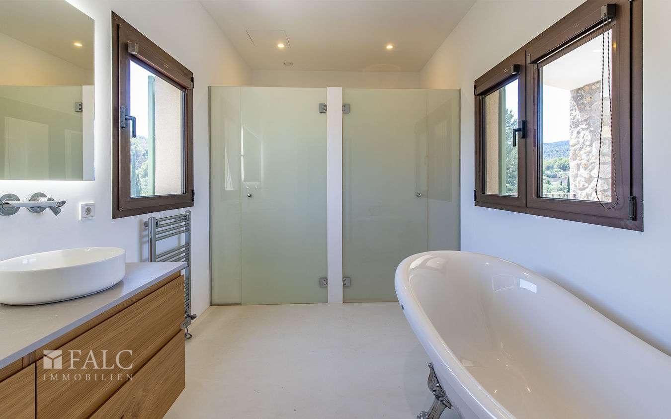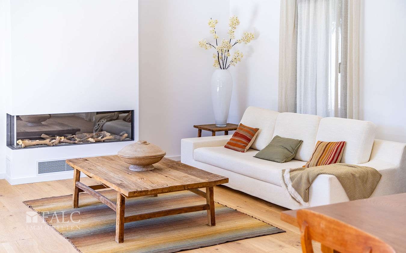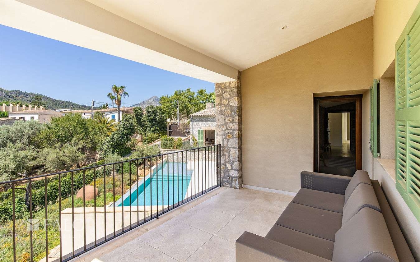 Diese traumhafte Neubau-Villa im mallorquinischen Stil in Es Capdella, einem authentischen Dorf am Fusse des Tramuntana-Gebirges, verbindet mühelos die Antike mit zeitgenössischem Design, indem sie restaurierte und historische Elemente nahtlos mit modernen architektonischen Elementen kombiniert. Die Verschmelzung von mediterraner Ästhetik und modernsten Materialien schafft ein unverwechselbares Ambiente. Die einzigartige Immobilie, mit südwestlicher Ausrichtung, liegt auf einem ca. 1.910 m2 grossen GrUndstück und verfügt über eine bebaute Fläche von ca. 437 m2, die sich auf 2 geräumige Etagen und einen wunderschönen Aussenbereich mit grosszügigen Terrassenbereichen und einen erfrischenden, in die Natur eingebetteten Salzwasserpool verteilt. Der Innenbereich ist hell und offen gestaltet und bietet neben einem einzigartigen Eingangsbereich mit Natursteinwänden, einen eleganten Wohn-/ Essbereich mit Kamin, eine hochwertige Küche, 5 traumhafte Schlafzimmer mit Einbauschränken und Badezimmern en suite, ein Gäste-WC, Abstellraum, herrliche Terrassen und Stellplätze für 4 Fahrzeuge. Weitere Ausstattungsmerkmale: doppelt verglaste Aluminium- und Holzfenster, mallorquinische Blendläden, Stein- und Holzböden, Zentralheizung, Klimaanlage, automatische Bewässerung und vieles mehr. Geniessen Sie bei einem angenehmen kühlen Bad absolute Ruhe und einen einzigartigen Blick in die Natur.