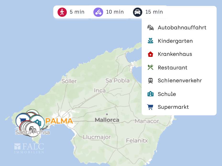 In Summe verbindet diese Lage die Ruhe eines gewachsenen Dorfumfelds mit kurzen Wegen zu Versorgung, Gastronomie und einer sehr guten Erreichbarkeit der wichtigsten Ziele auf Mallorca.