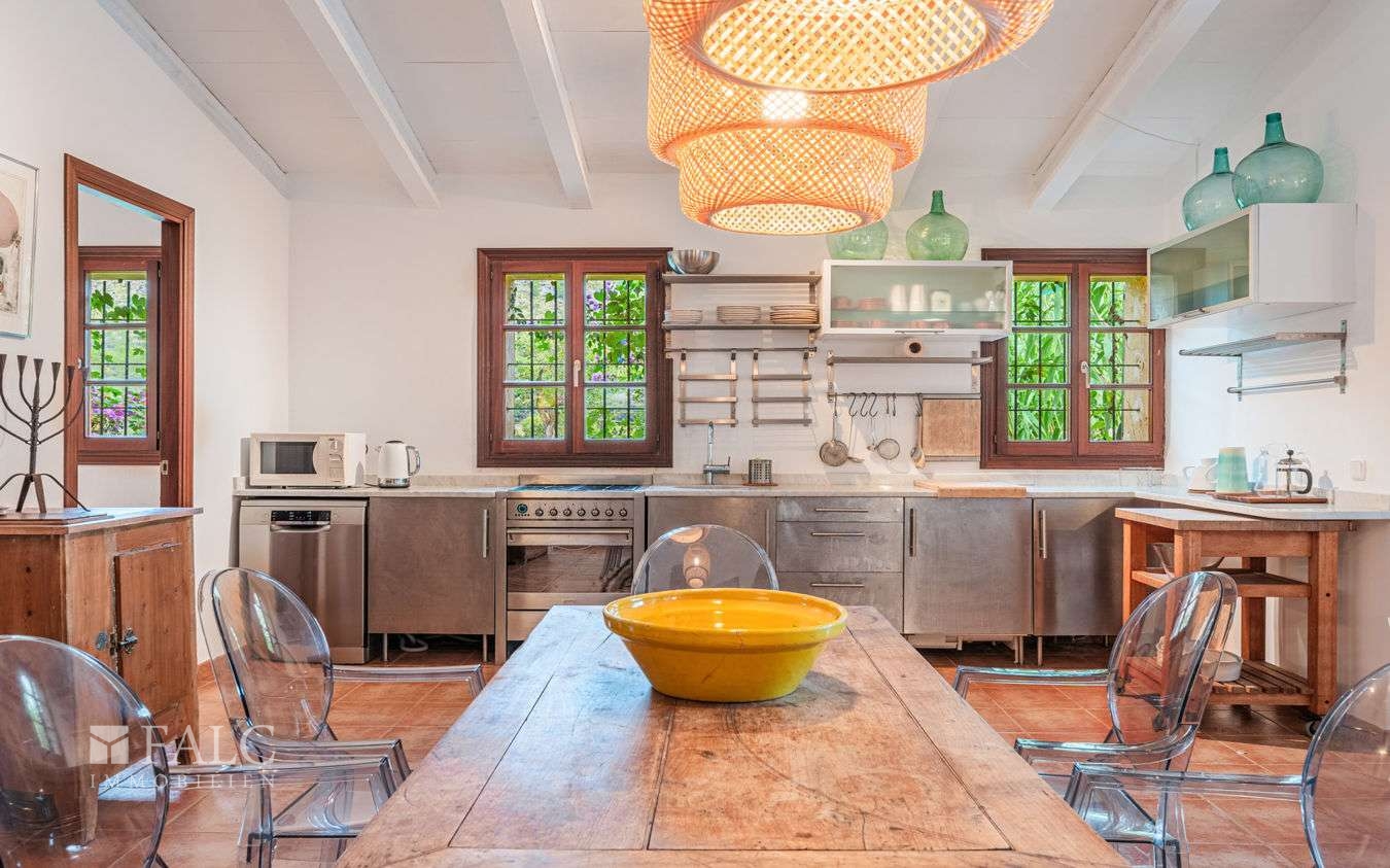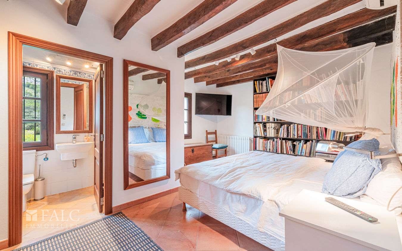 Diese Finca ist ein spektakuläres, einzigartiges Anwesen in Cala San Vicente bei Pollensa. Die Finca, mit Sicht auf das Tramuntana Gebirge und umgeben von herrlicher mediterraner Naturlandschaft, ist ca. 40.000 m2 groß und besteht aus zwei Parzellen (eine davon mit 21.000 m2 ist bebaut) und das Nachbargrundstück mit 18.000 m2 bietet die Möglichkeit zusätzlich bebaut zu werden. Das Haupthaus ist geschmackvoll und funktionell eingerichtet. Es hat einen großen Wohnbereich mit Kamin, eine komplett ausgestattete Küche, 6 gemütliche Schlafzimmmer mit 6 Bädern en suite, viele Terrassen und einen Atelier- und Bürobereich. Der Außenbereich hat einen grossen Poolbereich mit Sonnenliegen, viele Terrassen auf denen man im Freien seine Mahlzeiten genießen und Feste feieren kann und den herrlichen Sonnenuntergang erlebt. Ein Vorteil dieses Anwesens ist, dass es über drei bezaubernde Gästehäuser verfügt, die alle Annehmlickeiten bieten und für 24 Personen Platz haben. Die wunderbare überdachte Terrasse mit Grillplatz bietet für 30 Personen Platz. Außerdem hat das Anwesen einen eigenen Tennisplatz und viele grüne Bereiche. Nur wenige Kilometer entfernt ist das bezaubernde Städtchen Pollensa mit seinem großen kulturellem Angebot und nicht weit entfernt Puerto Pollensa mit seinen herrlichen Stränden.