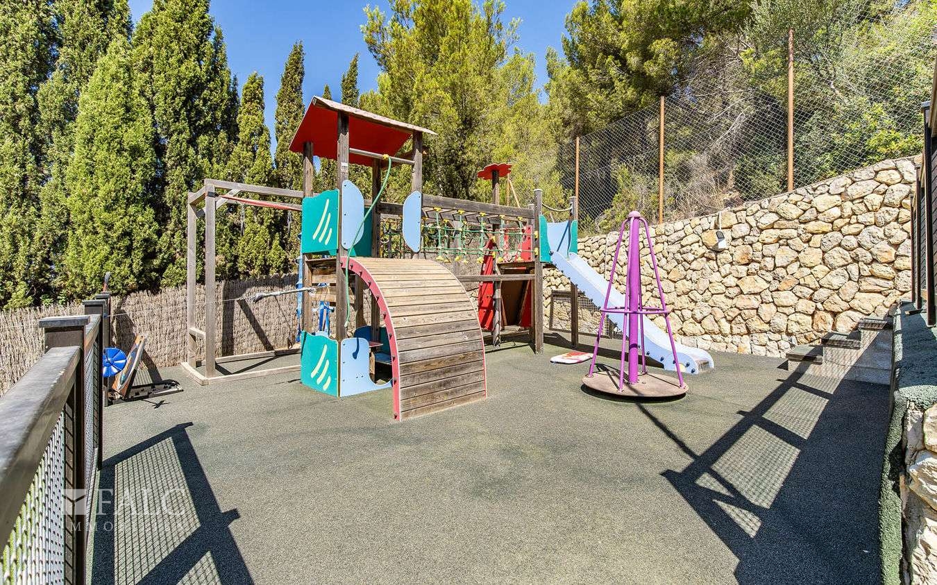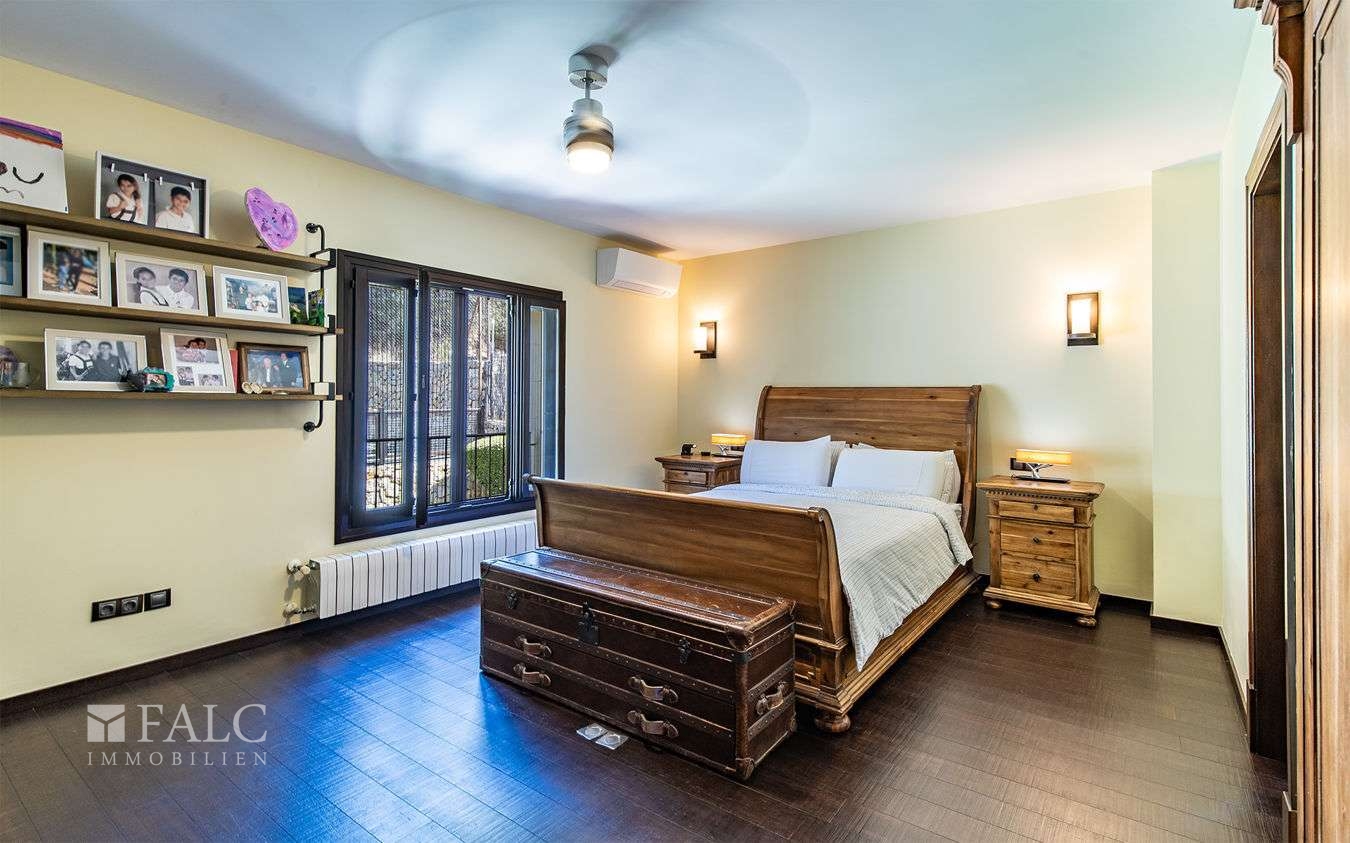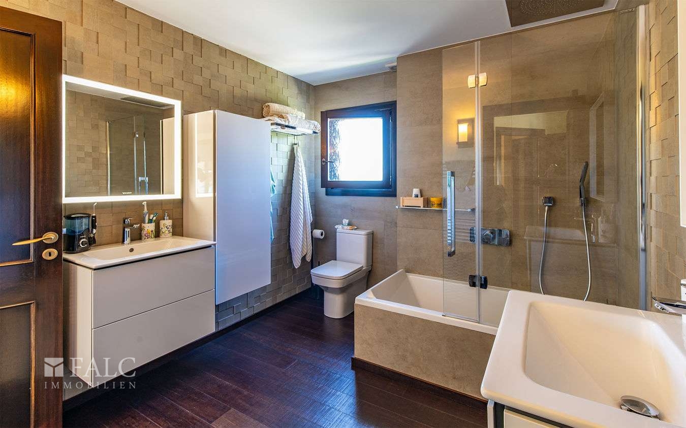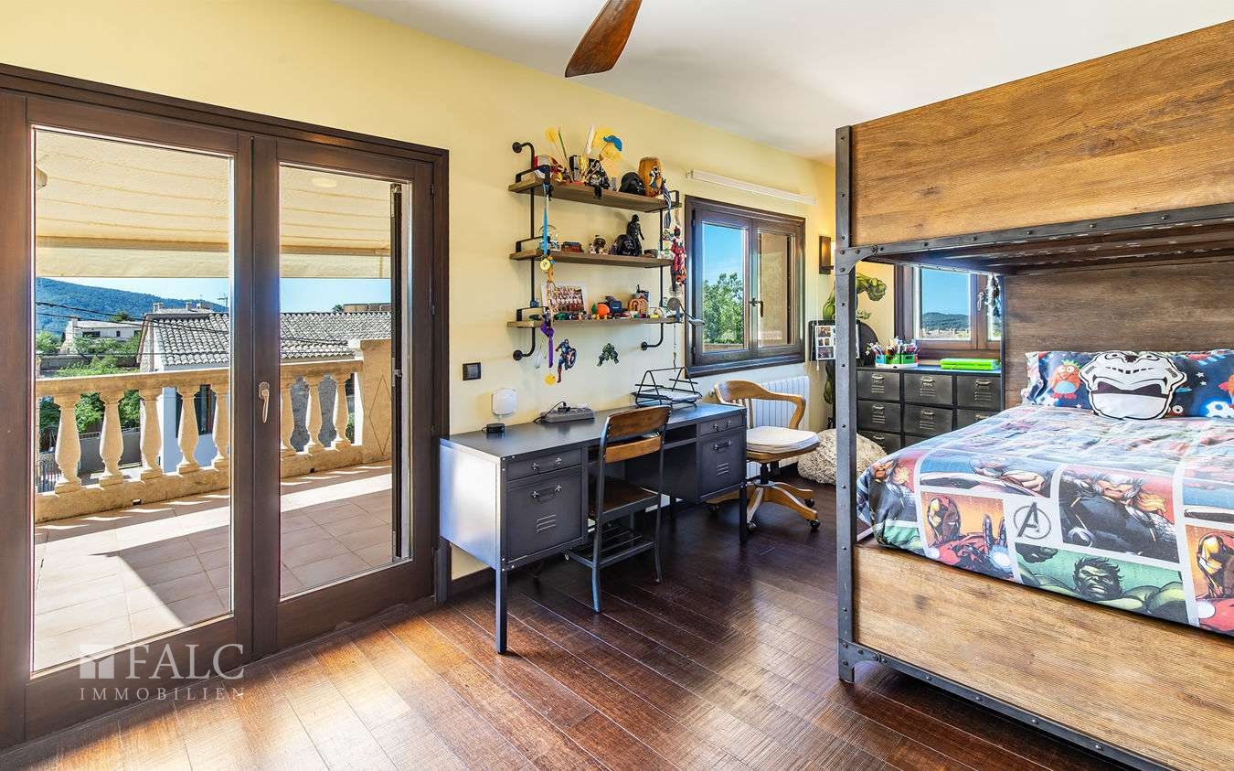 Diese beeindruckende Familienvilla in Calvia befindet sich in einem der schönsten und ältesten Dörfer an der Küste Mallorcas am Fusse des Tramuntanagebirges. Auf einem ca. 943 m2 grossen Grundstück mit Südausrichtung gelegen, verfügt dieses wunderbare, gepflegte Objekt über eine bebaute Fläche von ca. 289 m2, verteilt auf 3 gemütliche und funktionale Etagen, sowie mehrere herrliche Terrassen um die Ruhe und Natur zu geniessen, eine davon sogar mit Meerblick. Die charmante Immobilie ist in einem typisch mallorquinischen/mediterranen Stil gehalten und bietet die neuesten Trends in Sachen Design und modernen Komfort. Das geräumige Wohn-Esszimmer verfügt über einen einzigartigen hängenden Kamin, und die geräumige offene Küche ist komplett ausgestattet, darüber hinaus gibt es 4 grosse Doppelschlafzimmer, 3 moderne Badezimmer (eines en suite und eines wird von 2 Schlafzimmern geteilt), ein Büro, einen grossen voll ausgestatteten Fitnessbereich, eine Garage und Parkplätze. Der fabelhafte Aussenbereich mit einem gut gepflegten und pflegeleichten Garten ist ein wahres Paradies für Kinder und bietet einen Spielplatz, einen Basketballplatz, eine Kletterwand und eine Seilrutsche. Des Weiteren lädt ein schöner Süsswasserpool mit Ruhebereich und einem Whirlpool für 4 Personen zum Verweilen und Entspannen ein. Weitere Ausstattungsmerkmale: Sonnenkollektoren, Parkettboden, Klimaanlage warm/kalt, Elektroheizung, ein Garagenplatz, Stellplätze für mehrere Fahrzeuge und vieles mehr. Diese schöne Villa in ruhiger Umgebung und von Natur umgeben, wird komplett möbliert angeboten.