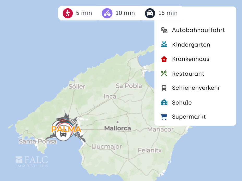 In Summe bietet diese Lage eine ausgewogene Mischung aus zentraler Stadtadresse, sehr guter Infrastruktur und kurzen Wegen zu den Highlights Palmas.