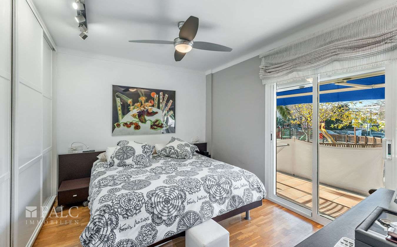 Nur wenige Schritte vom schönen Sandstrand entfernt, präsentieren wir dieses hübsche Apartment in Palmanova. Diese bezaubernde Gartenwohnung, eingebettet in die sonnenverwöhnte Küste Mallorcas, verfügt über eine bebaute Fläche von ca. 120 m2, die sich in ein geräumiges und sonniges Wohnzimmer mit Zugang zu einer wunderschönen Terrasse, eine herrliche, voll ausgestattete Küche mit Ausgang zur Hauptterrasse mit Meerblick, 3 Schlafzimmer und 2 Badezimmer aufteilt. Das Juwel dieser Immobilie liegt jedoch ausserhalb der Wohnung: eine atemberaubende 110 m2 grosse Terrasse, eine Oase der Ruhe und Schönheit, die vom Meer umspült wird. Stellen Sie sich vor, wie Sie hier von der blauen Weite des Mittelmeers umgeben sind, während die sanfte Brise des Meeres durch die Luft weht. Beginnen Sie den Tag mit einem gemütlichen Frühstück unter freiem Himmel und geniessen Sie die Sinfonie der Wellen und die Wärme der Morgensonne. Extras: Doppelt verglaste Fenster, elektrische Jalousien, Klimaanlage, Holzböden und Einbauschränke.