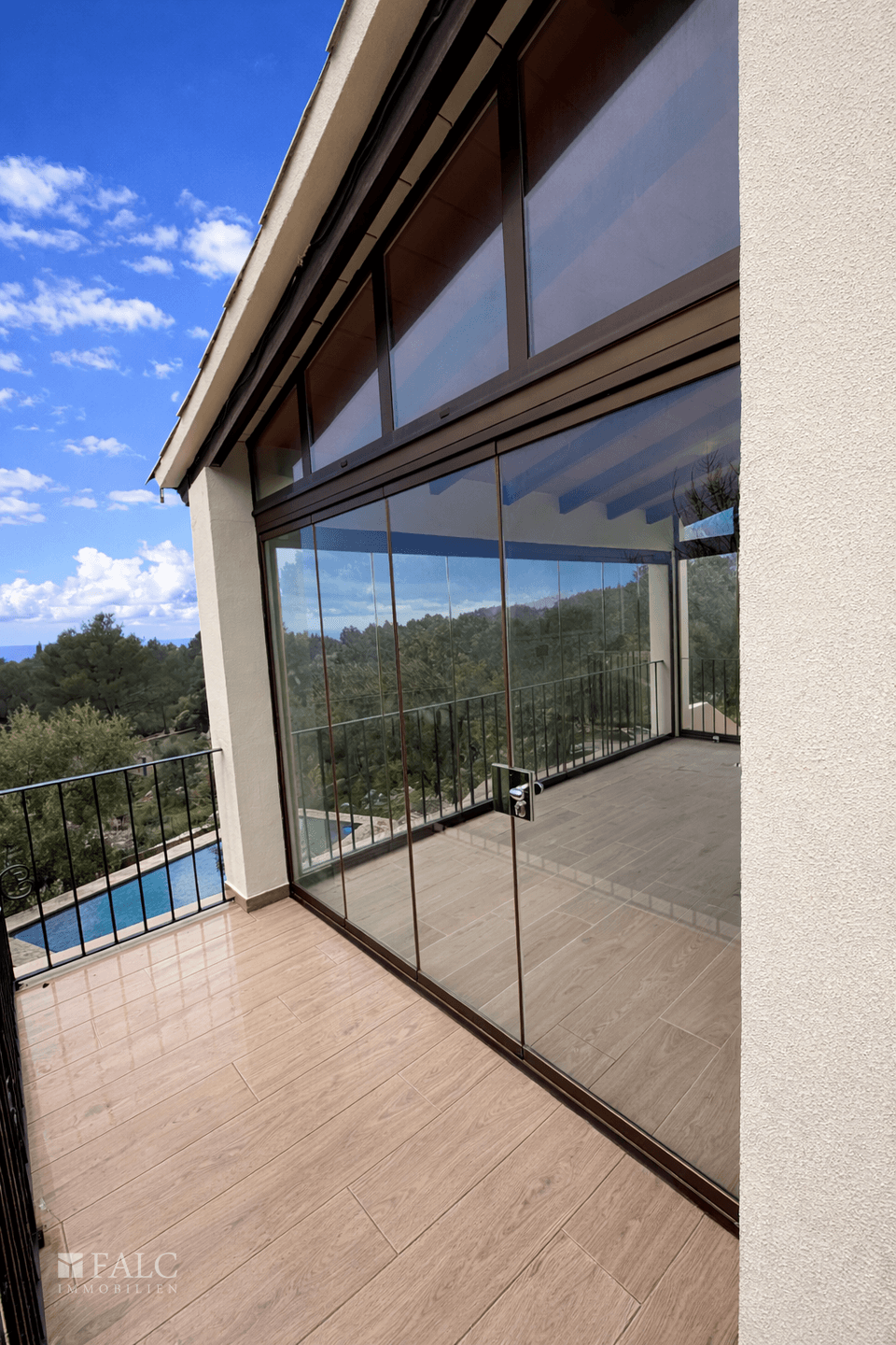Die erhöhte Position des Grundstücks bietet einen herrlichen Blick auf den Horizont und das Meer, sowie über das Tal und die beeindruckende Berglandschaft des Tramuntana-Gebirges. Das ca. 1.010 m² große Grundstück eröffnet zahlreiche Gestaltungsmöglichkeiten, um die traumhaften Sonnenuntergänge in vollen Zügen zu genießen.