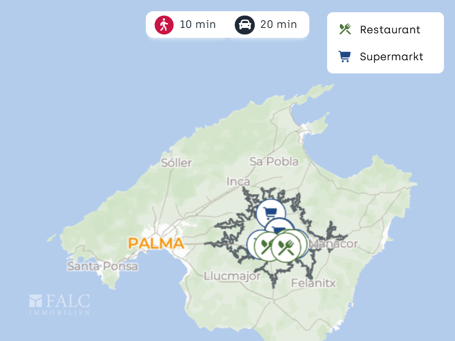 Eine Lage, die Ruhe und mallorquinisches Lebensgefühl bietet, ohne auf kurze Wege im Alltag zu verzichten, mit Nahversorgung, Gastronomie und Sportmöglichkeiten in der Nähe.