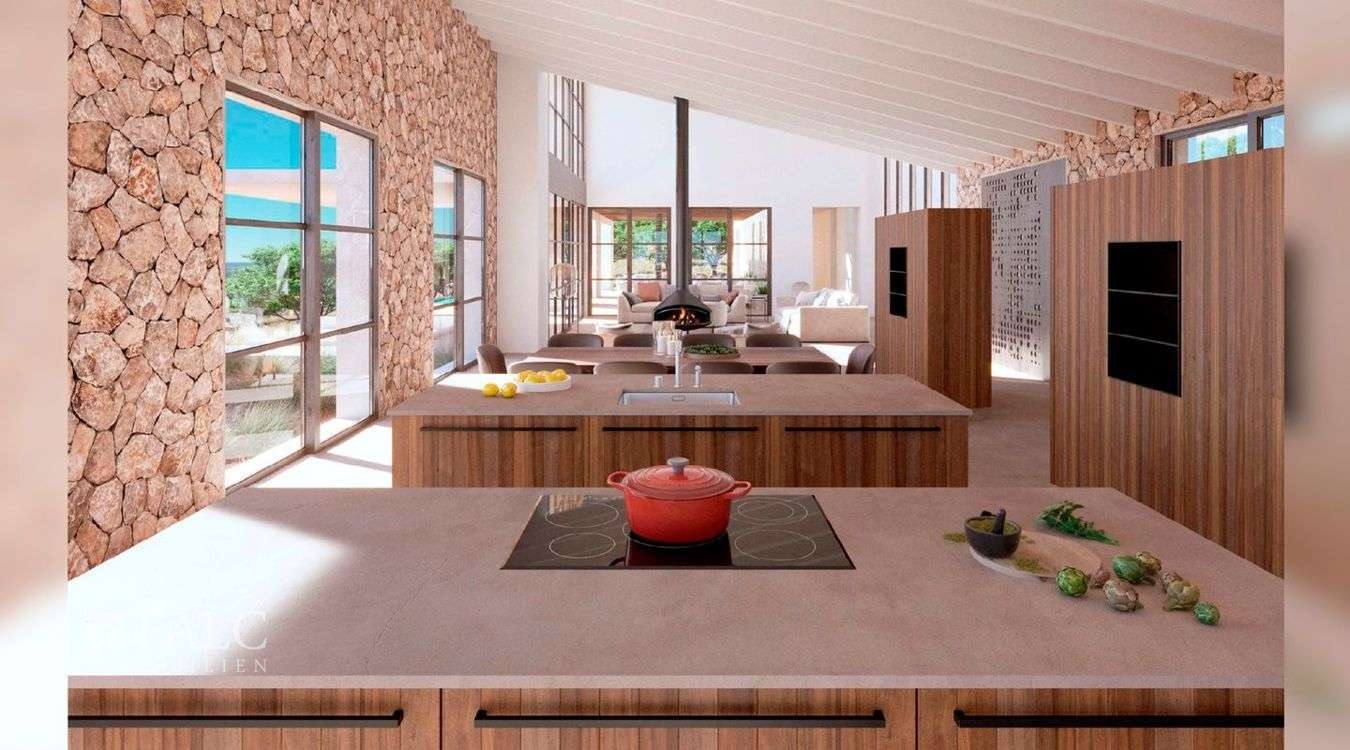 Idyllisch gelegen zwischen der Hauptstadt Palma de Mallorca und einer Vielzahl von unberührten Sandstränden, präsentieren wir Ihnen diese faszinierende Neubau-Finca in Sant Joan, einem kleinen Dorf im zentralen Teil Mallorcas. Dieses prächtige Landhaus, das von einem international preisgekrönten Architekten nach höchsten Qualitäts- und Handwerksstandards entworfen wurde, befindet sich auf einem ca. 19.742 m2 grossen Grundstück. Der geräumige Innenbereich dieser wunderschönen Immobilie mit einer Wohnfläche von ca. 265 m2 bietet ein herrliches Wohn-/Esszimmer mit einem gemütlichen Kamin, perfekt für kühlere Abende, während die Küche nahtlos an das Esszimmer anschliesst. Darüber hinaus gibt es 4 geräumige Doppelschlafzimmer mit Einbauschränken und 4 Bäder, davon 3 en-suite. Von der Natursteinfassade bis hin zu den sorgfältig ausgewählten Innenausstattungen wurde jeder Aspekt sorgfältig geplant, um ein Objekt zu schaffen, das absolute Harmonie ausstrahlt. Extras: Ankleidezimmer, Sonnenkollektoren für Warmwasser und Fussbodenheizung, doppelt verglaste Fenster, Klimaanlage und vieles mehr. Der 35 m2 grosse Swimmingpool mit beheiztem Wellnessbereich eignet sich hervorragend zum Sonnenbaden, während die Veranda und die Gartenbereiche einen atemberaubenden Blick auf die Serra de Tramontana bieten und somit das ganze Jahr über einen idealen Rückzugsort darstellen.