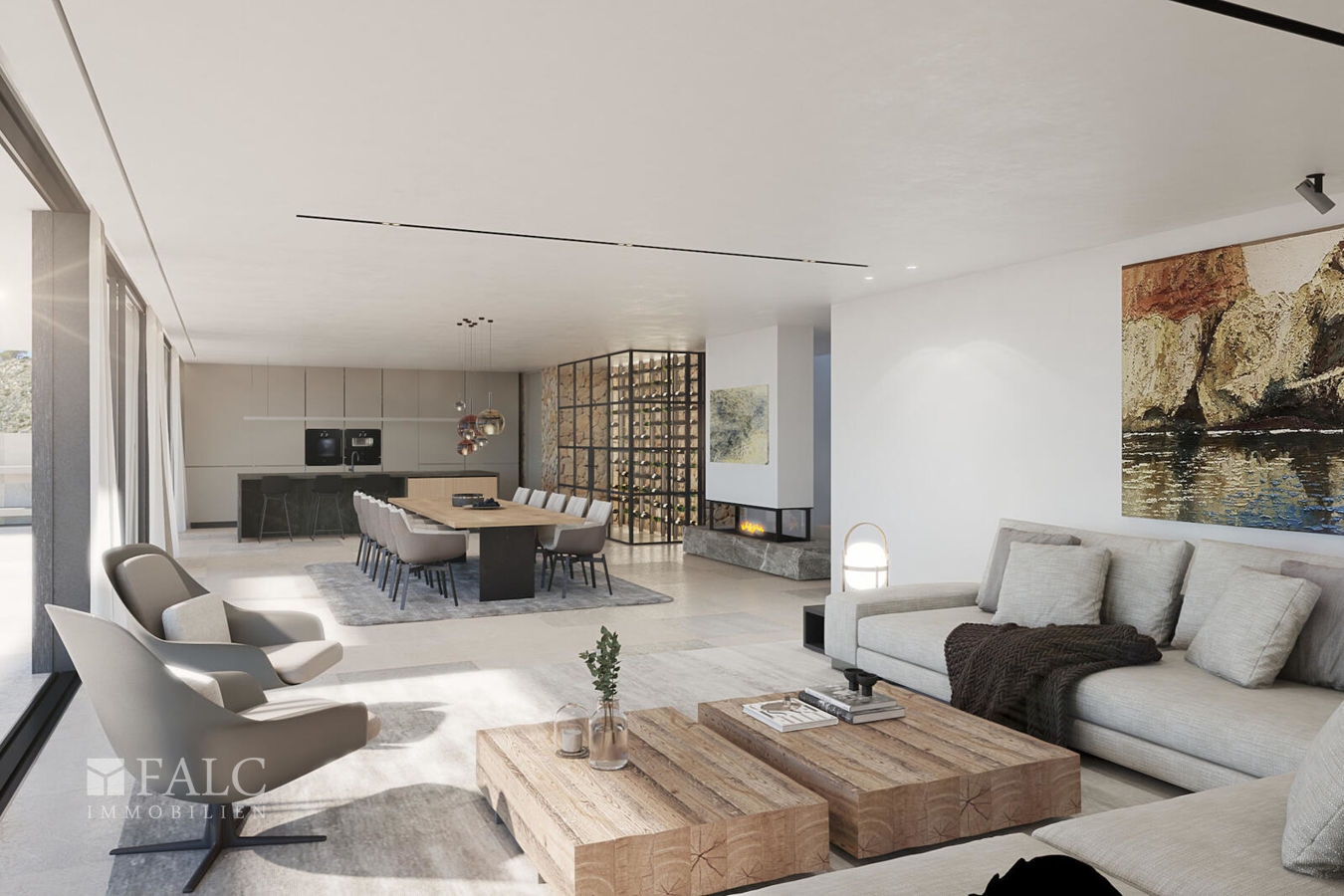 Diese exklusive Neubau-Villa in Paguera, ein familiärer Küstenort im Südwesten Mallorcas, besticht durch ihre zeitlose Eleganz, eine hervorragende deutsche Bauqualität und einen atemberaubenden Panoramablick auf das Mittelmeer, die Malgrats Inseln und die traumhafte Bucht von Camp de Mar. Die edle Designer-Villa liegt auf einem erhöhten, ca. 1.500 m2 grossen Grundstück mit südwestlicher Ausrichtung und bietet eine grosszügige bebaute Fläche von ca. 631 m2. Im Obergeschoss befinden sich der lichtdurchflutete Eingangsbereich, 4 wunderschöne Schlafzimmer mit eigenem Bad und ein Ankleidezimmer. In dem lichtdurchfluteten Erdgeschoss befindet sich der offene Wohn- und Essbereich mit Designerküche, Speisekammer und Weinkeller. Das fünfte Schlafzimmer mit Bad en suite und das Gäste-WC befinden sich ebenfalls auf dieser offen gestalteten Ebene. Das multifunktionale Untergeschoss des Hauses beherbergt die Waschküche, den Technikraum und weitere Räume zur freien Gestaltung, die sich ideal als Fitness- und Wellnessräume eignen. Der mediterran gestaltete Aussenbereich mit offenen und überdachten Terrassen, einem 18 Meter Pool, Gartenbereich und einladender Aussenküche bietet maximalen Komfort und lädt das ganze Jahr über zum Geniessen und Entspannen ein. Extras: Aufzug, Hausautomatisierung, LED-Beleuchtungskonzept, Naturstein- und Parkettboden, Fussbodenheizung, Klimaanalage und vieles mehr. Eine Garagenstellplatz und 3 PKW-Stellplätze vervollständigen dieses Angebot. Paguera bietet 3 Strände und eine ideale Lage zu den umliegenden Golfplätzen.