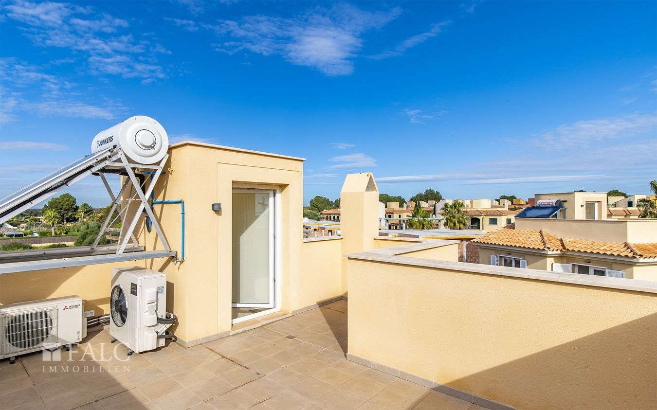 In der schönen Urbanisation "El Paraíso" im Süden der Insel Mallorca, ganz in der Nähe des fabelhaften Strandes von Es Trenc, einem Naturpark mit türkisfarbenem Wasser, präsentieren wir diese wunderschönen Neubauvillen in Sa Rápita. Die Villen mit Meerblick von der privaten Dachterrasse und einer bebauten Fläche von ca. 150 m2 (ungefähr 126 m2 Wohnfläche) bestehen aus einem herrlichen Wohn-/Esszimmer mit Zugang zum schönen Privatgarten, einer modernen und ausgestatteten Küche, 3 geräumigen Schlafzimmern mit Einbauschränken, 2 Bädern und einem separaten Gäste-WC. Die aussergewöhnlichen Gemeinschaftsbereiche lassen keine Wünsche offen und bieten ihren Besitzern einen grossartigen erfrischenden Swimmingpool, Tennisplätze, einen 18-Loch-Minigolfplatz, mehrere Grünflächen zum Entspannen und ein gemütliches Restaurant. Alle Villen sind mit Fussbodenheizung und Klimaanlage ausgestattet, um das ganze Jahr über eine angenehme Temperatur zu gewährleisten, ausserdem verfügen sie über Keramikfliesen, Solarwarmwasser, Abstellraum, weiss lackierte Innentüren und energieeffiziente Doppelglasfenster. Es handelt sich um eine fantastische Möglichkeit, eine dieser 16 beeindruckenden und gemütlichen Villen nur wenige Minuten vom Meer und dem berühmtesten Strand Mallorcas entfernt zu erwerben. Es Trenc ist ein sieben Kilometer langer Naturstrand an der Südküste Mallorcas mit wunderschönem weissen Sand, türkisfarbenem Meer und flachen Dünen.