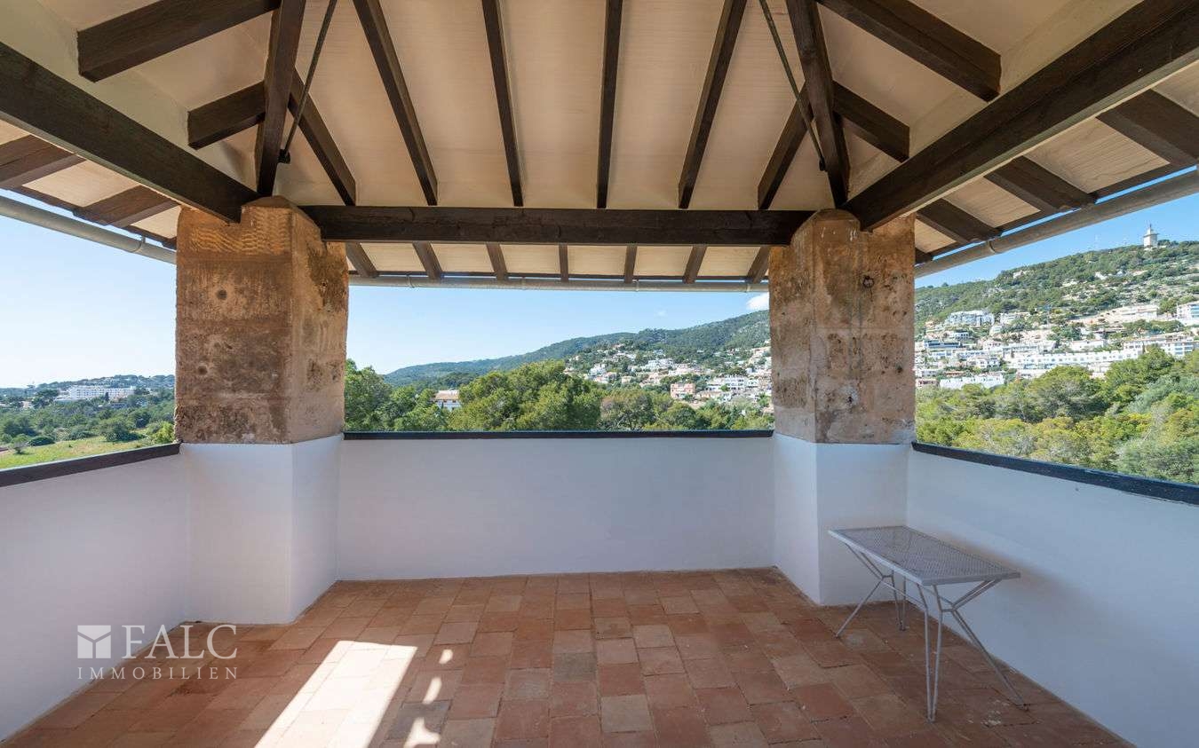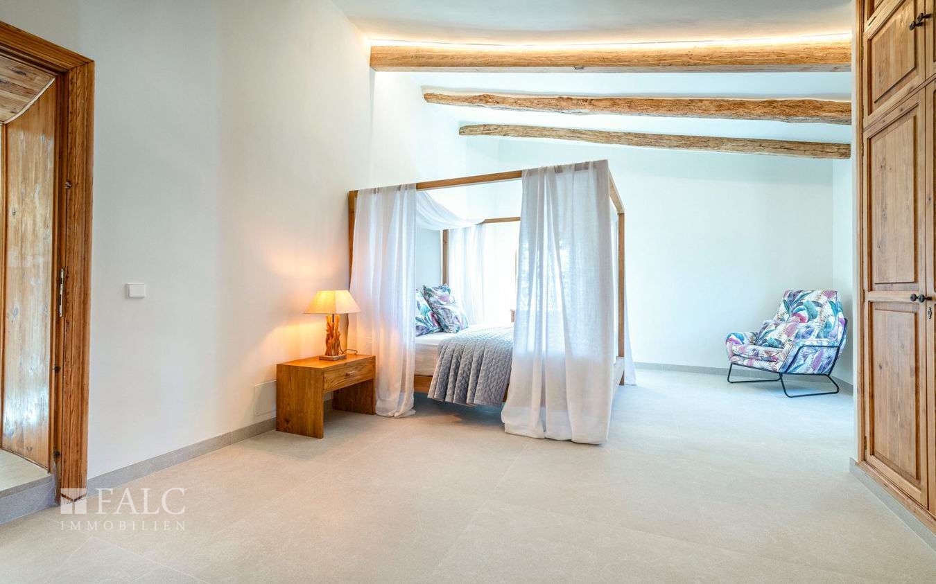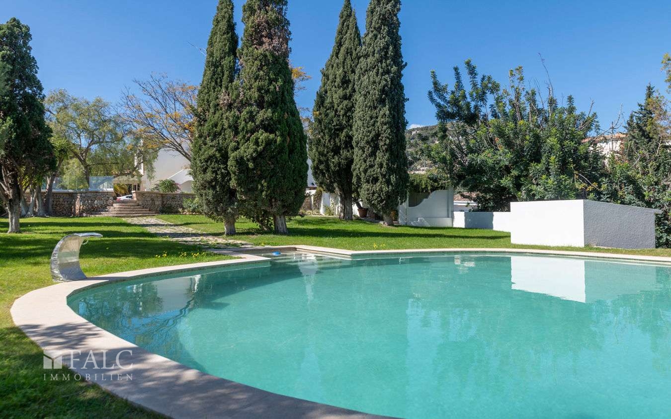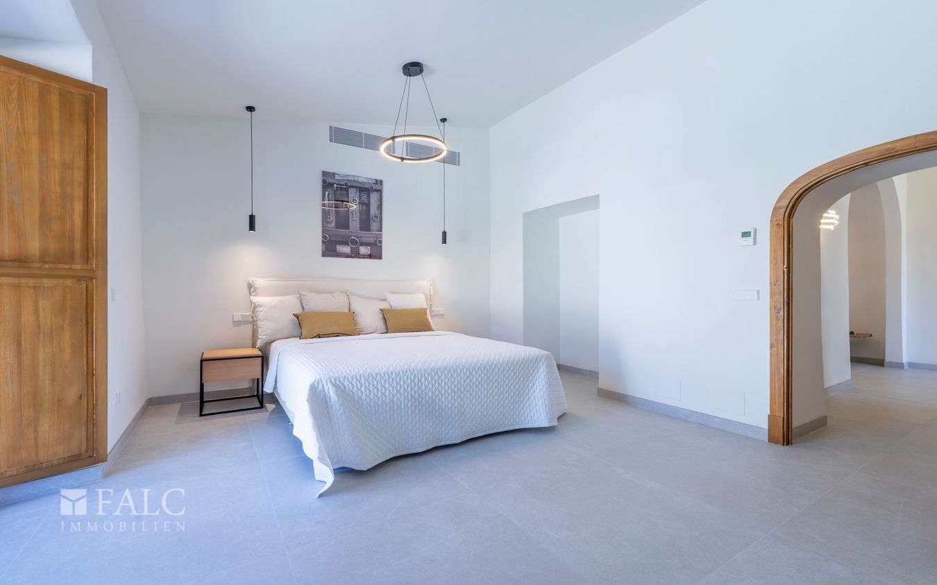 Dieses fantastische Herrenhaus in Genova wurde ursprünglich im Jahre 1900 für König Alonso XIII gebaut. Umgeben von ausgedehnten Grünflächen, Gärten und Terrassen bietet sich hier die exklusive Gelegenheit, ein aussergewöhnliches und vollständig renoviertes Anwesen in einer Wohngegend zu erwerben, von der aus man jeden Teil der Insel leicht erreichen kann. Die authentische Immobilie liegt auf einem ca. 10.000 m2 grossen Grundstück mit unendlichem Möglichkeiten und hoher Privatsphäre. Die ca. 629 m2 bebeaute Fläche verteilen sie ch auf 3 Etagen wie folgt: Das helle Erdgeschoss umfasst die Eingangshalle, mit Zugang zu den Wohnbereichen: das lichtdurchflutete Wohn-/Esszimmer, die Küche mit Frühstücksinsel, Weinkühlschrank und Leicht-Geräten, Gästetoiletten, Schlafzimmer mit eigenem Bad und Zugang zur gefliesten Terrasse, die auf den Garten mit Meerblick führt und sich hervorragend für gesellige Stunden im Freien eignet. Im Untergeschoss befindet sich der Keller mit Weinkeller, Speisekammer/Lagerraum, einem Gäste-/Personalzimmer mit eigenem Bad, dem Technikraum des Hauses und der Doppelgarage. Der 1. Stock besticht durch 3 weitere Schlafzimmer mit eigenem Bad und eine Master-Suite im 1. Hauptschlafzimmer mit schöner Holzbalkendecke und doppeltem Bad en-suite. Vom 1. Stock aus führt die Treppe zur fantastischen Turmterrasse mit einem 360-Grad-Blick auf das Anwesen und das Meer. Sie eignet sich perfekt für Nachmittagstee oder als Yoga-Plattform. Der Aussenbereich wird durch gepflegte Gartenbereiche, einen runden Swimmingpool, Garage und einen Steinofen ergänzt.
