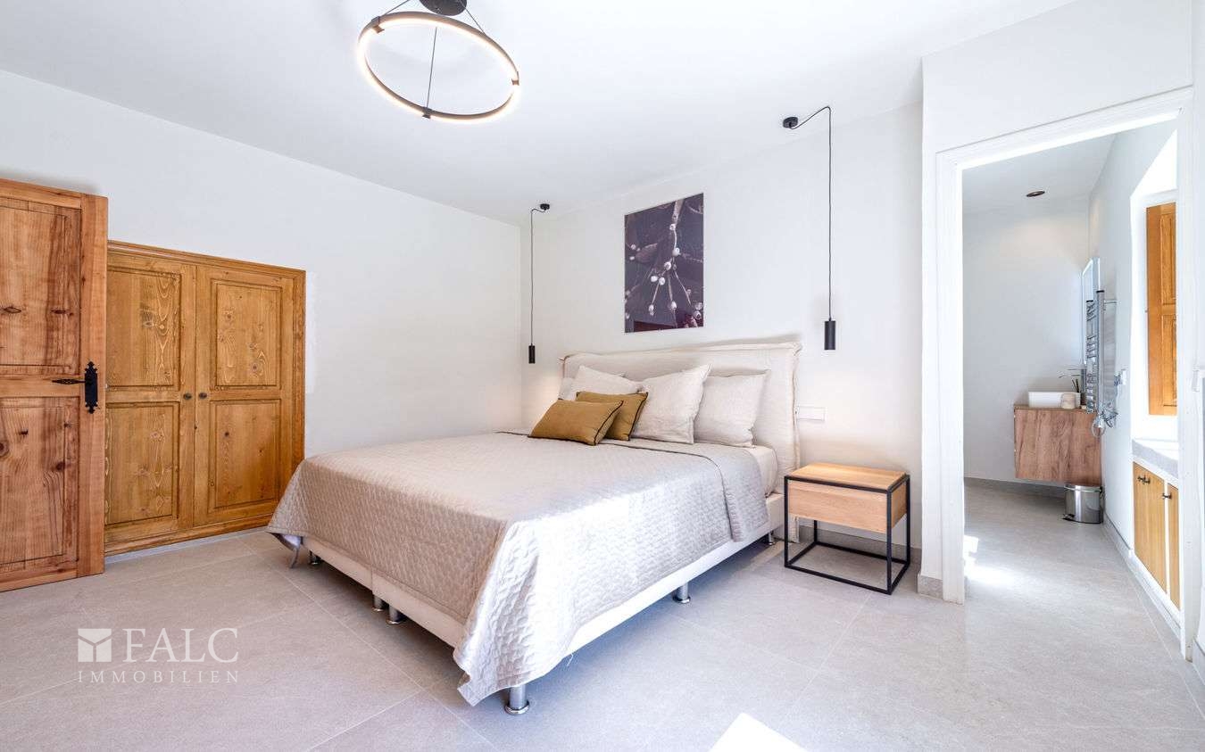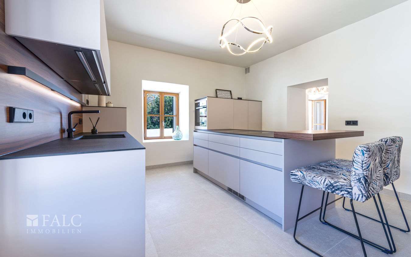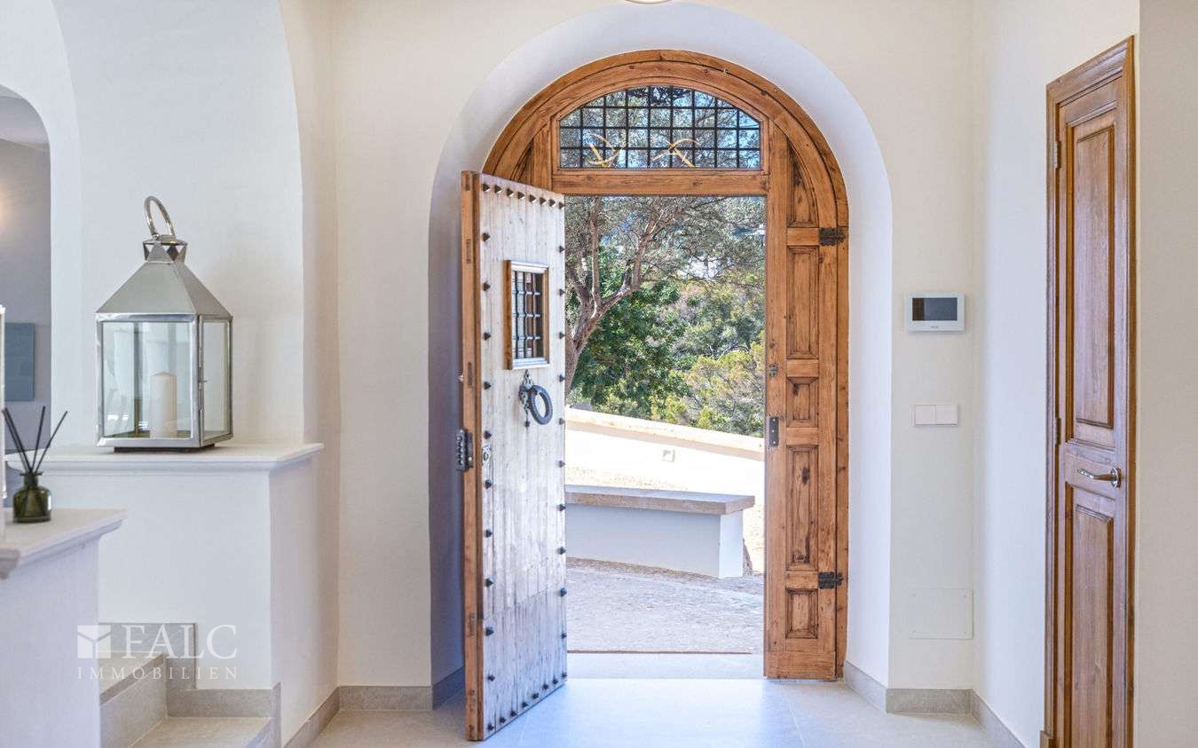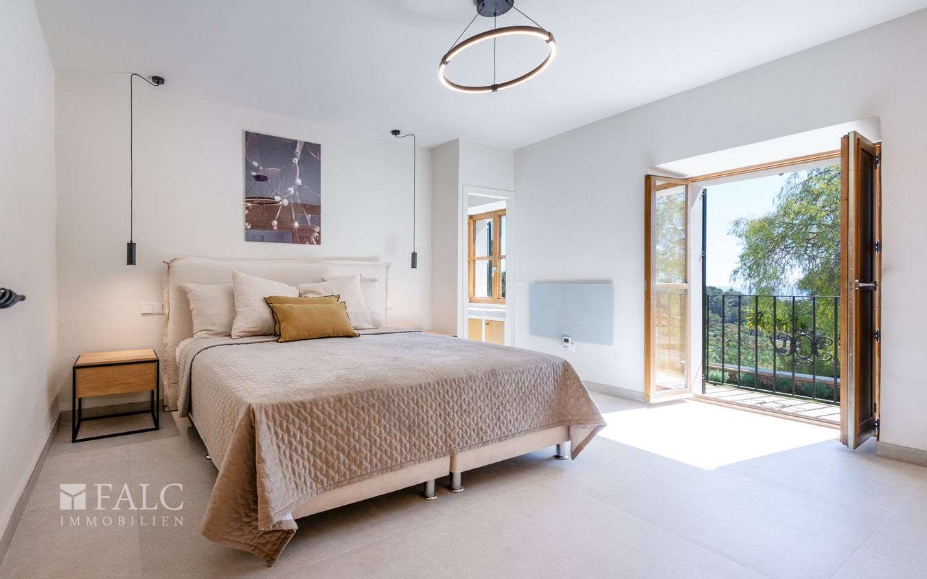 Dieses fantastische Herrenhaus in Genova wurde ursprünglich im Jahre 1900 für König Alonso XIII gebaut. Umgeben von ausgedehnten Grünflächen, Gärten und Terrassen bietet sich hier die exklusive Gelegenheit, ein aussergewöhnliches und vollständig renoviertes Anwesen in einer Wohngegend zu erwerben, von der aus man jeden Teil der Insel leicht erreichen kann. Die authentische Immobilie liegt auf einem ca. 10.000 m2 grossen Grundstück mit unendlichem Möglichkeiten und hoher Privatsphäre. Die ca. 629 m2 bebeaute Fläche verteilen sie ch auf 3 Etagen wie folgt: Das helle Erdgeschoss umfasst die Eingangshalle, mit Zugang zu den Wohnbereichen: das lichtdurchflutete Wohn-/Esszimmer, die Küche mit Frühstücksinsel, Weinkühlschrank und Leicht-Geräten, Gästetoiletten, Schlafzimmer mit eigenem Bad und Zugang zur gefliesten Terrasse, die auf den Garten mit Meerblick führt und sich hervorragend für gesellige Stunden im Freien eignet. Im Untergeschoss befindet sich der Keller mit Weinkeller, Speisekammer/Lagerraum, einem Gäste-/Personalzimmer mit eigenem Bad, dem Technikraum des Hauses und der Doppelgarage. Der 1. Stock besticht durch 3 weitere Schlafzimmer mit eigenem Bad und eine Master-Suite im 1. Hauptschlafzimmer mit schöner Holzbalkendecke und doppeltem Bad en-suite. Vom 1. Stock aus führt die Treppe zur fantastischen Turmterrasse mit einem 360-Grad-Blick auf das Anwesen und das Meer. Sie eignet sich perfekt für Nachmittagstee oder als Yoga-Plattform. Der Aussenbereich wird durch gepflegte Gartenbereiche, einen runden Swimmingpool, Garage und einen Steinofen ergänzt.