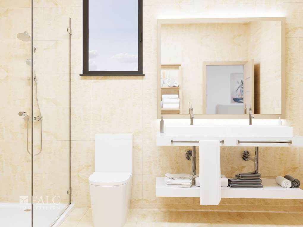 Willkommen in Ihrem Traumhaus in Las Palmeras, Llucmayor - einer exklusiven, Neubau-Doppelhaushälfte für Liebhaber moderner Architektur und funktionalen Designs, nur 15 Minuten von Palma entfernt und in der Nähe von Restaurants, Golfplätzen, Einkaufszentren sowie dem Krankenhaus und Schulen. Auf einem malerischen Grundstück von ca. 316 m2 mit Südausrichtung und atemberaubendem Panoramablick über die Bucht von Palma, ist diese wunderbare Immobilie in Erdgeschoss, erste und zweite Etage unterteilt und bietet einen großzügigen offenen Wohnbereich von ca. 40 m2 mit Einbauküche. Es verfügt über 4 Schlafzimmer und 3 Bäder, darunter ein Hauptschlafzimmer mit eigenem Bad und Ankleideraum. Im 2. Stock gibt es ein weiteres grosses Wohnzimmer mit herrlichem Blick auf die Bucht. Der Garten hat eine Fläche von mehr als 200 m2 und umfasst einen Salzwasser-Swimmingpool und einen Parkplatz mit Pergola. Die Zimmer sind geräumig und komfortabel dank der exklusiven Auswahl von hochwertigen Materialien. Das Haus verfügt über energieeffiziente Systeme, die den Verbrauch reduzieren, was zu höheren Einsparungen, mehr Komfort und einer besseren Schall- und Wärmedämmung führt. Es verfügt über eine Klimaanlage und eine mit aerothermischer Energie betriebene Fussbodenheizung, ein Entkalkungssystem, die Vorinstallation einer Solaranlage und Climalit-Fenster. Dank der grossen Fenster und Terrassen wird viel Licht einfallen. Diese Immobilie ist so konzipiert, dass sie einen luxuriösen und komfortablen Lebensstil bietet, der Eleganz und Funktionalität in sich vereint.