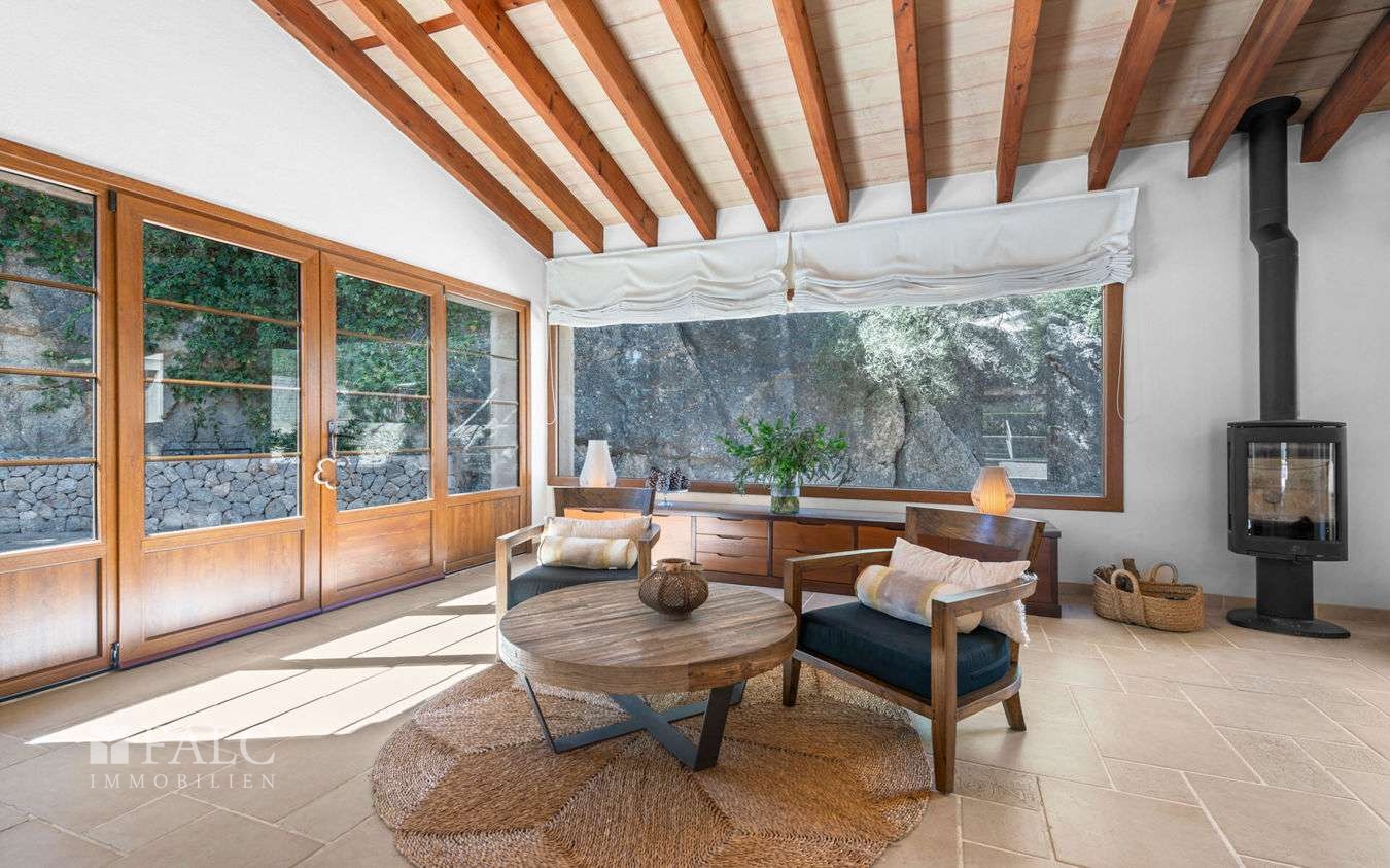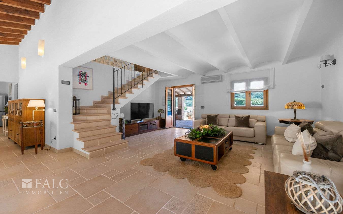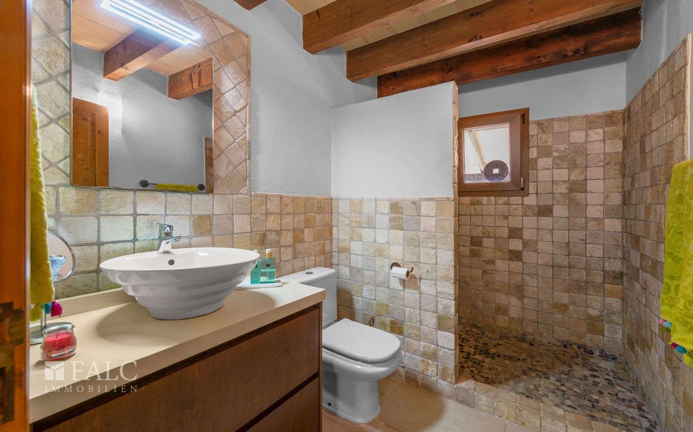 Diese beeindruckende rustikale Finca in Calvia, einem der schönsten und ältesten Dörfer an der Küste Mallorcas am Fusse des Tramuntanagebirges, bietet einen herrlichen Panoramablick und absolute Privatsphäre. Das wunderbar sonnige Objekt befindet sich auf einem ca. 2.941 m2 grossen Grundstück mit Südwest-Ausrichtung und hat eine grosszügige bebaute Fläche von ca. 312 m2, die sich wie folgt aufteilt: Das Haupthaus besteht aus 2 geräumigen Etagen mit 3 Schlafzimmern, 2 Bädern und einer Küche, die in das Wohnzimmer integriert ist, da das Erdgeschoss offen gestaltet ist, im Wohnzimmer können Sie im Winter den Kamin geniessen, der das ganze Haus wärmt. Im Obergeschoss befindet sich ein Dachgeschoss mit eigenem Bad und unabhängigem Zugang. Hier befindet sich auch eine kleine Gästewohnung mit Bad und Dreibettzimmer. Die angenehme Terrasse von ca. 50 m2 ist der ideale Ort, um ein schönes Essen mit Freunden und Familie zu geniessen. Der fabelhafte Aussenbereich dieser traumhaften Finca lässt keine Wünsche offen und wird durch einen grossartigen und erfrischenden Swimmingpool, gepflegte Gärten, einen Pinienwald und Parkmöglichkeiten hervorgehoben. Die Immobilie ist nach Kriterien der Nachhaltigkeit in Bezug auf den Wasserverbrauch ausgestattet, mit einem Brunnen, einem Pool mit Kochsalzlösung, pflegeleichtem Kikuyo-Gras, Energieausweis A, Photovoltaik-Panelen, elektrischer Autoladestation, Südausrichtung und PVC-Fenstern und -Türen mit Doppelverglasung. Es handelt sich um ein wahres Juwel mit herrlichem Blick auf die Natur, nur wenige Kilometer von mehreren Stränden entfernt.