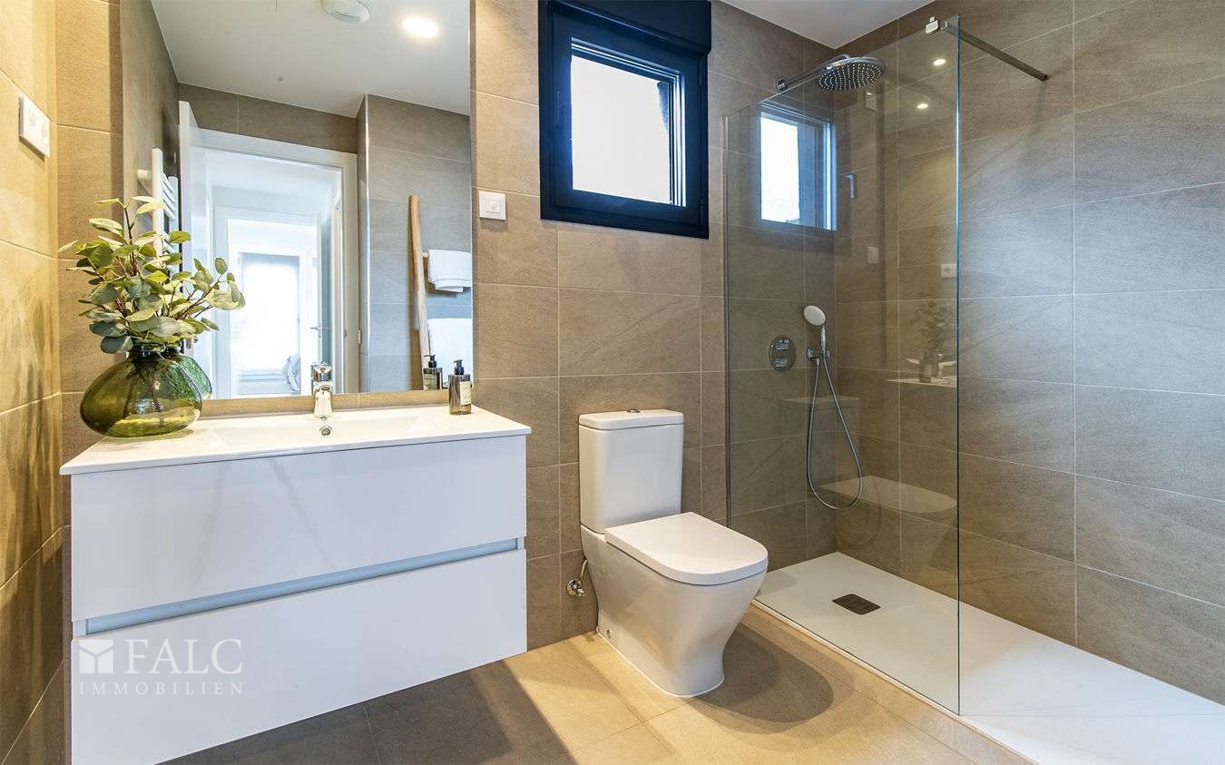 Im wunderschönen Süden der Insel, in der Nähe des Golfplatzes und mehrerer Buchten mit kristallklarem Wasser gelegen, präsentieren wir Ihnen diese herrliche Doppelhaushälfte in Puig de Ros, die erst kürzlich fertiggestellt wurde und sofort bezugsfertig ist. Die fabelhafte Immobilie hat eine grosse bebaute Fläche von etwa 154 m2 (ca. 135 m2 Wohnfläche), die wie folgt aufgeteilt ist: Ein schönes Wohn-/Esszimmer mit Zugang zum Aussenbereich, eine moderne und voll ausgestattete Küche, 4 Schlafzimmer, eines davon im Erdgeschoss für Personen mit eingeschränkter Mobilität (dieses Zimmer könnte auch als Büro genutzt werden), 3 Schlafzimmer im ersten Stock, eines davon mit Ankleidezimmer und Badezimmer en suite, sowie 2 weitere Badezimmer. Die wunderschöne Immobilie zeichnet sich durch ein exklusives Design, hochwertige Materialien und einen klaren, mediterranen Stil aus. Der Aussenbereich des Hauses überrascht seine Besitzer mit einem erfrischenden Pool und einem pflegeleichten Garten. Weitere Ausstattungsmerkmale: 2 private Parkplätze innerhalb des Grundstücks, Einbauschränke, Zentralheizung, die in jedem Raum durch Domotik gesteuert wird, Klimaanlage, doppelt verglaste Fenster, Parkett- und Fliesenböden und vieles mehr. Es handelt sich um eine privilegierte und begehrte Lage im Südwesten von Palma, zwischen dem Dorf Llucmajor und der Urbanisation Sa Torre. Puig de Ros ist Puig de Ros, eine ruhige und familienfreundliche Urbanisation an der Bucht von Palma.
