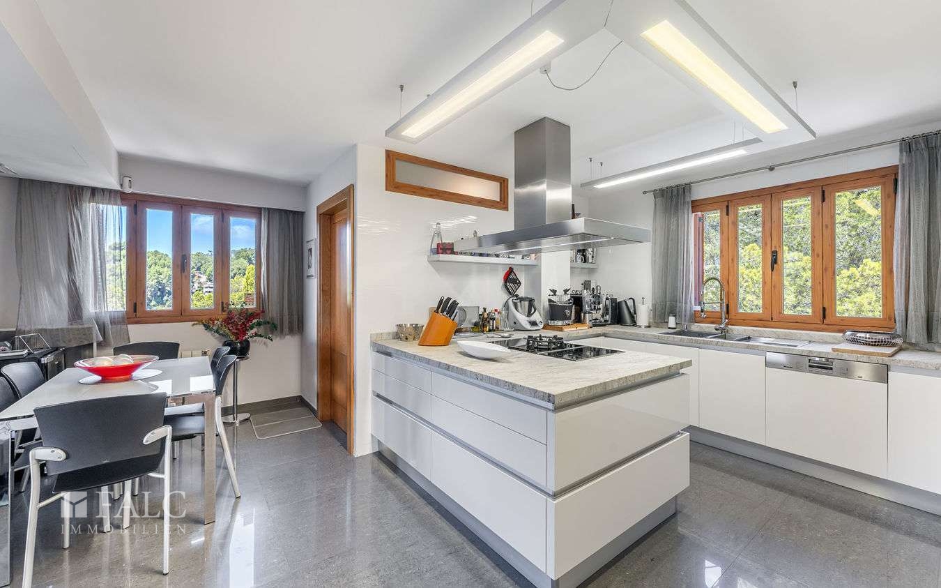 Die Lage ist äußerst attraktiv – auf der Spitze eines Hügels, nur wenige Autominuten von wunderschönen Stränden, herrlichen Badebuchten mit türkisfarbenem Wasser und dem renommierten Golfplatz von Bendinat entfernt. Das Zentrum von Palma de Mallorca erreicht man in ca. 10 Fahrminuten.