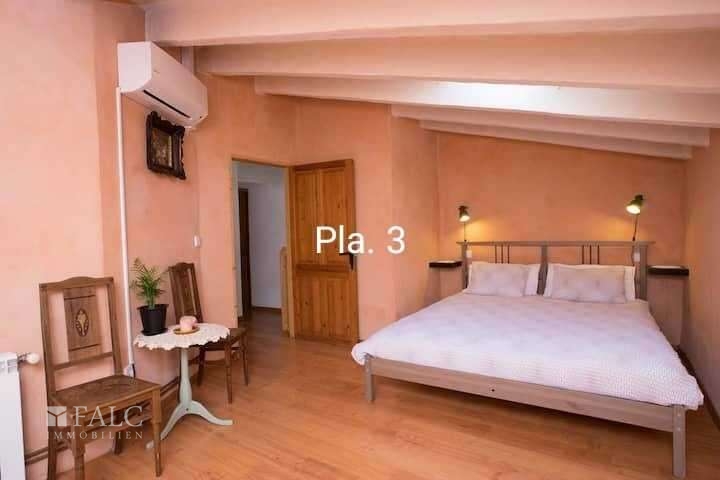 Dieses gepflegte Stadthaus in Sóller befindet sich in einer zentralen Lage, nur eine Gehminute vom Hauptplatz des Dorfes entfernt. Die traditionelle Immobilie wurde 2005 komplett renoviert. Die Wasser- und Stomleitungen und das Dach wurde erneuert und das Haus verfügt über eine Klimaanlage, eine Öl-Zentralheizung und neue PVC- Fenster. Die Wohnfläche von ca. 126 m2 verteilen sich auf 3 Etagen wie folgt: Im Erdgeschoss befindet sich der Eingangsbereich und der Maschinenraum mit Abstellbereich. Im 1. Stock befindet sich die offene Küche mit Essbereich, sowie das Wohnzimmer mit Holzkamin, ein Hauptschlafzimmer und ein Gäste- WC. Im Obergschoss befinden sich ein Studio mit offener Küche und Badezimmer sowie ein weiteres Schlafzimmer und ein Badzimmer. Das hübsche Dorf Sóller, liegt im in der traumhaften und bergigen Gegend von Serra de Tramuntana, nur ca. 4 Autominuten von dem Yachthafen Puerto de Sóller mit seinen ausgezeichneten Restaurants und einem herrlichen Strand mit türkisfarbenem Wasser entfernt.