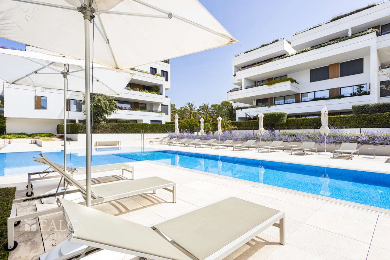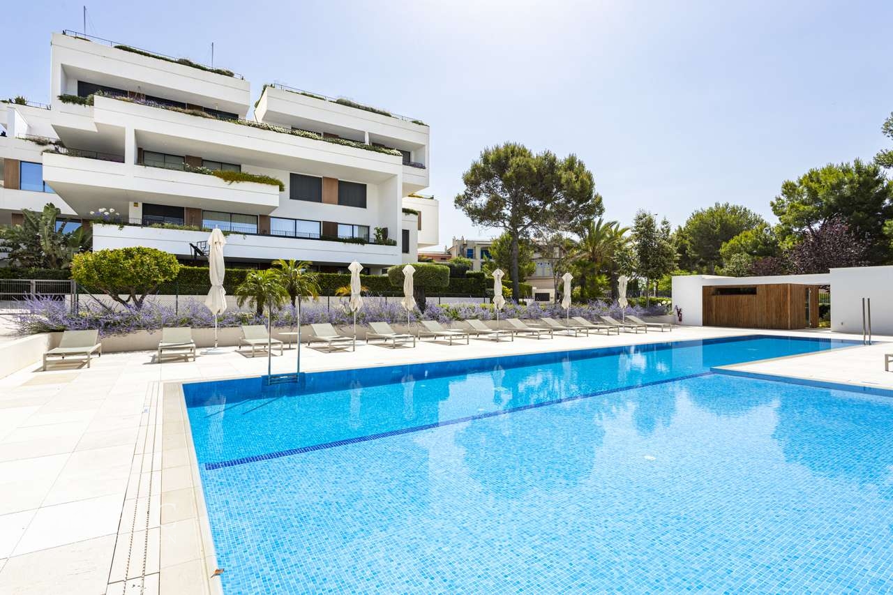 Dieses modernisierte und spektakuläre Apartment in Nova Santa Ponsa befindet sich nur wenige Minuten vom Golfplatz, verschiedenen Stränden und dem luxuriösen Yachthafen von Puerto Adriano entfernt. Die nach Süden ausgerichtete Immobilie befindet sich im 1. Obergeschoss und verfügt über eine grosszügige bebaute Fläche von ca. 322 m2. Die Wohnung bietet einen natürlichen Lichteinfall, der durch die grossen Fenster begünstigt wird und einen attraktiven Teilmeerblick freigibt. Mit viel Liebe zum Detail, klaren Linien und einer beruhigenden, neutralen Farbpalette wurde ein ruhiges Ambiente geschaffen. Die voll ausgestattete Designer Küche öffnet sich in das Esszimmer und das Wohnzimmer. Das Hauptschlafzimmer öffnet sich zu einer privaten Terrasse, die sich perfekt für den Morgenkaffee mit herrlichem Meerblick eignet. Des Weiteren gibt es 2 geräumige Schlafzimmer en suite, die Komfort und Ruhe bieten. Die Wohngemeinschaft stellt eine Vielzahl von Annehmlichkeiten zur Verfügung. Extras: Abstellraum für 2 Fahrräder, Golfcaddies, Hauswirtschaftsraum, Sauna und Umkleideräume bzw. Duschen für die Nutzung der Bewohner. Ein beeindruckender Pool lädt zu einem erfrischenden Bad ein, umgeben von üppigen Gärten und einer angenehmen Landschaftsgestaltung. Santa Ponsa ist ein pulsierender Küstenort, der für seine Sandstrände, sein lebhaftes Nachtleben und seine Mischung aus lokaler und internationaler Kultur bekannt ist. Golfplätze, Yachthäfen, Restaurants, Geschäfte und Dienstleistungen sind leicht zu erreichen und bieten ein perfektes Gleichgewicht zwischen Entspannung und Unterhaltung.