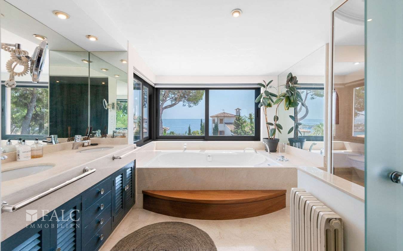 Die exklusive Villa bietet einen faszinierenden Meerblick aus den meisten Räumen des Hauses und verfügt über eine bebaute Fläche von ca. 471 m². Die Wohnfläche verteilt sich auf einen einladenden Eingangsbereich, ein lichtdurchflutetes Wohnzimmer mit Zugang zum Außenbereich, eine moderne Küche, 6 geräumige Schlafzimmer sowie 4 Badezimmer, zwei davon en suite.
