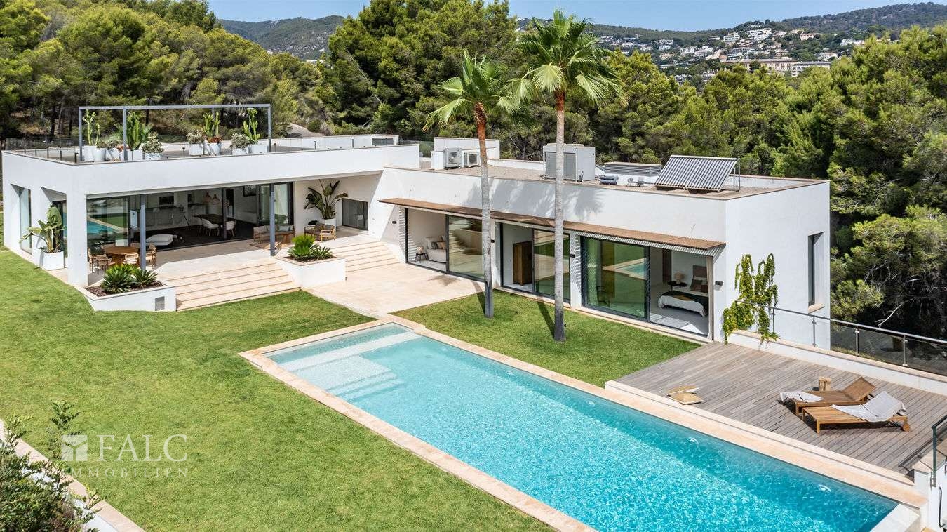 Diese spektakuläre Villa in Son Vida befindet sich in einer der privilegiertesten Wohnorte von Mallorca und bietet viel Privatsphäre mit einem spektakulären Ausblick bis hin zum Meer. Umgeben von mediterraner Natur, Top-Golfplätzen und die Nähe zum Stadtzentrum von Palma, schätzen die Bewohner von Son Vida vor allem die Sicherheit und Privatsphäre und den exquisiten Lifestyle, die diese geschlossene Prestige-Gemeinschaft zu bieten hat. Das beeindruckende Anwesen mit einer Grundstücksfläche von ca. 3090 m2 besticht mit einem aussergewöhnlichen Design und einer grosszügigen Raumaufteilung. Die bebaute Fläche von ca. 700 m2 verteilt sich auf 3 Ebenen.