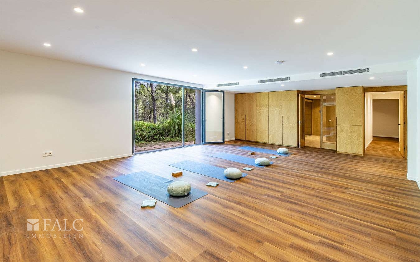 Des Weiteren verfügt das Anwesen über einen Fitnessbereich mit Sauna und eine grosse Garage mit Platz für 2 Fahrzeuge. Diese sensationelle Villa in Son Vida ist mit Klimaanlage, Naturstein, Fussbodenheizung, doppelt verglasten Fenstern, edlen Oberflächen u.v.m. ausgestattet.