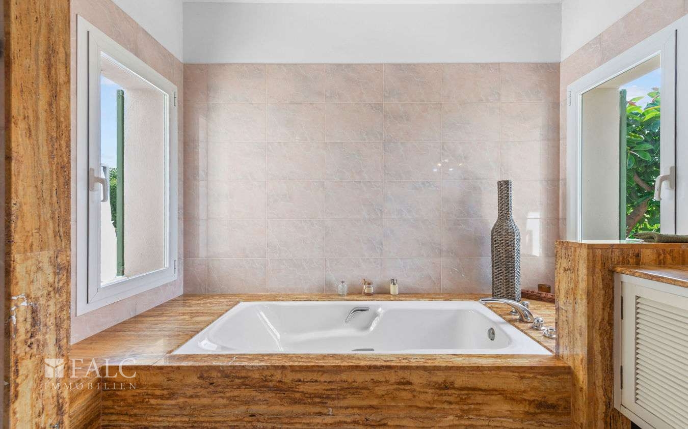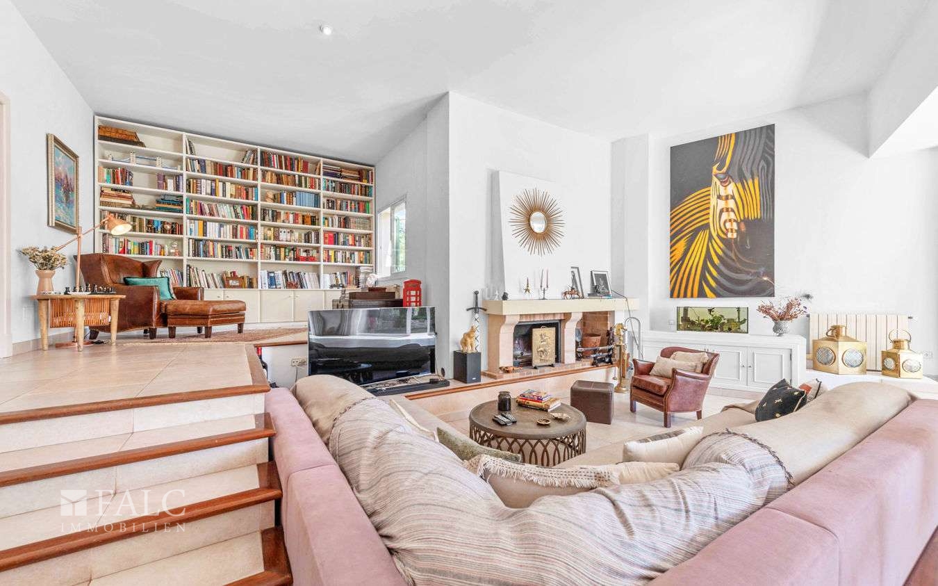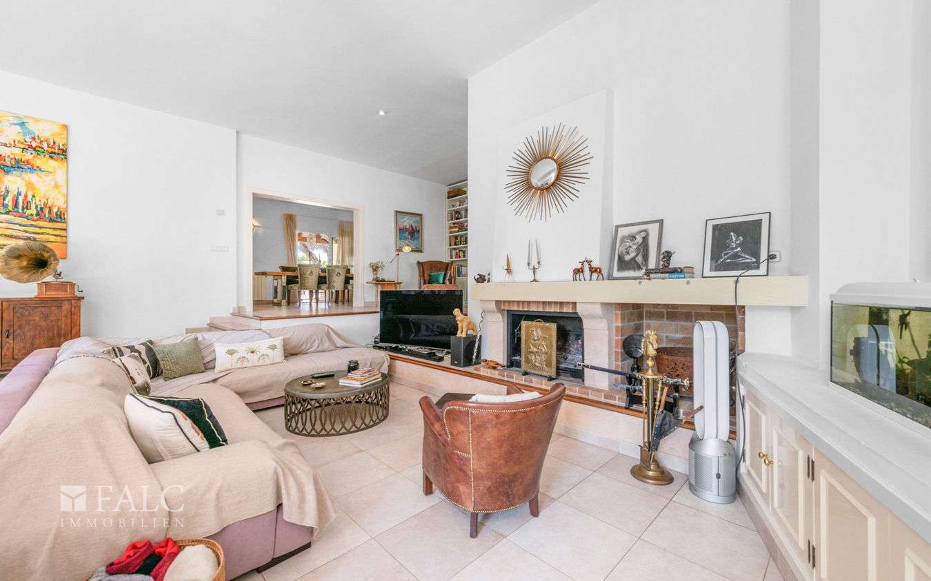 Diese attraktive, einstöckige Familienvilla in Santa Ponsa befindet sich in einer ruhigen Wohngegend im begehrten Südwesten Mallorcas. Die traumhafte Immobilie mit einer Wohnfläche von ca. 410 m² besticht durch eine raffinierte Mischung aus Komfort, Eleganz und mediterranem Stil und liegt auf einem gepflegten, sonnigen Grundstück von ca. 1.400 m².